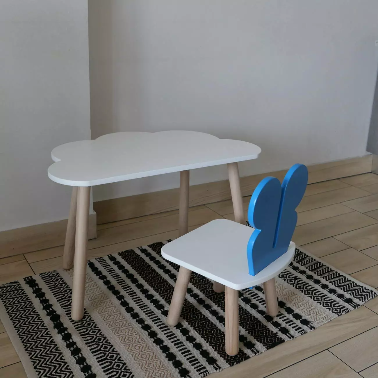 Комплект стіл та стул дитячий ChildWood - Set Стіл білий хмаринка + стілець білий блакийний Метелик (Фанера)