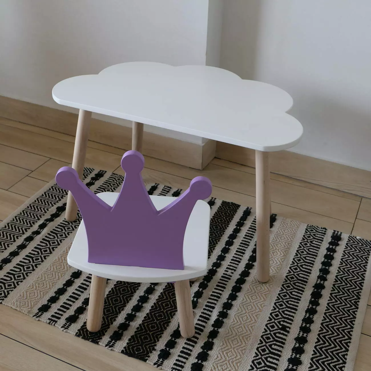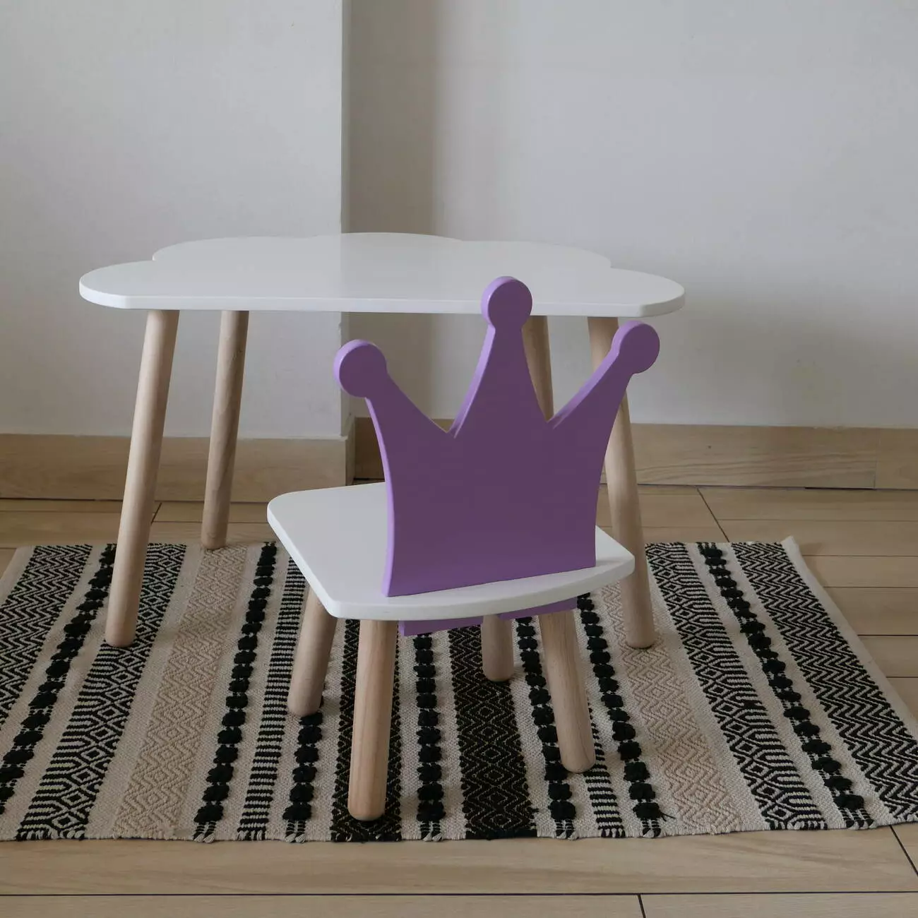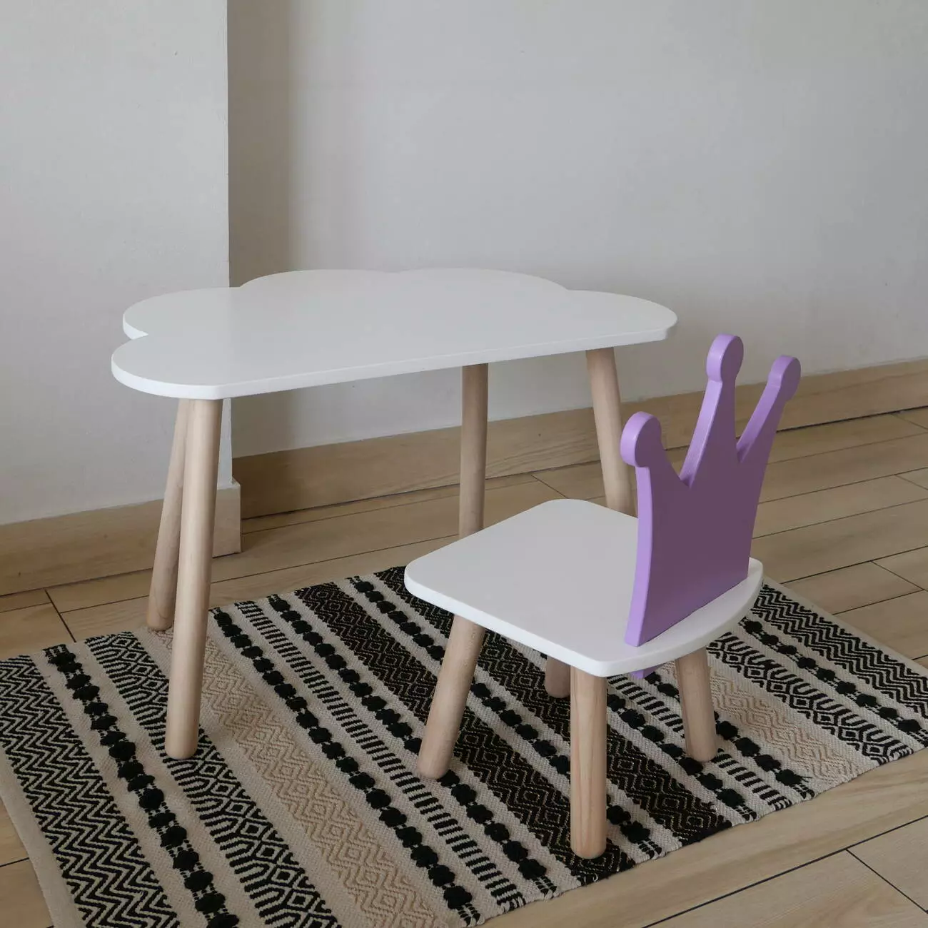 Комплект стіл та стул дитячий ChildWood - Set Стіл білий хмаринка + стілець білий бузковий Корона (Фанера)