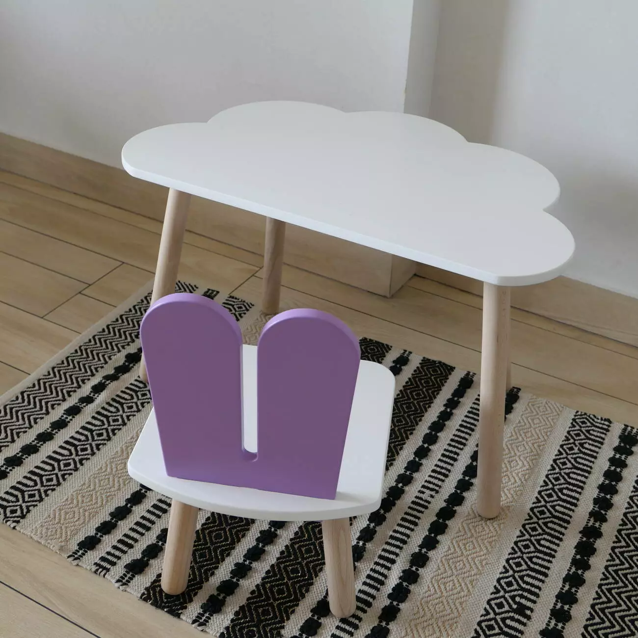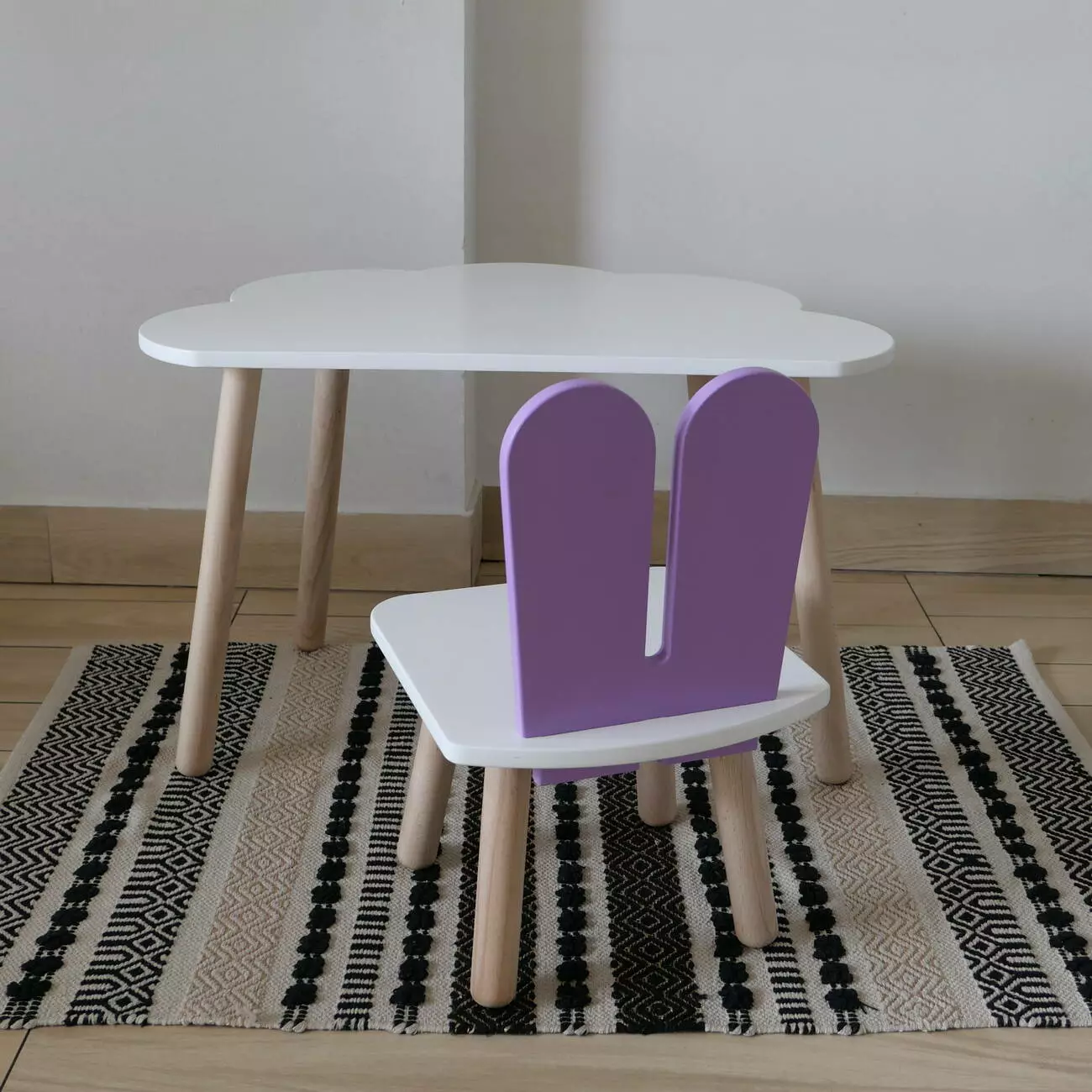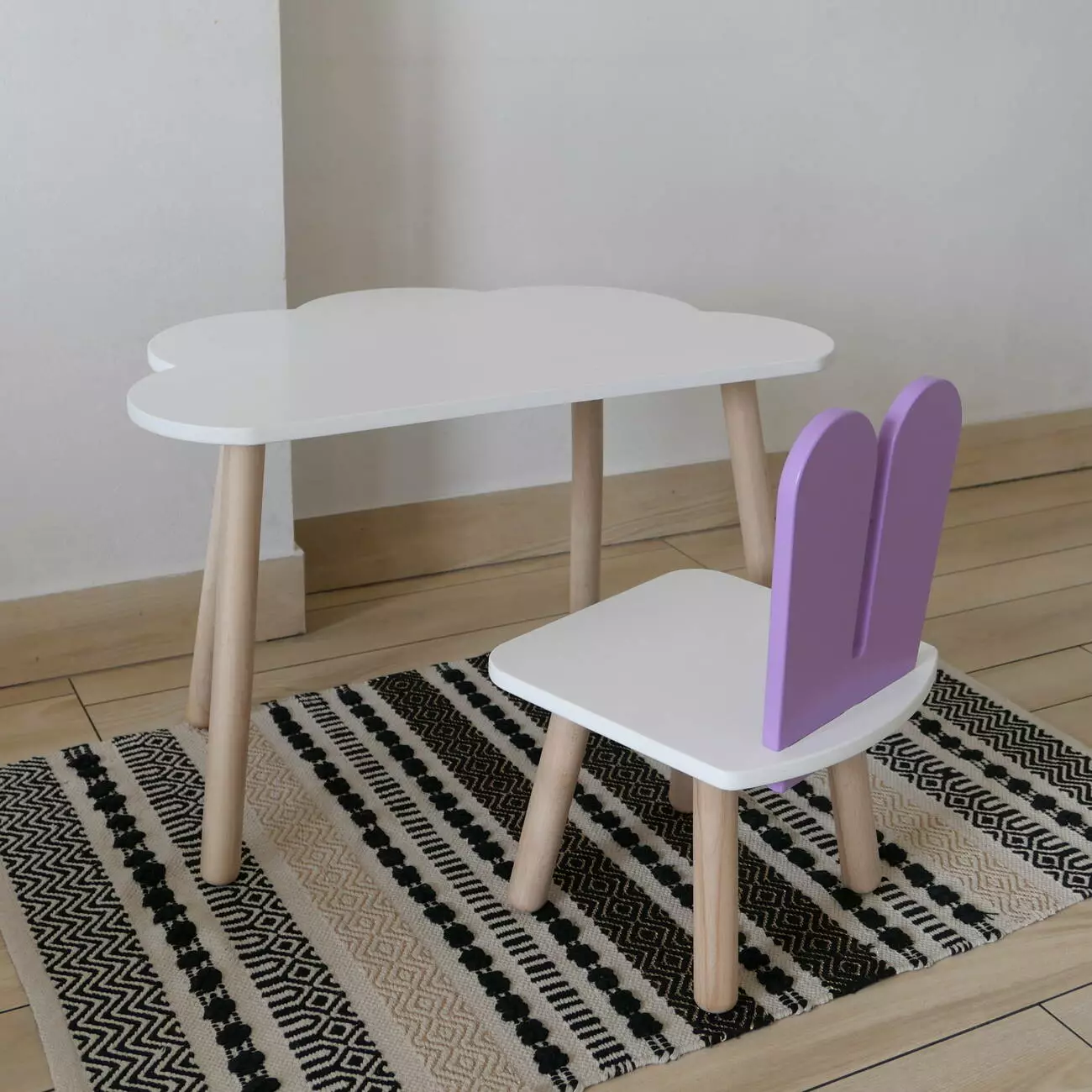 Комплект стіл та стул дитячий ChildWood - Set Стіл білий хмаринка + стілець білий бузковий Зайчик (Фанера)