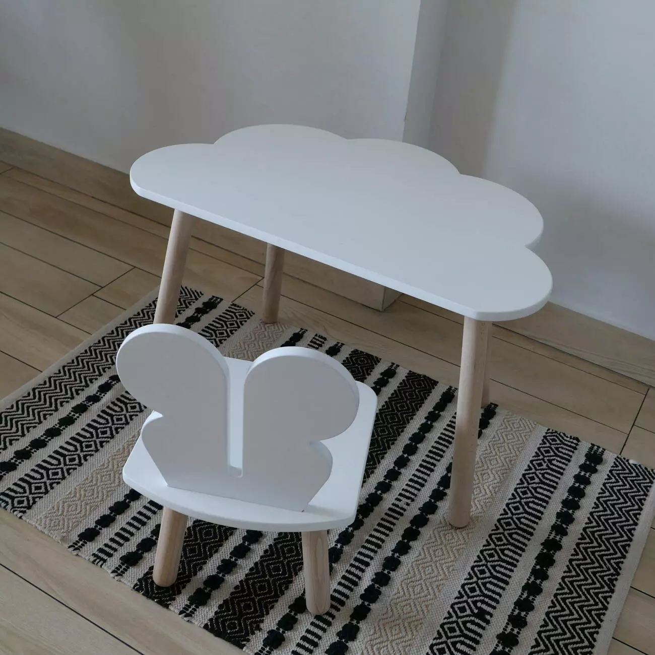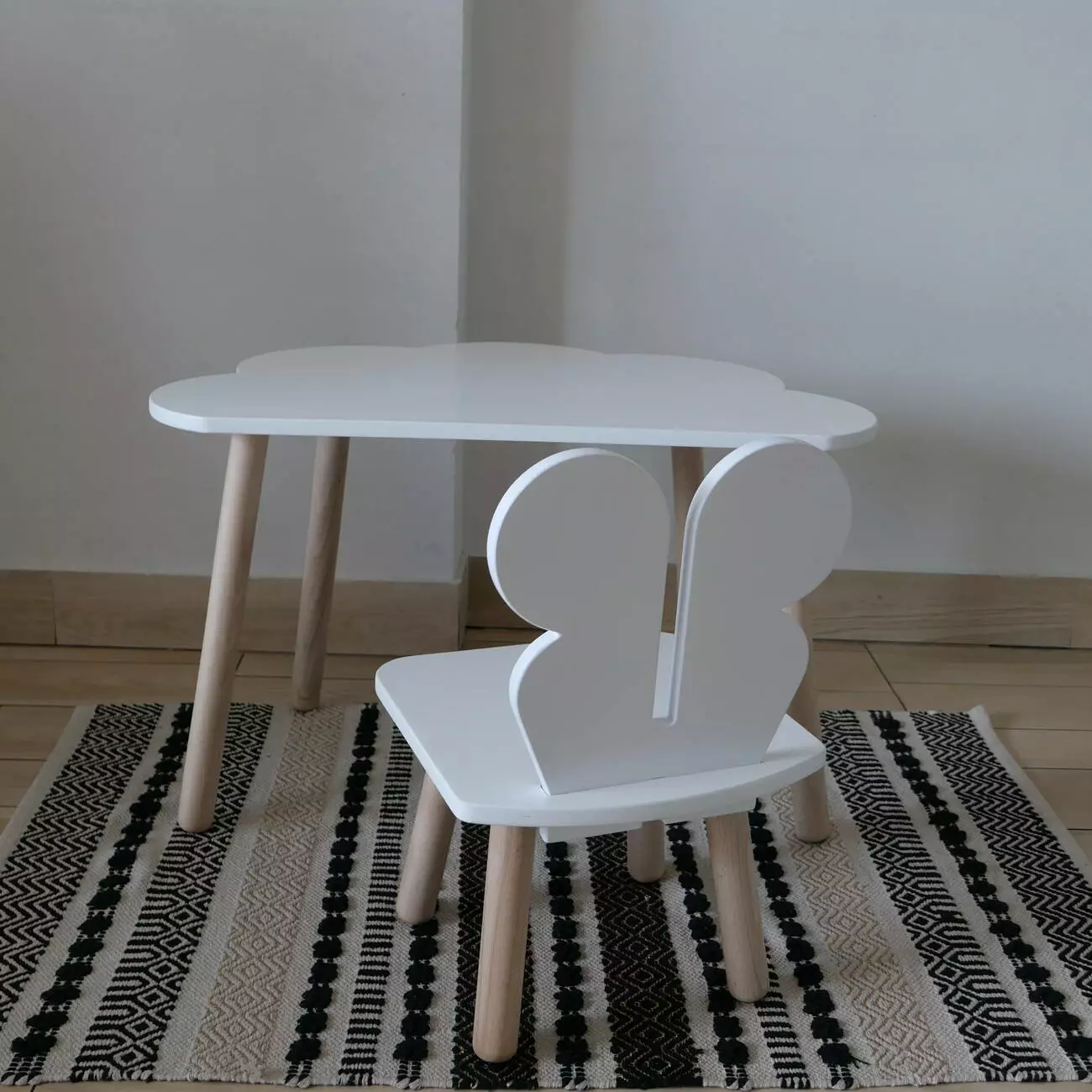 Комплект стіл та стул дитячий ChildWood - Set Стіл білий хмаринка + стілець білий Метелик (Фанера)