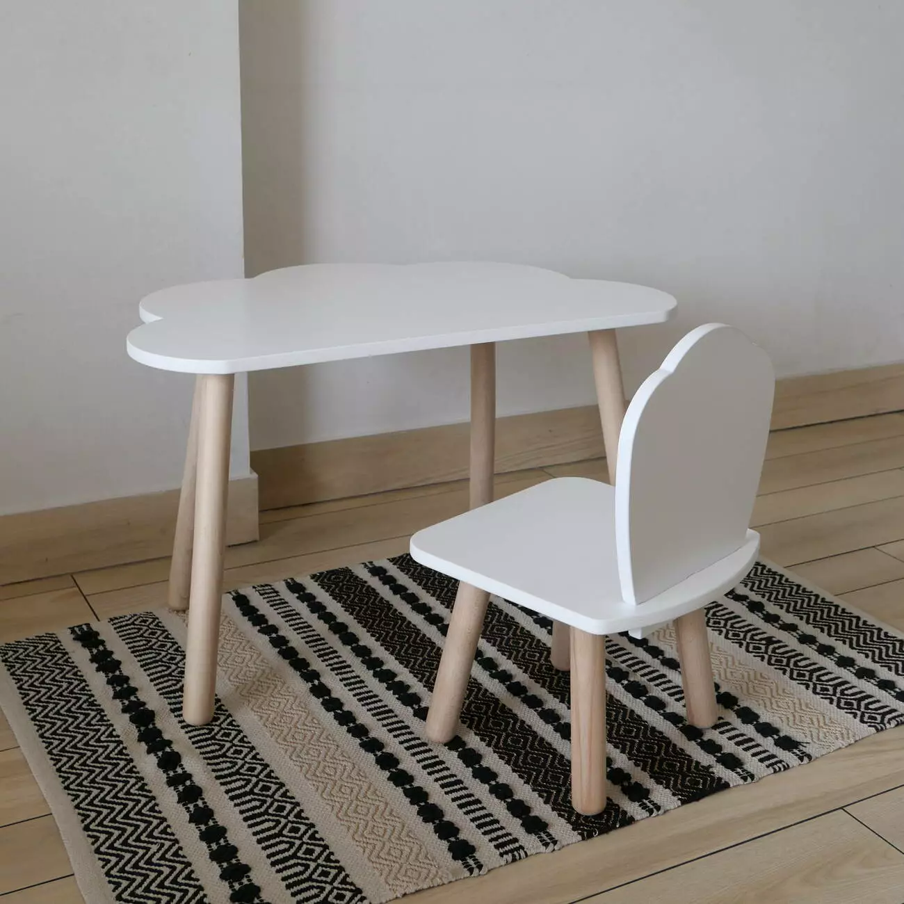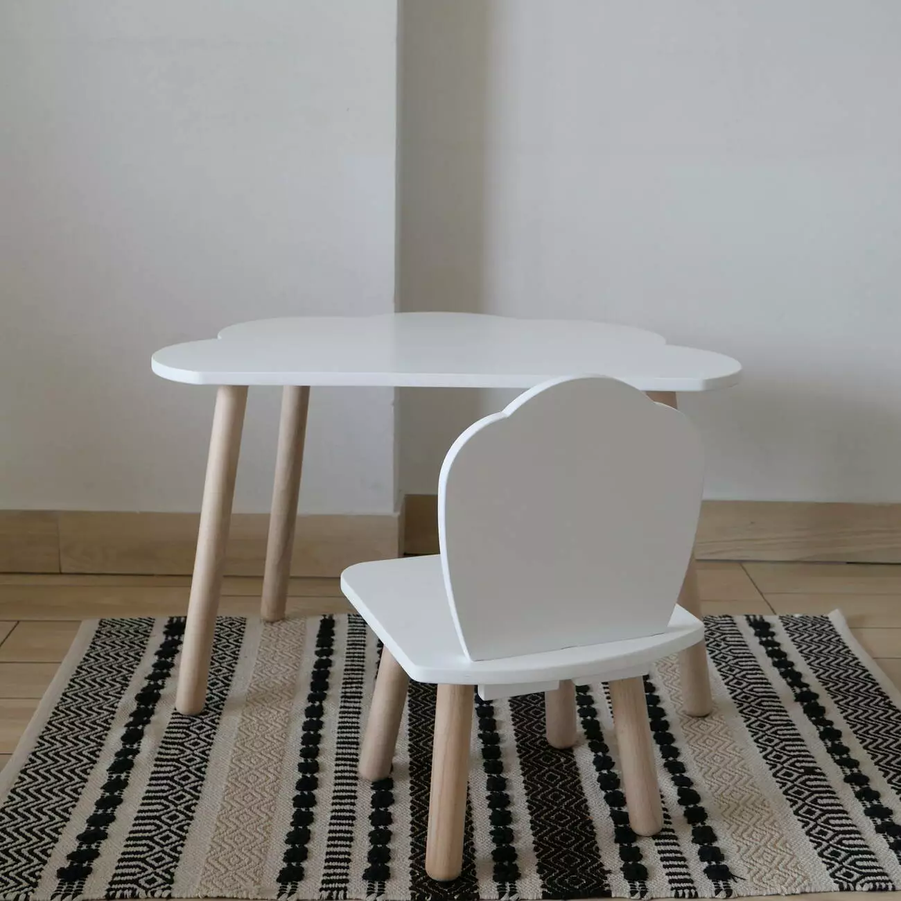 Комплект стіл та стул дитячий ChildWood - Set Стіл білий хмаринка + стілець білий Мушля (Фанера)