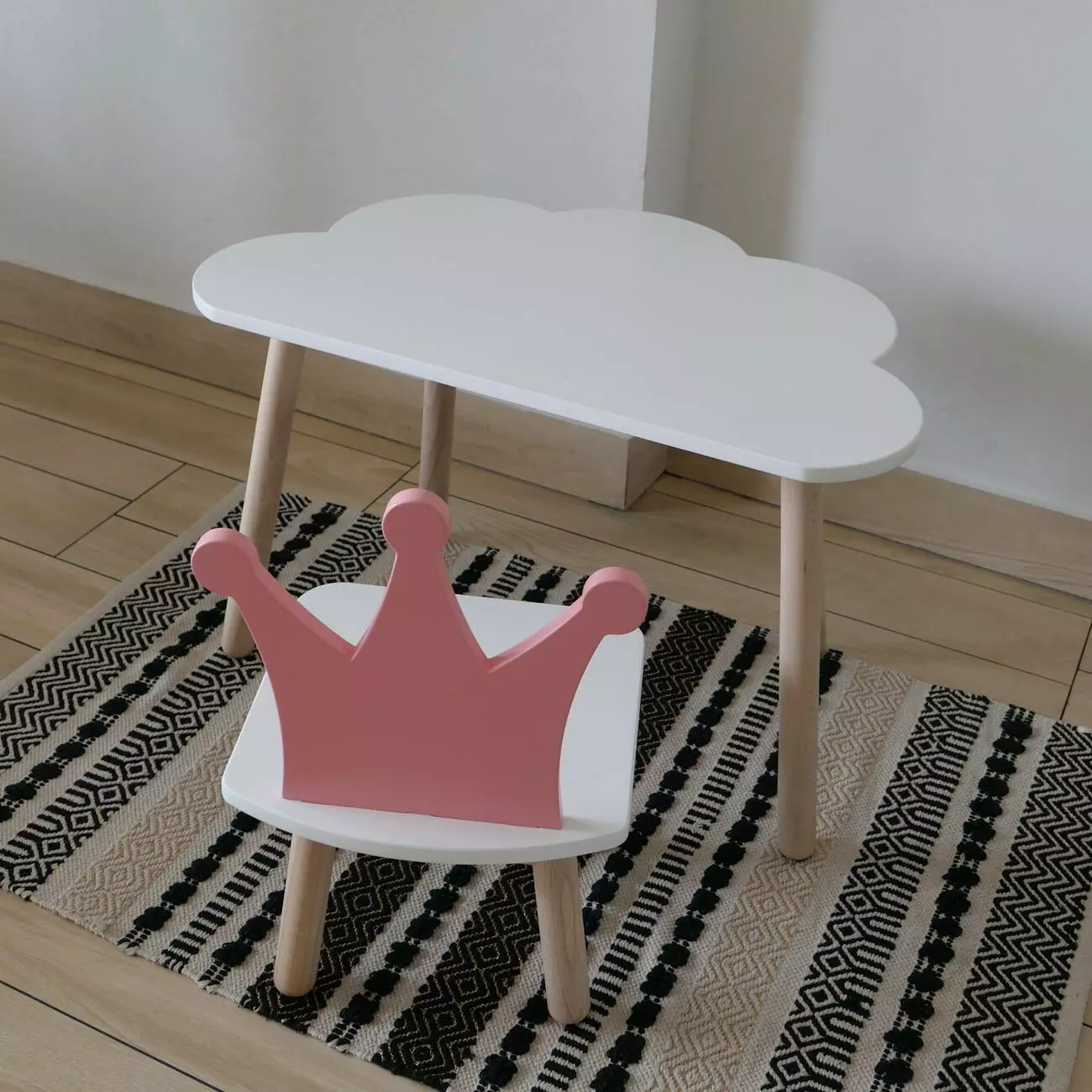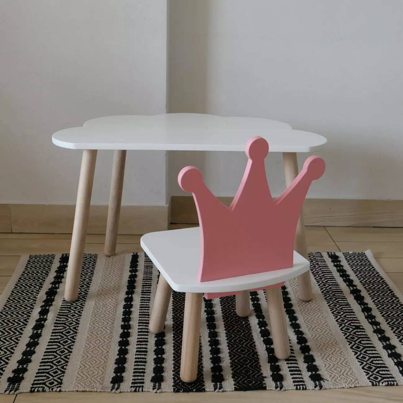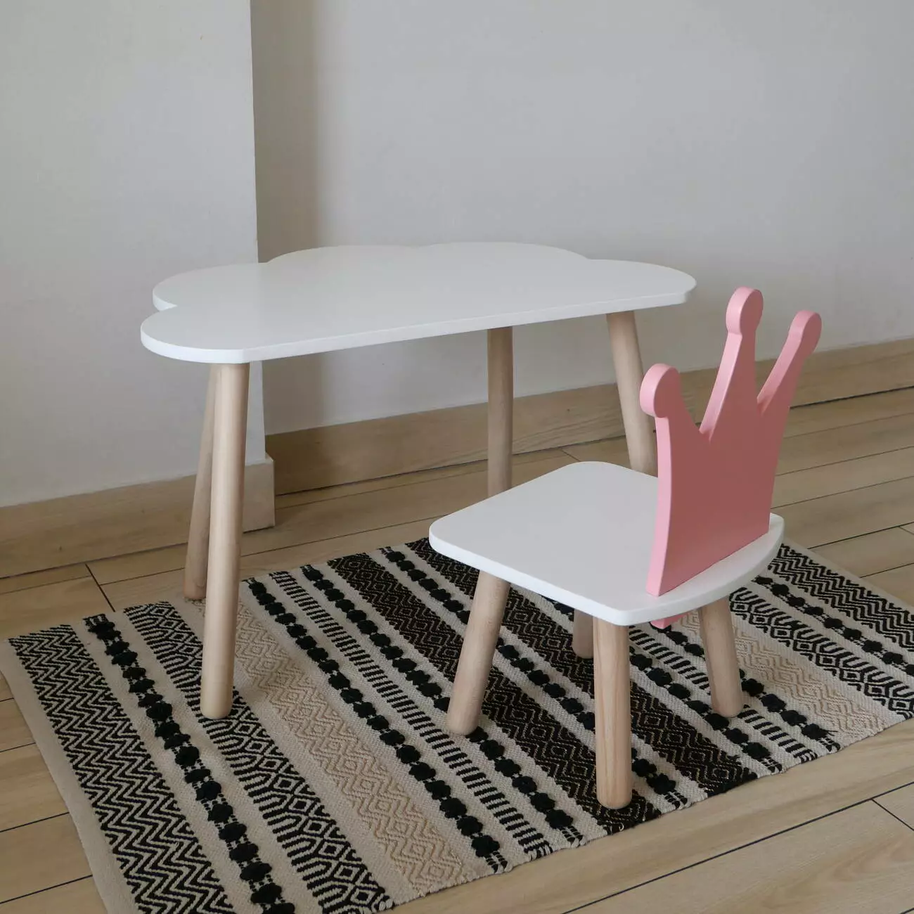 Комплект стіл та стул дитячий ChildWood - Set Стіл білий хмаринка + стілець білий рожевий Корона (Фанера)