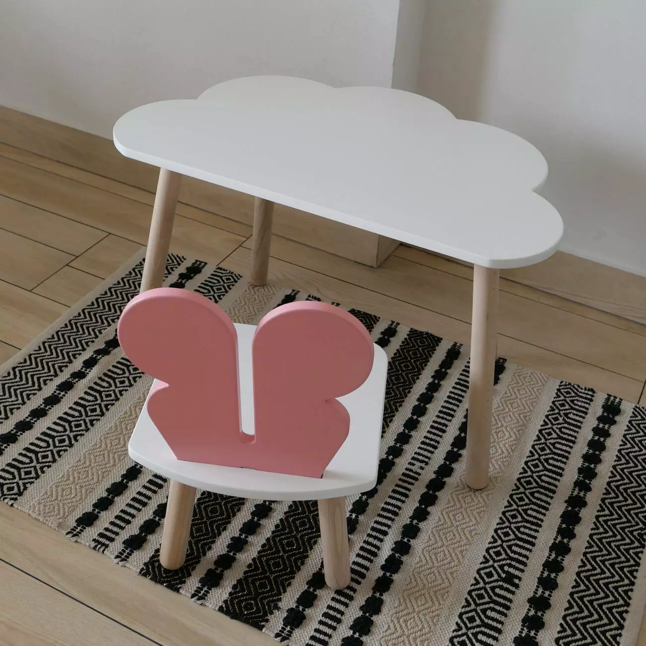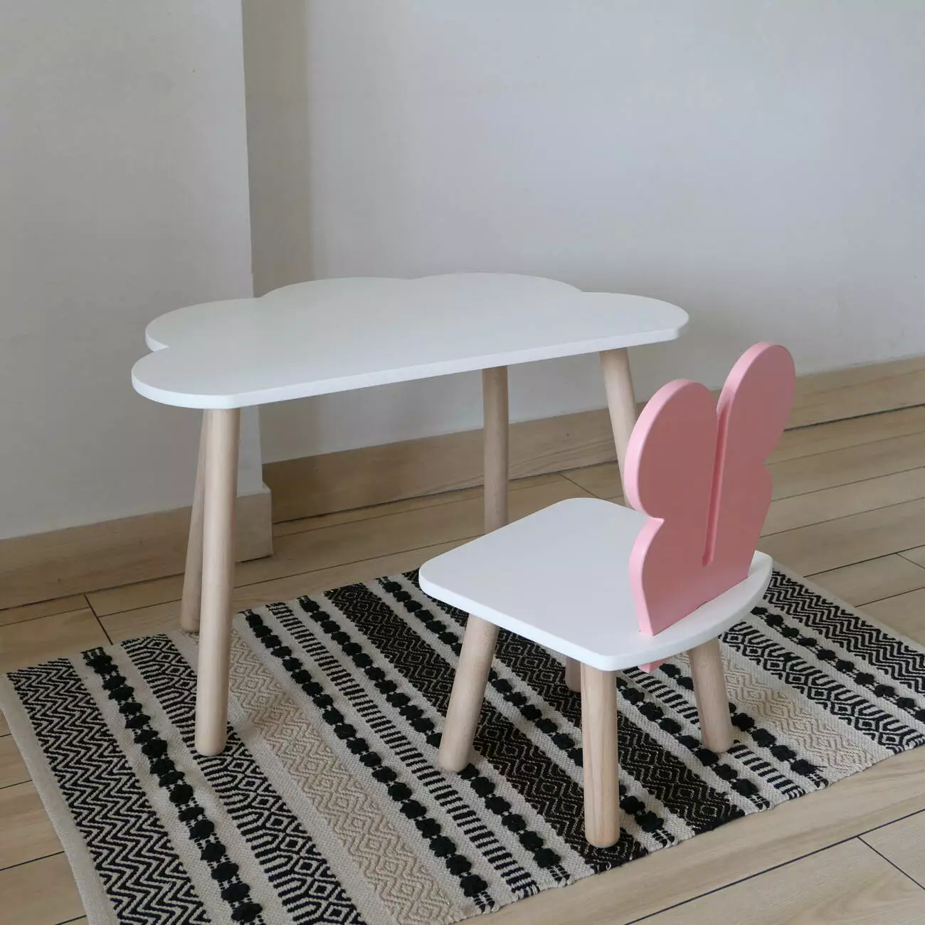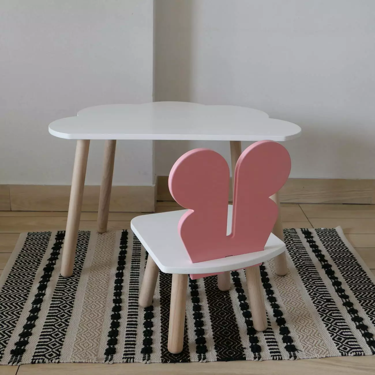 Комплект стіл та стул дитячий ChildWood - Set Стіл білий хмаринка + стілець білий рожевий Метелик (Фанера)