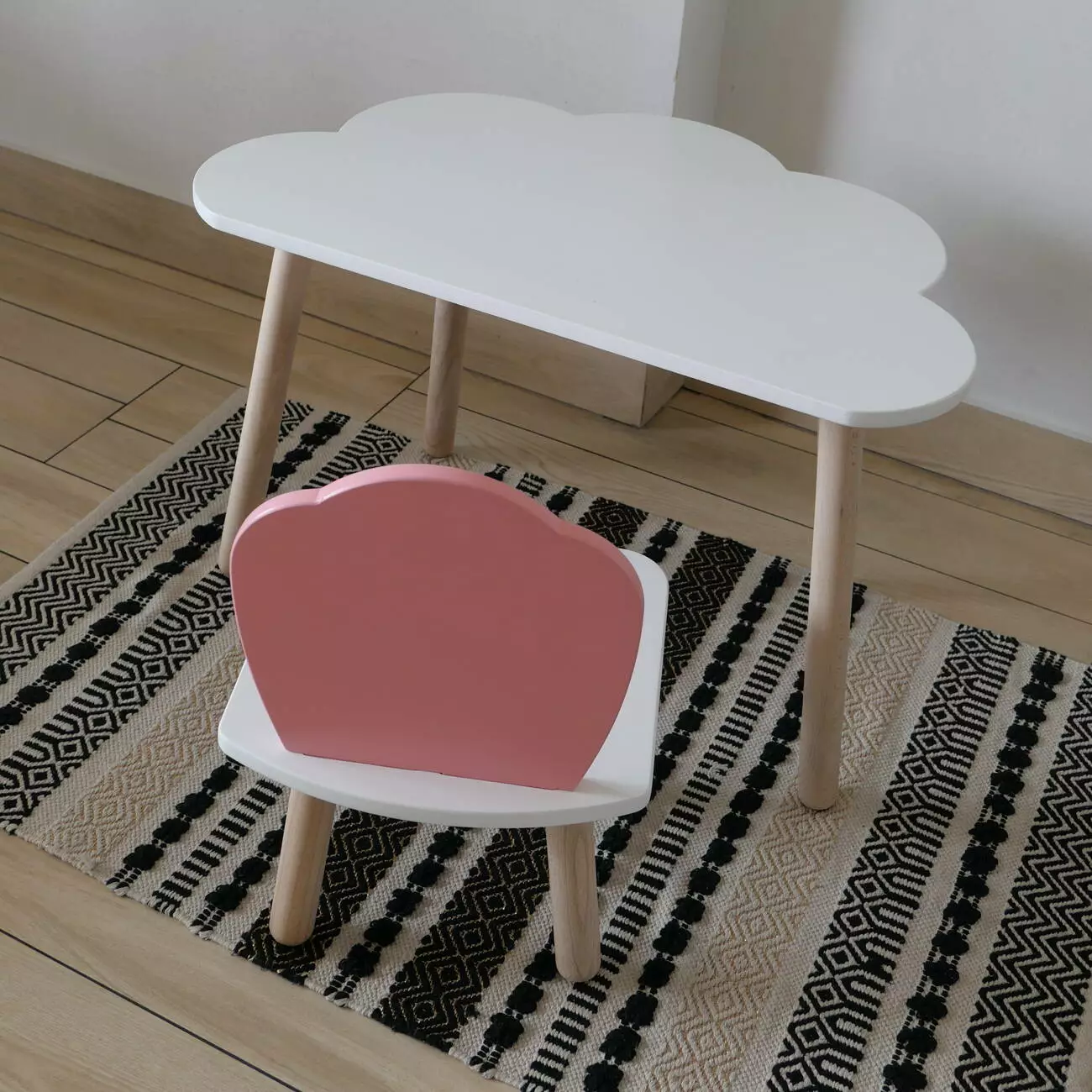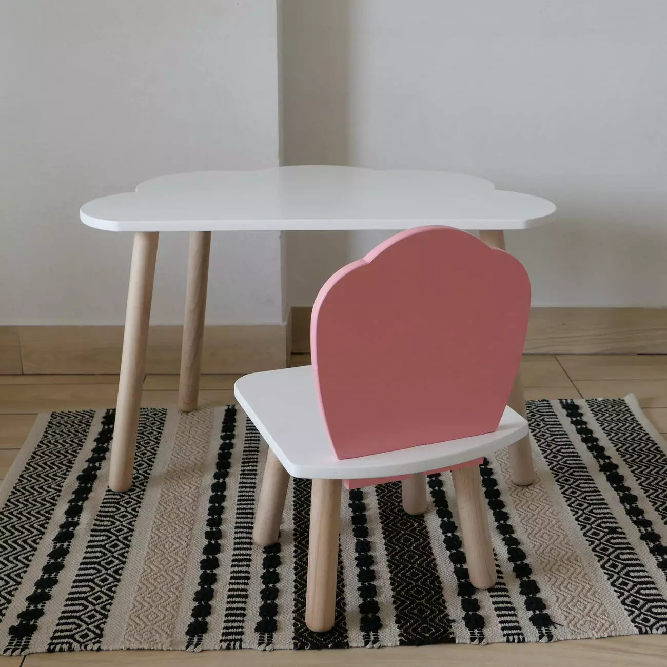 Комплект стіл та стул дитячий ChildWood - Set Стіл білий хмаринка + стілець білий рожевий Мушля (Фанера)
