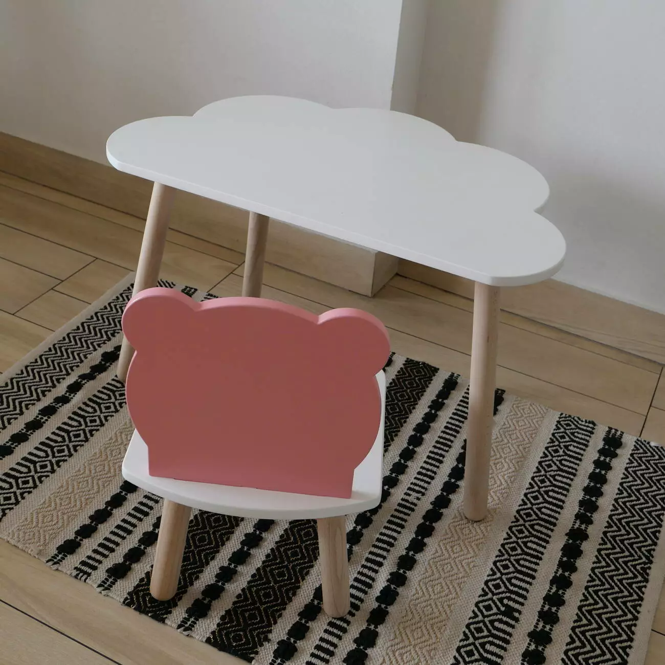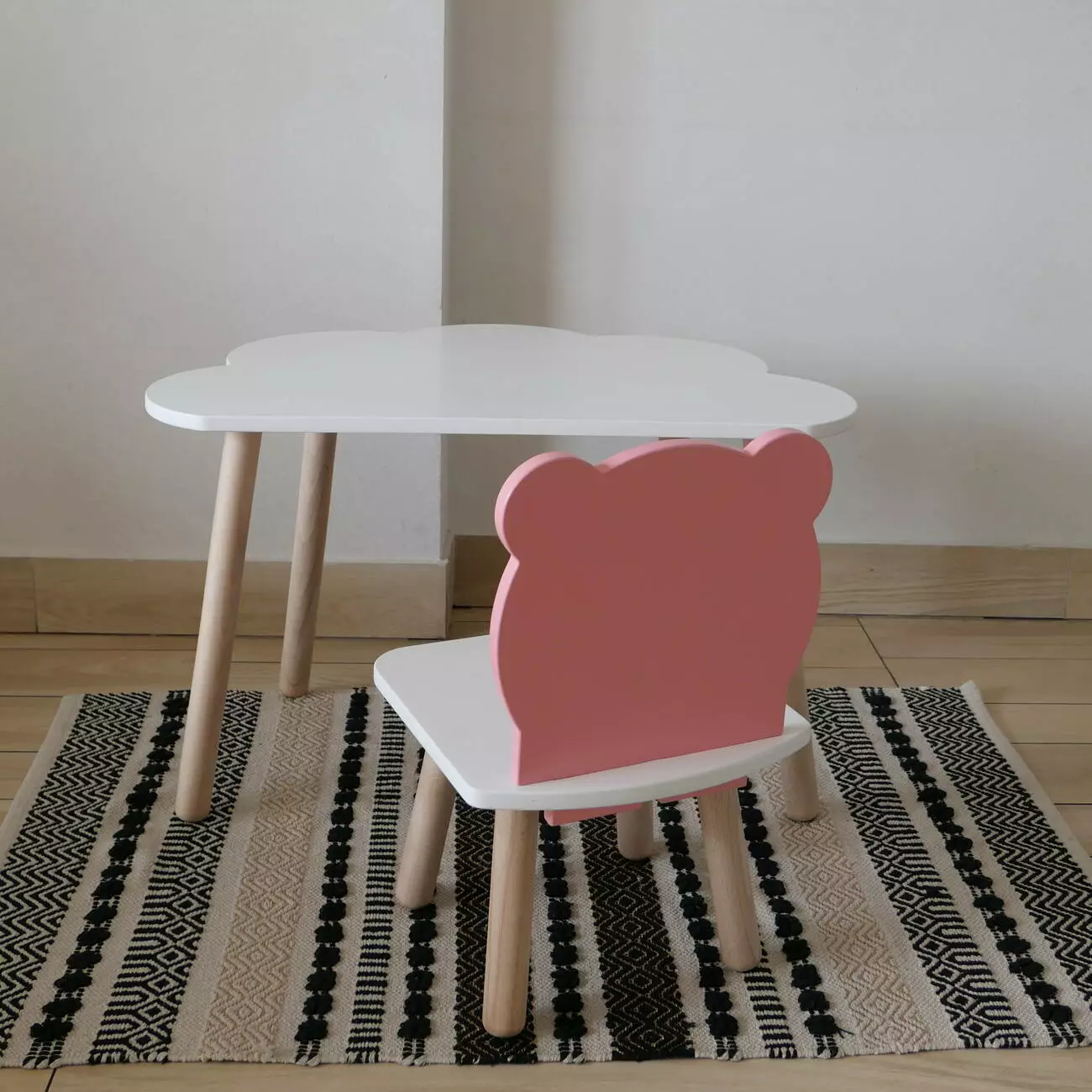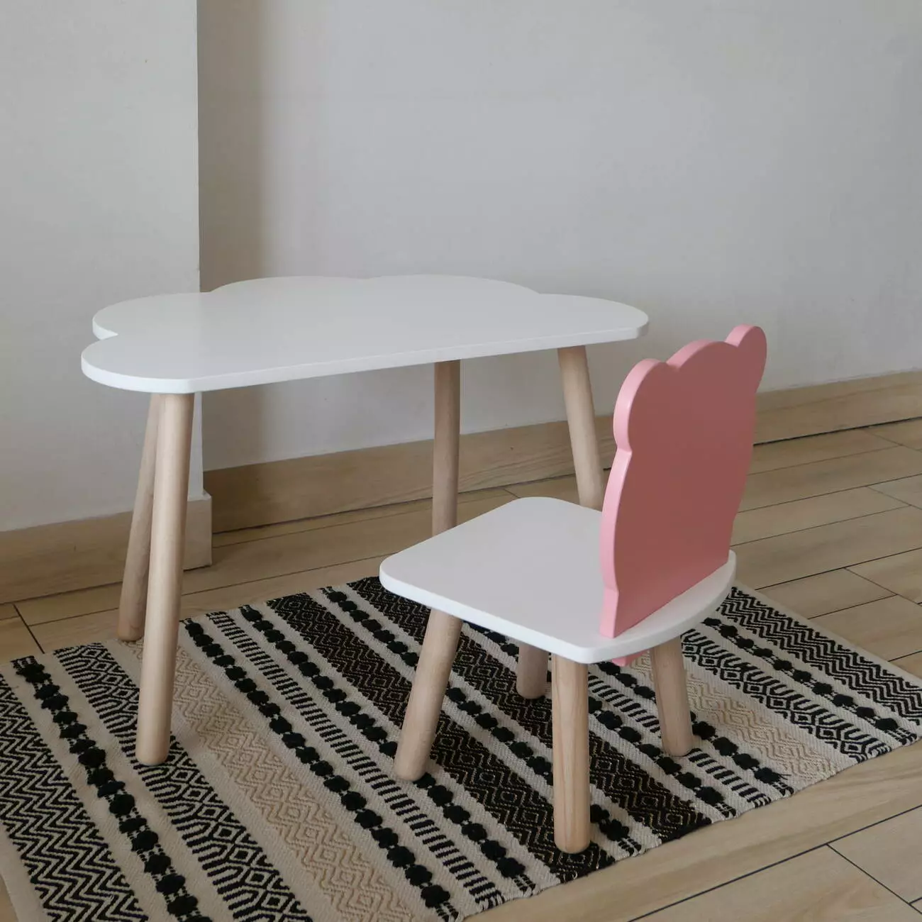 Комплект стіл та стул дитячий ChildWood - Set Стіл білий хмаринка + стілець білий рожевий Ведмедик (Фанера)