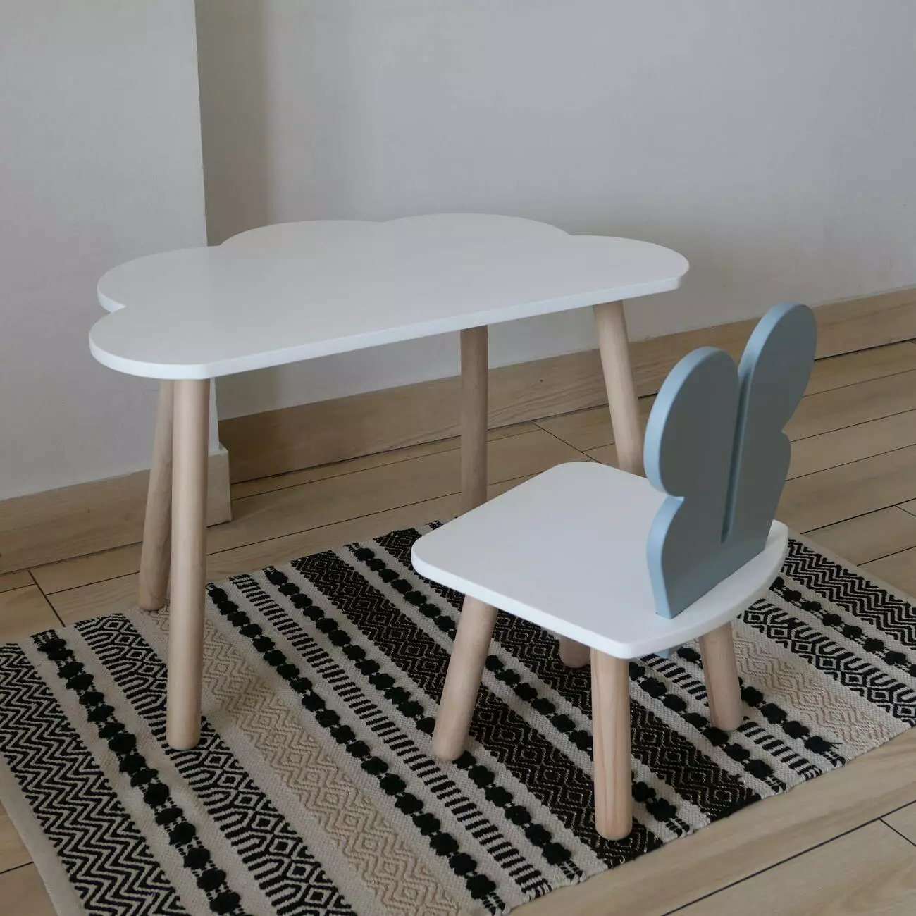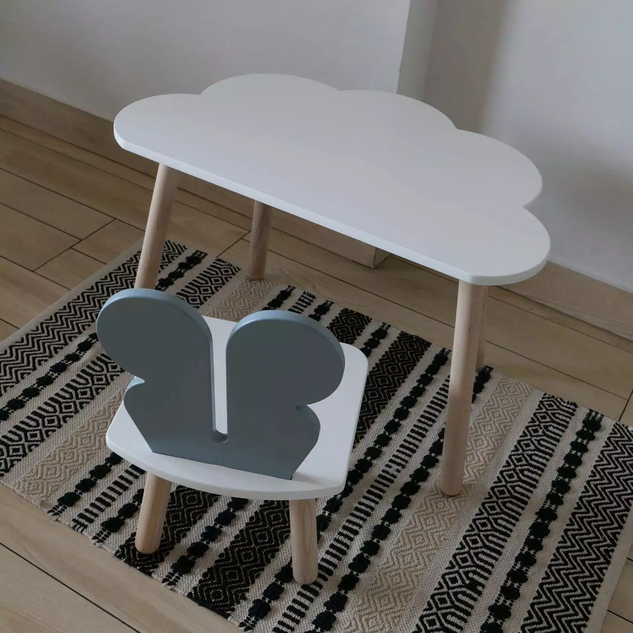 Комплект стіл та стул дитячий ChildWood - Set Стіл білий хмаринка + стілець білий сірий Метелик (Фанера)