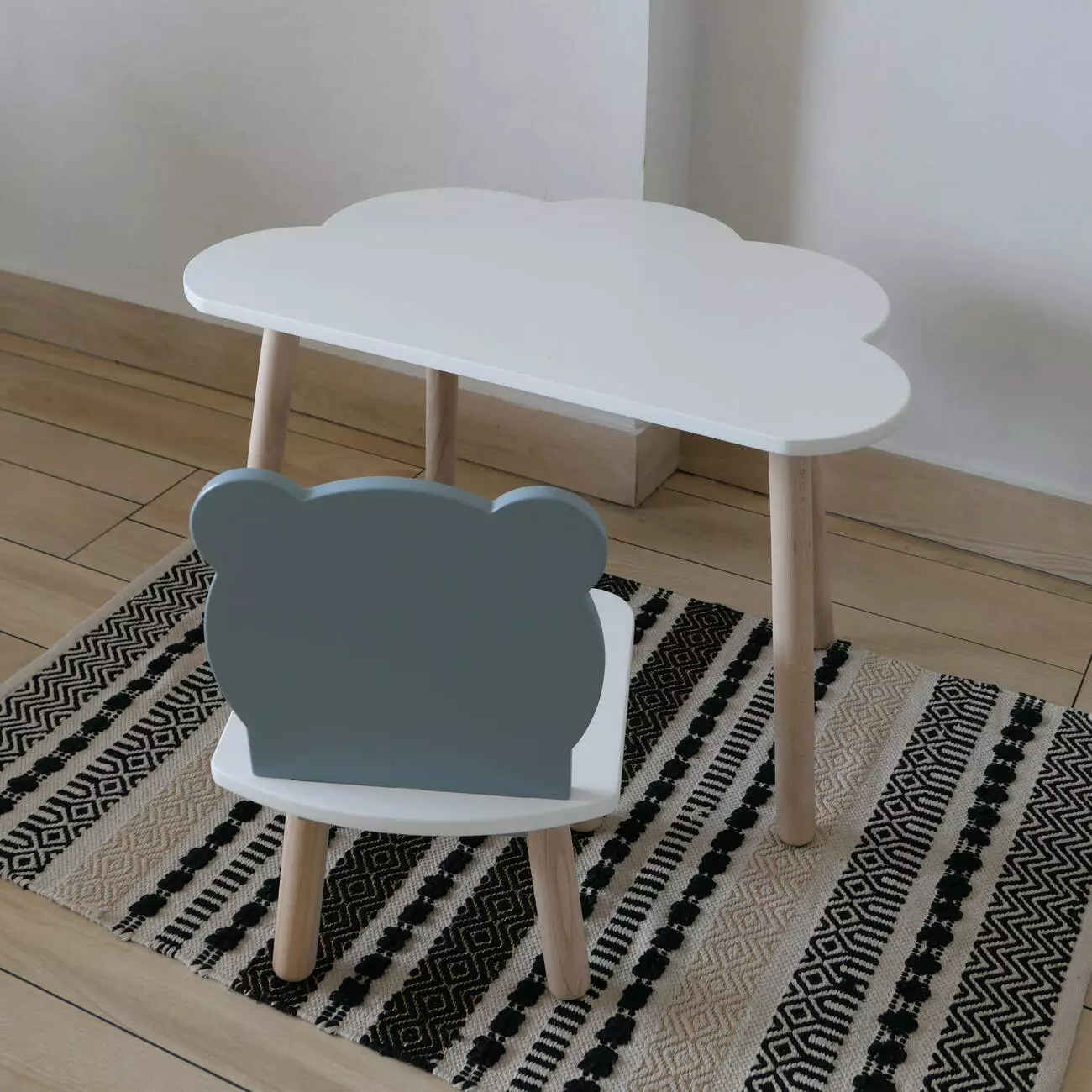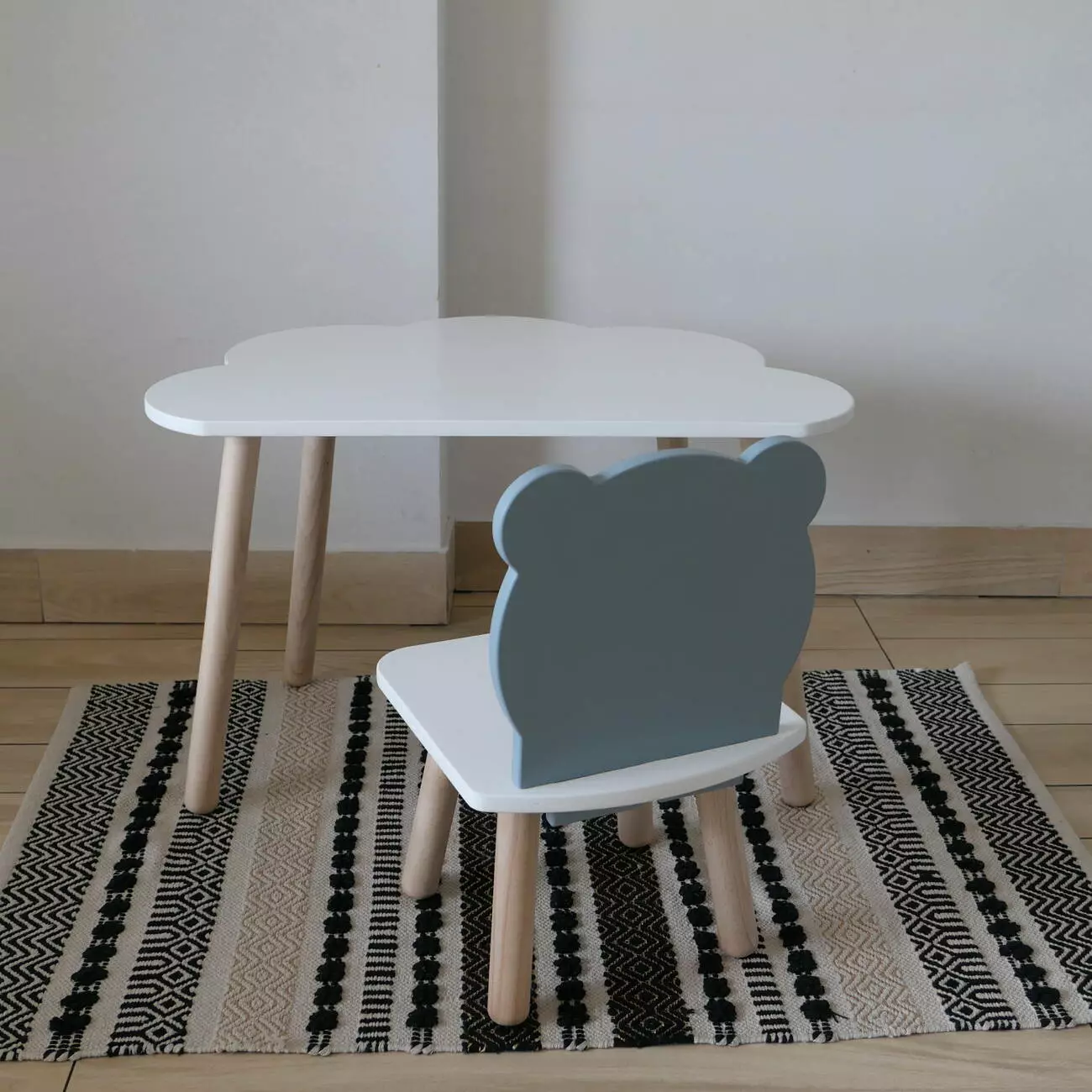 Комплект стіл та стул дитячий ChildWood - Set Стіл білий хмаринка + стілець білий сірий Ведмедик (Фанера)