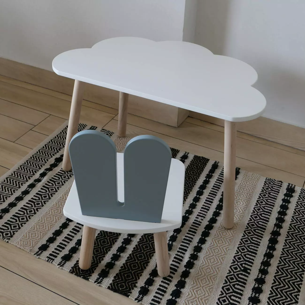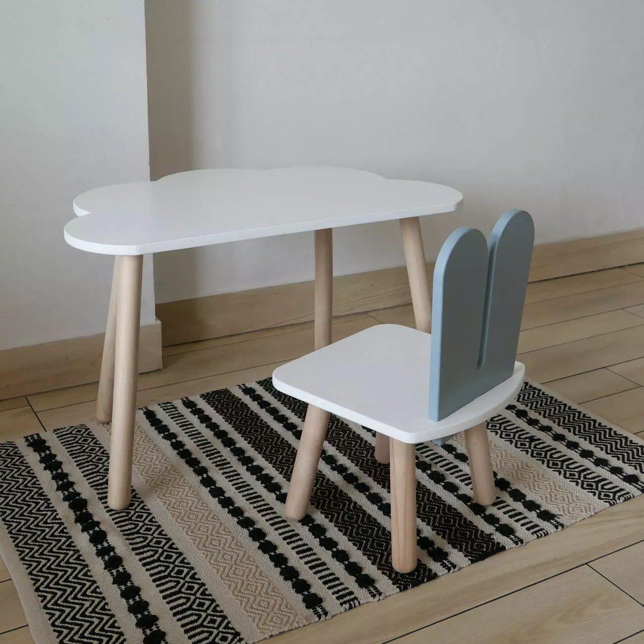 Комплект стіл та стул дитячий ChildWood - Set Стіл білий хмаринка + стілець білий сірий Зайчик (Фанера)