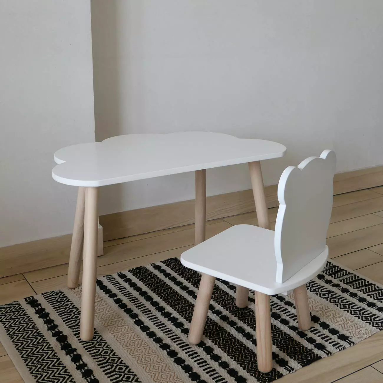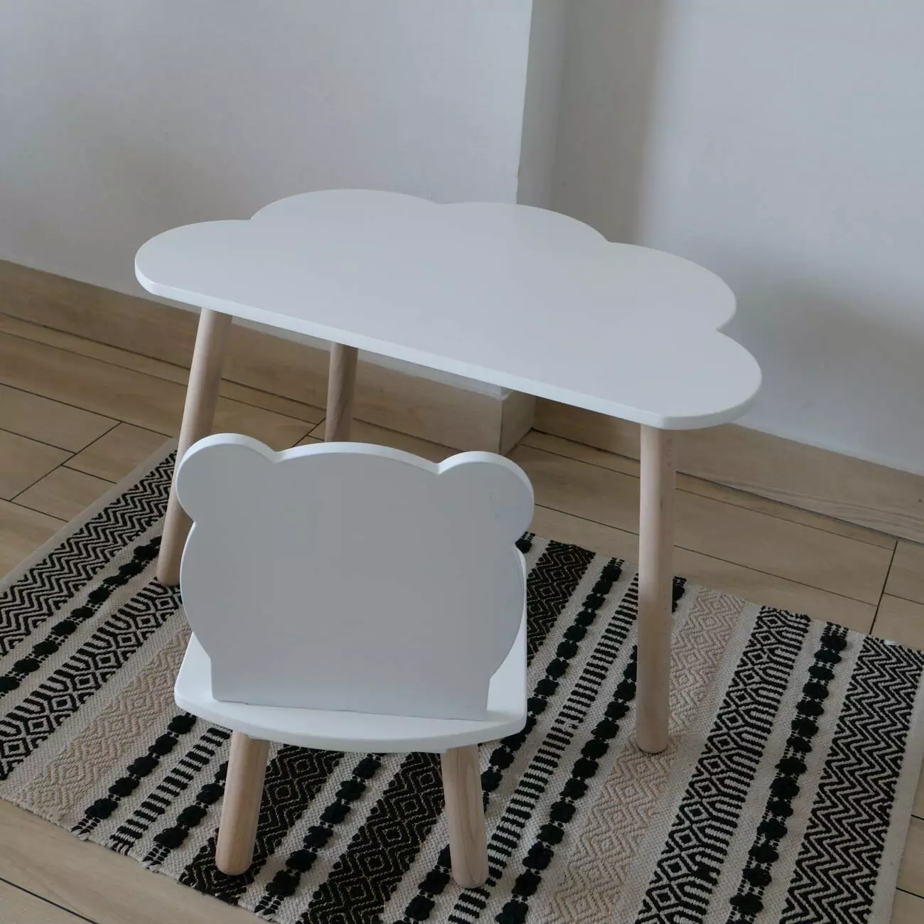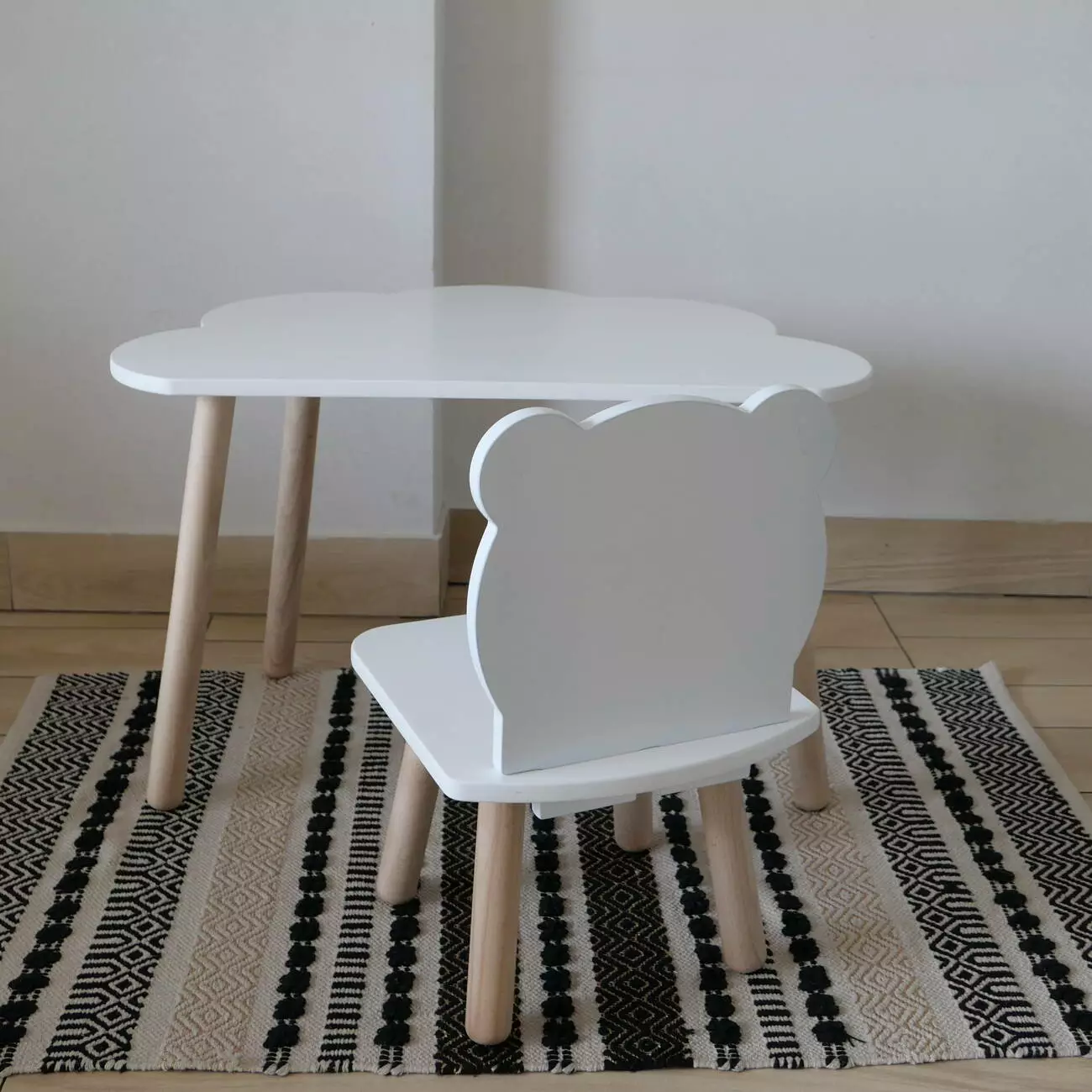 Комплект стіл та стул дитячий ChildWood - Set Стіл білий хмаринка + стілець білий Ведмедик (Фанера)