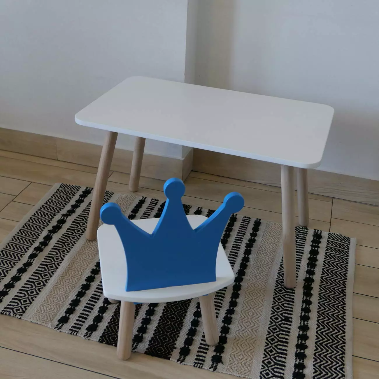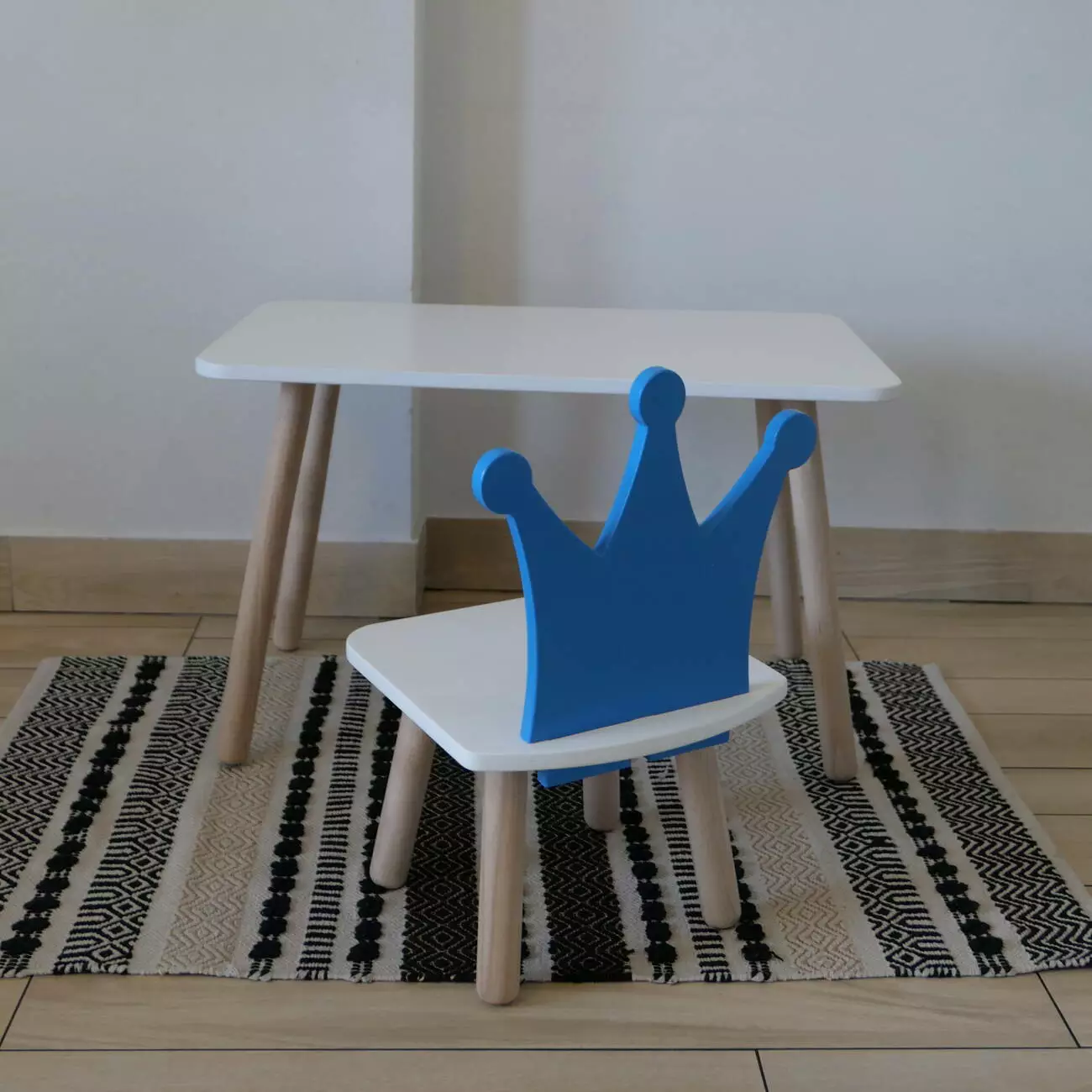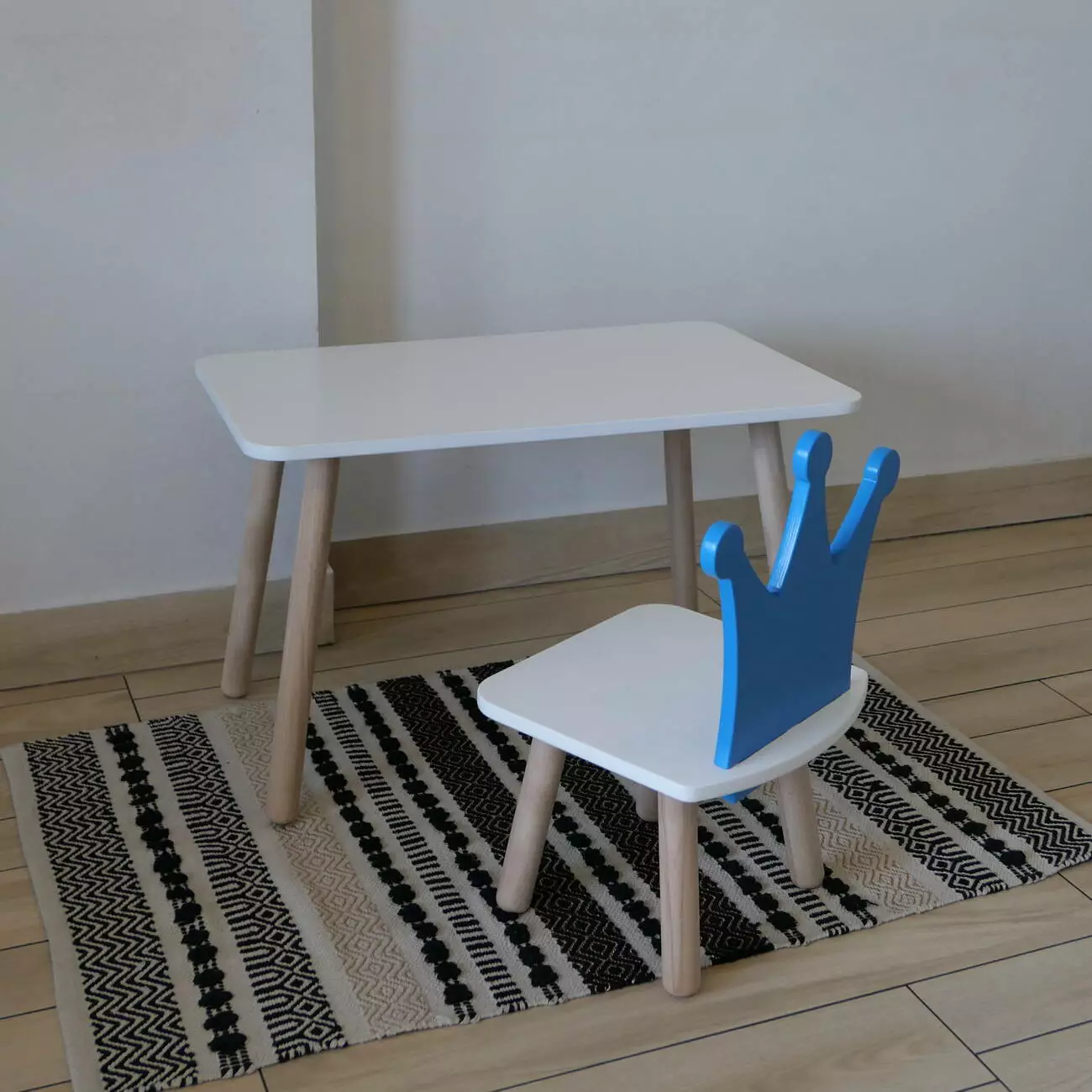 Комплект стіл та стул дитячий ChildWood - Set Стіл білий прямокутний + стілець білий блакитний Корона (Фанера)