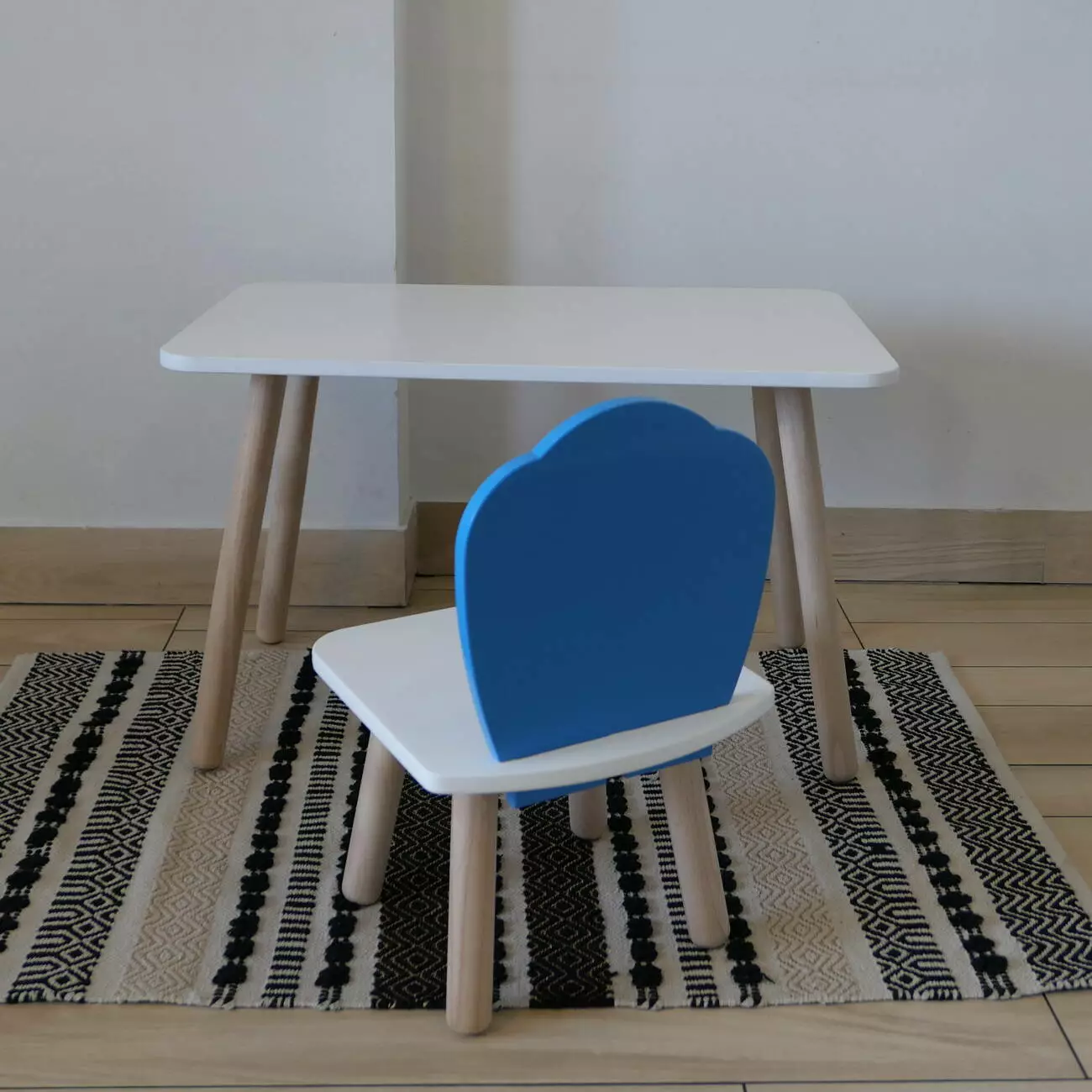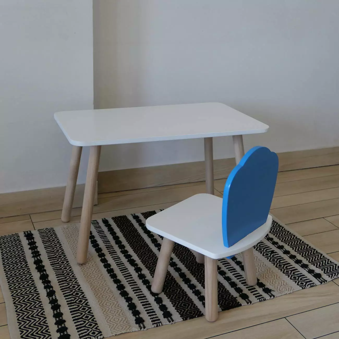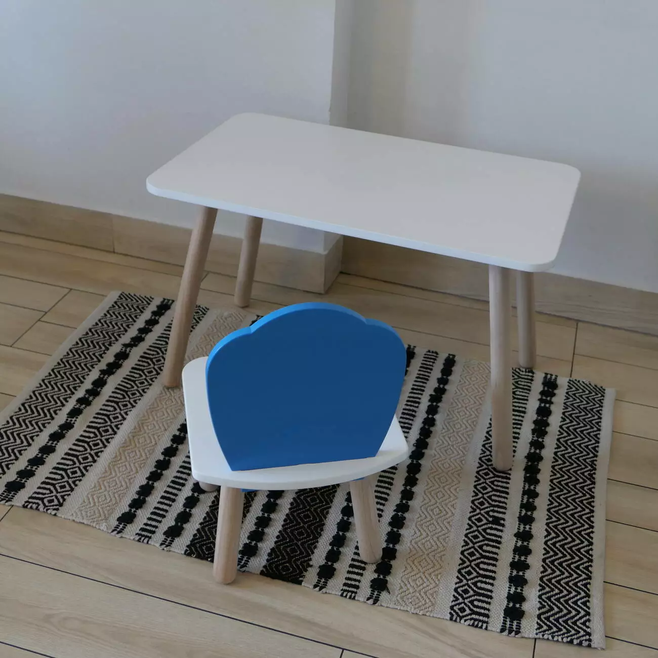 Комплект стіл та стул дитячий ChildWood - Set Стіл білий прямокутний + стілець білий блакитний Мушля (Фанера)