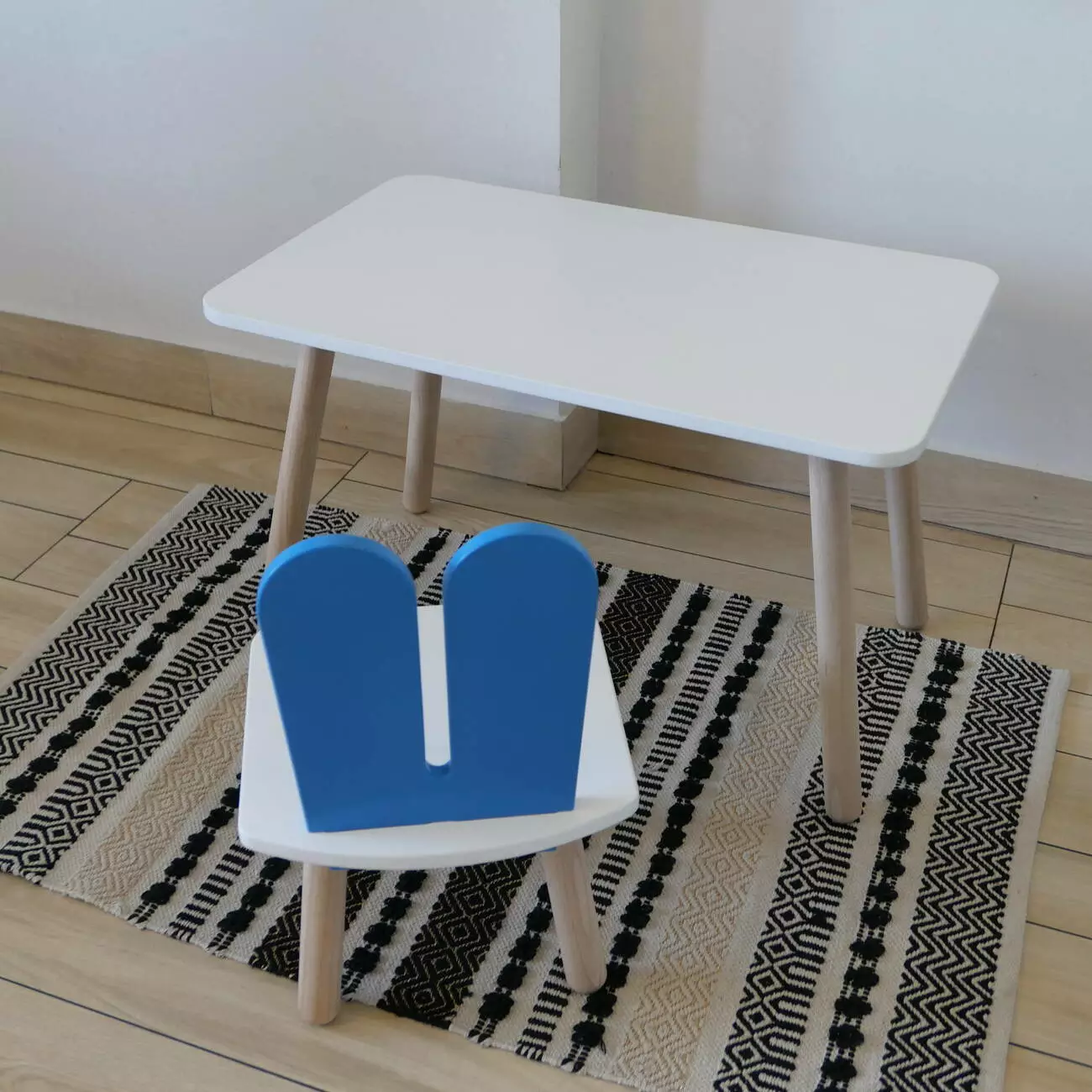 Комплект стіл та стул дитячий ChildWood - Set Стіл білий прямокутний + стілець білий блакитний Зайчик (Фанера)