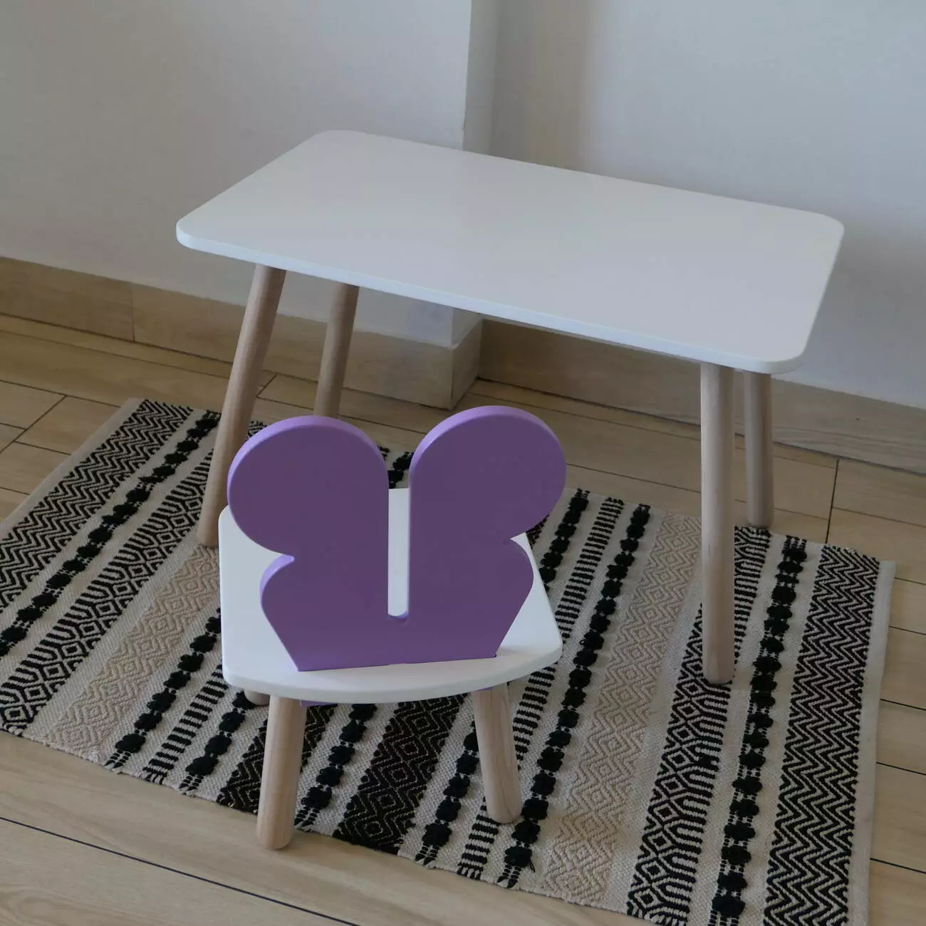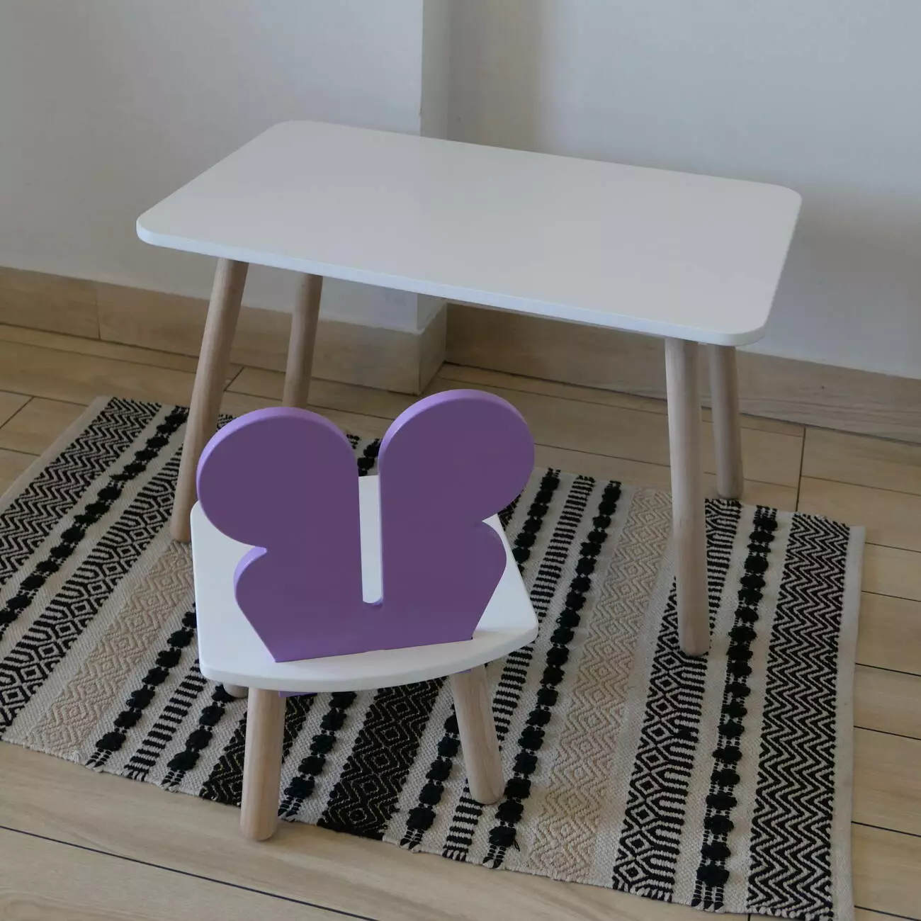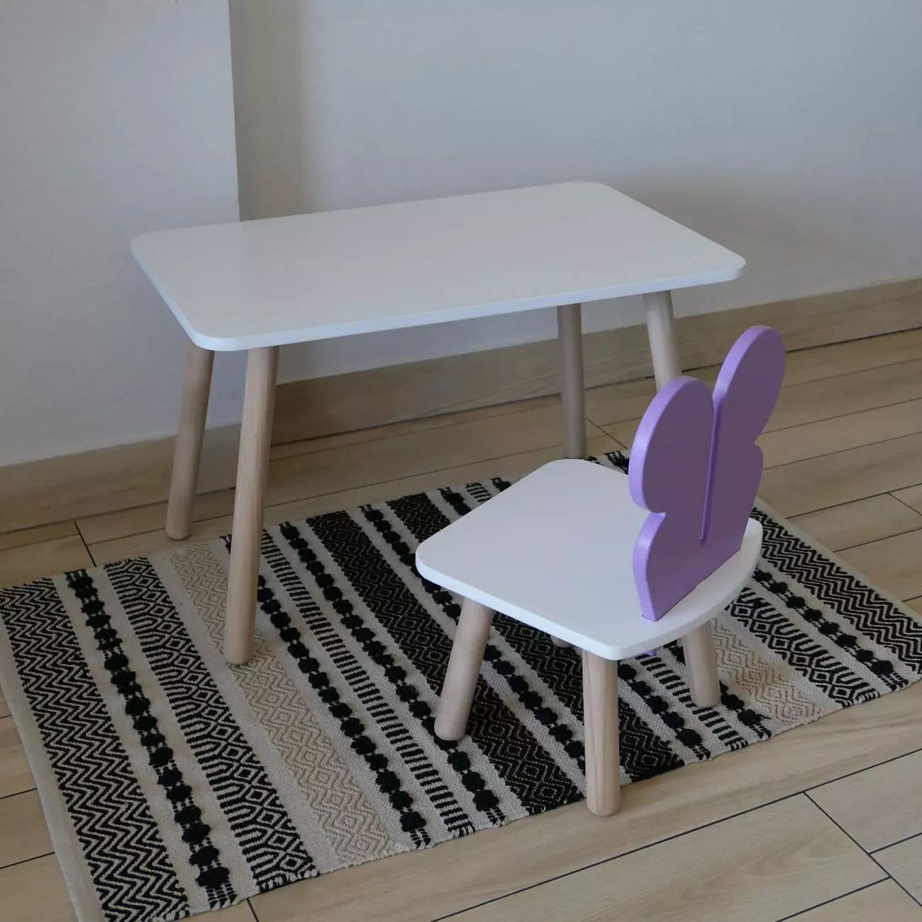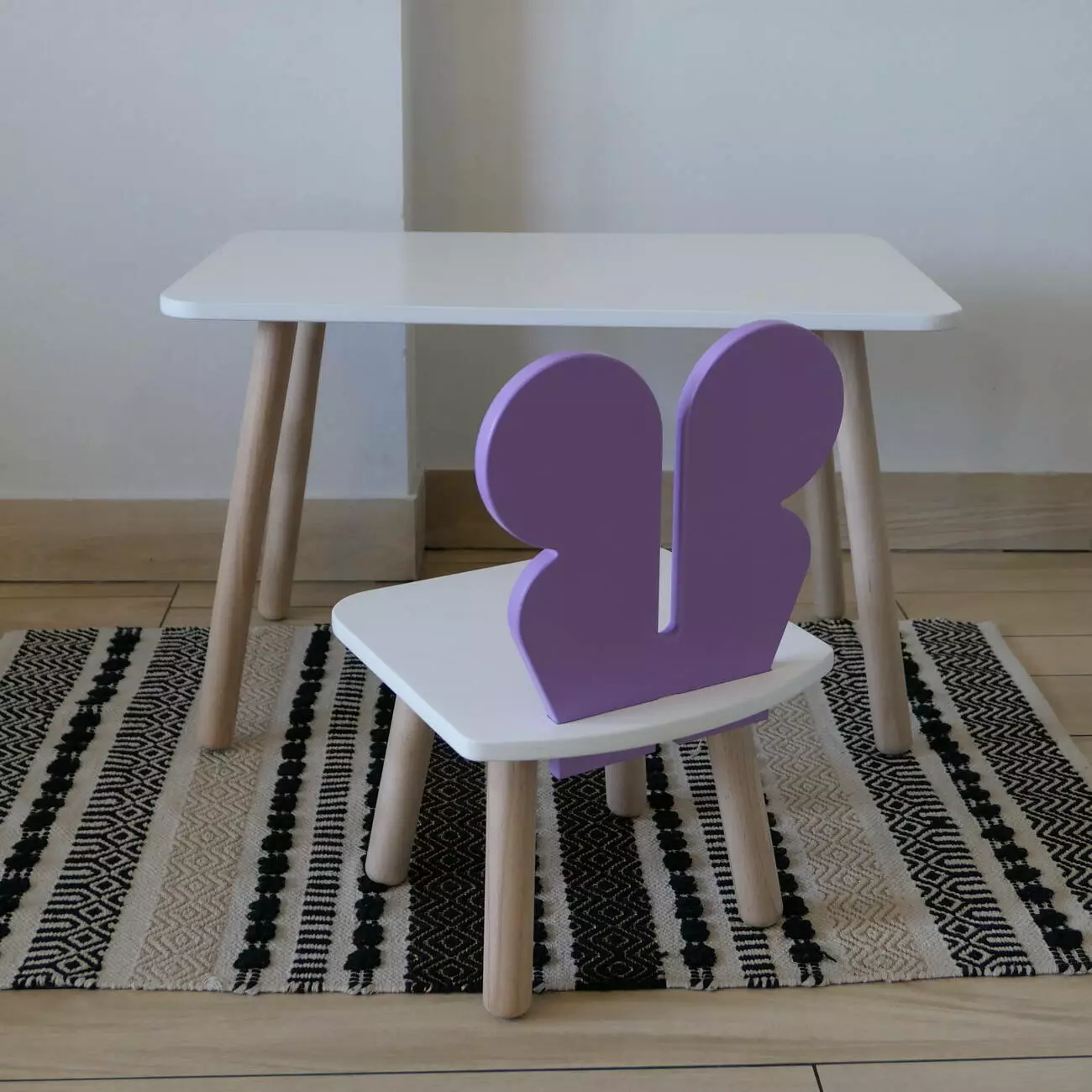 Комплект стіл та стул дитячий ChildWood - Set Стіл білий прямокутний + стілець білий бузковий Метелик (Фанера)