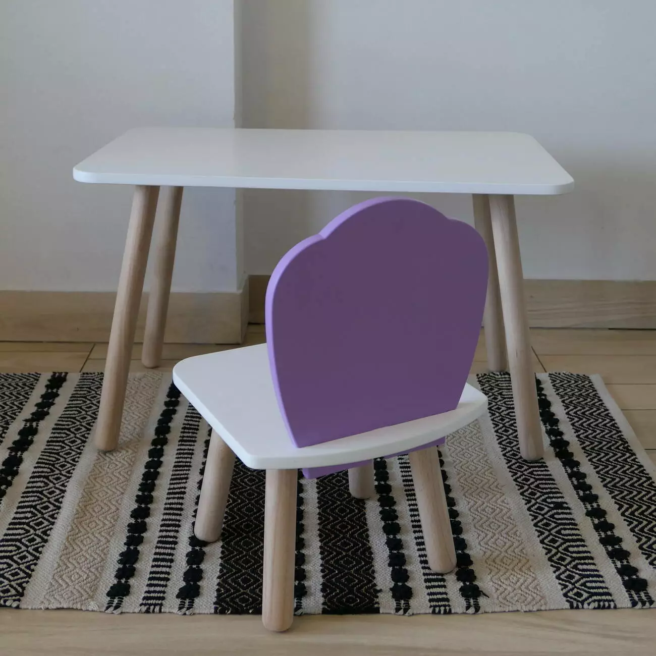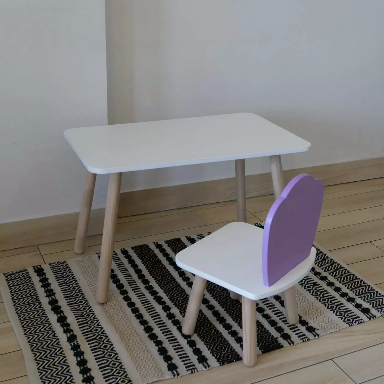 Комплект стіл та стул дитячий ChildWood - Set Стіл білий прямокутний + стілець білий бузковий Мушля (Фанера)