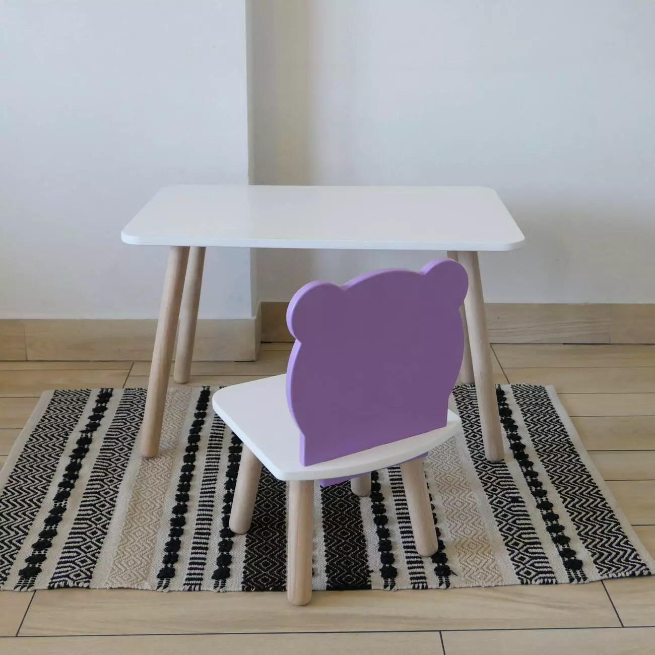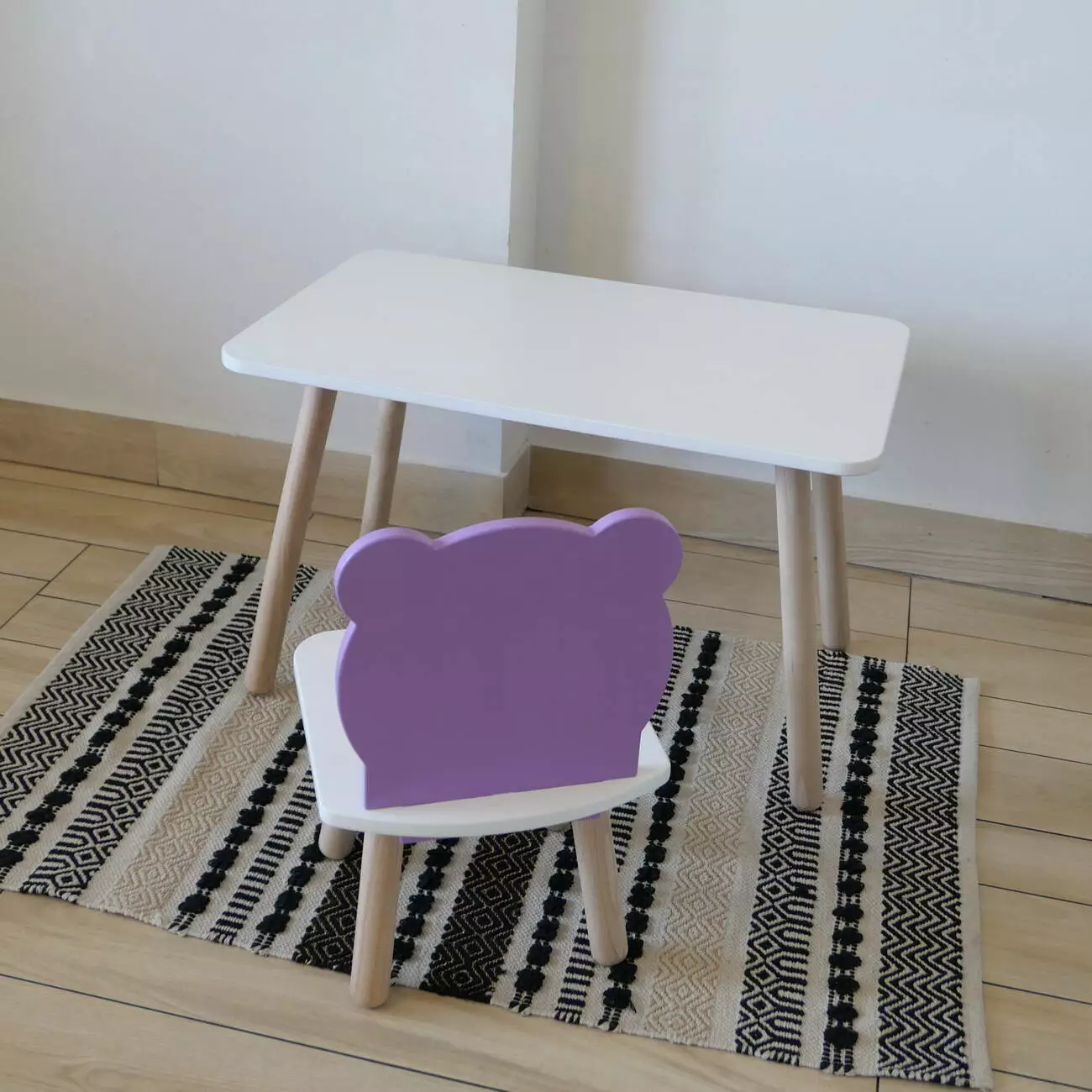 Комплект стіл та стул дитячий ChildWood - Set Стіл білий прямокутний + стілець білий бузковий Ведмедик (Фанера)
