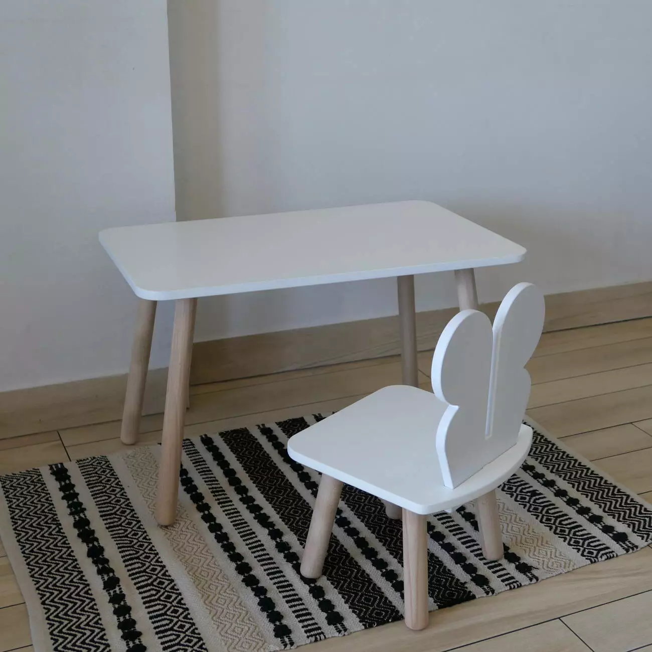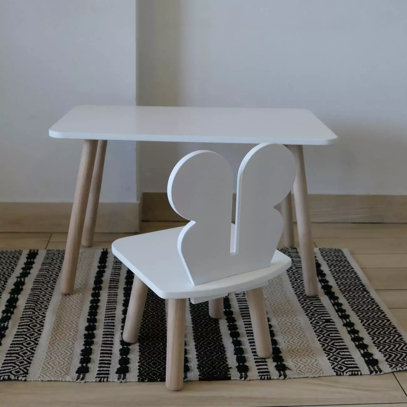 Комплект стіл та стул дитячий ChildWood - Set Стіл білий прямокутний + стілець білий Метелик (Фанера)