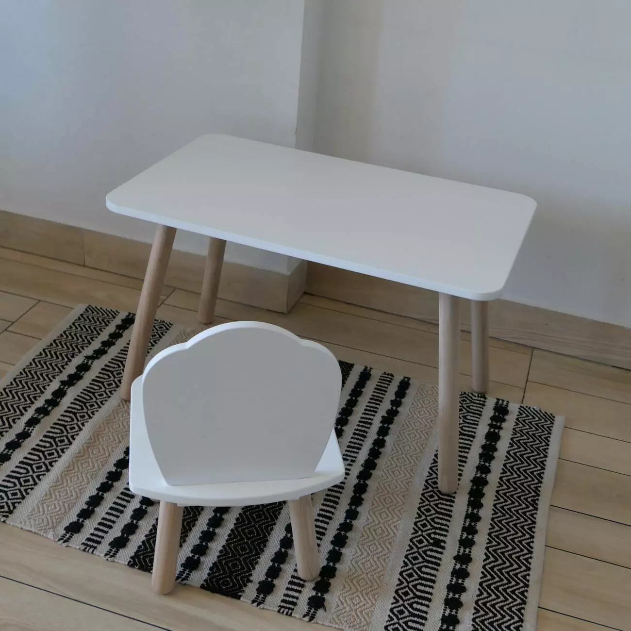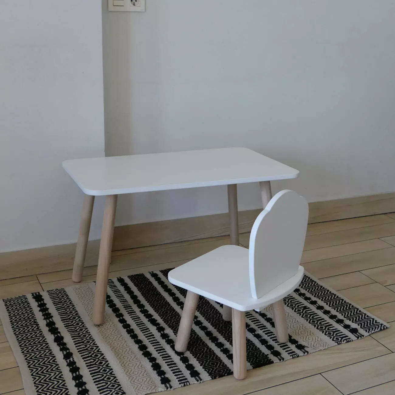 Комплект стіл та стул дитячий ChildWood - Set Стіл білий прямокутний + стілець білий Мушля (Фанера)