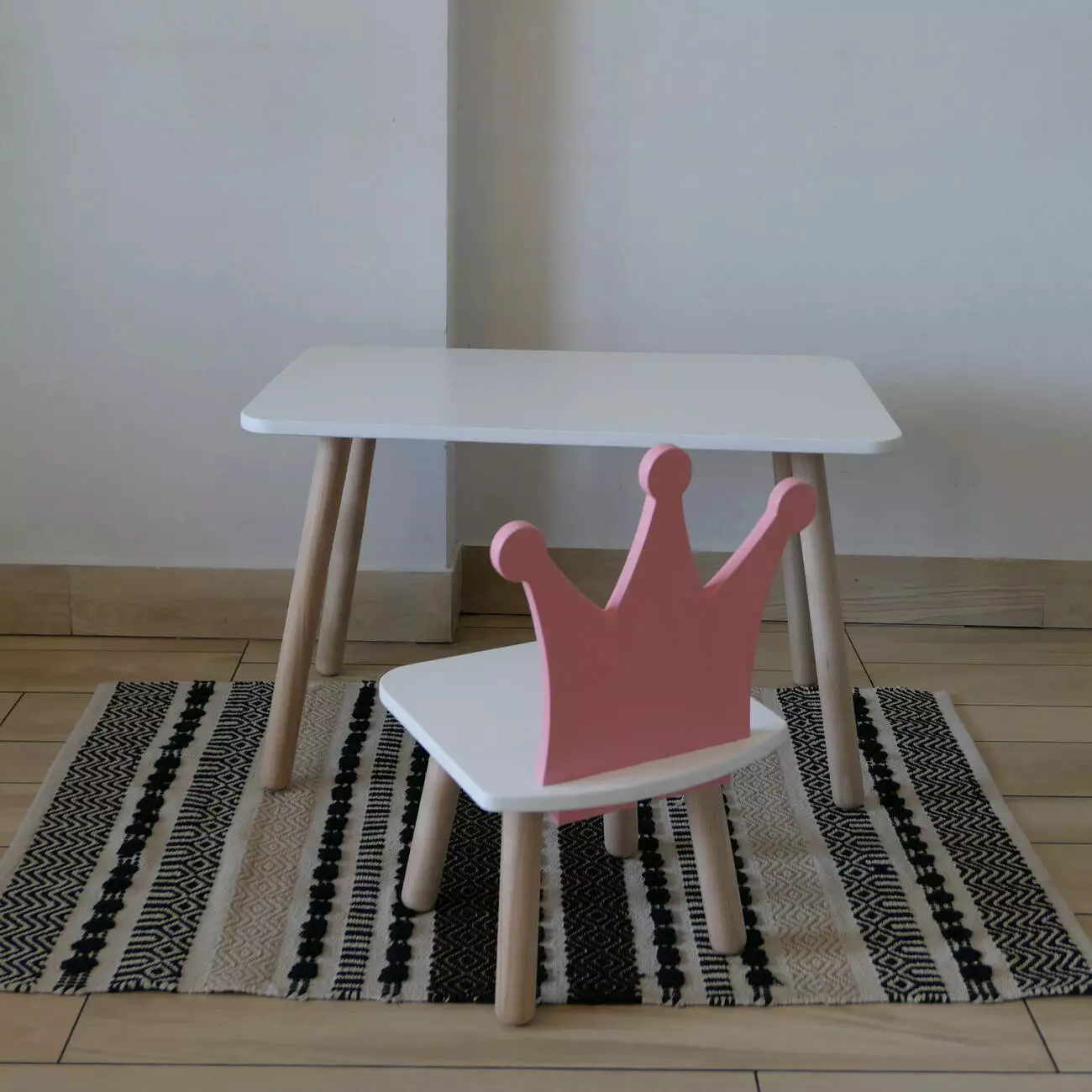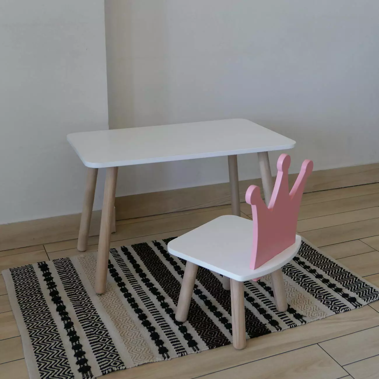 Комплект стіл та стул дитячий ChildWood - Set Стіл білий прямокутний + стілець білий рожевий Корона (Фанера)