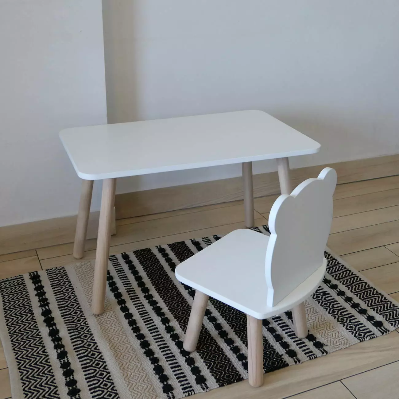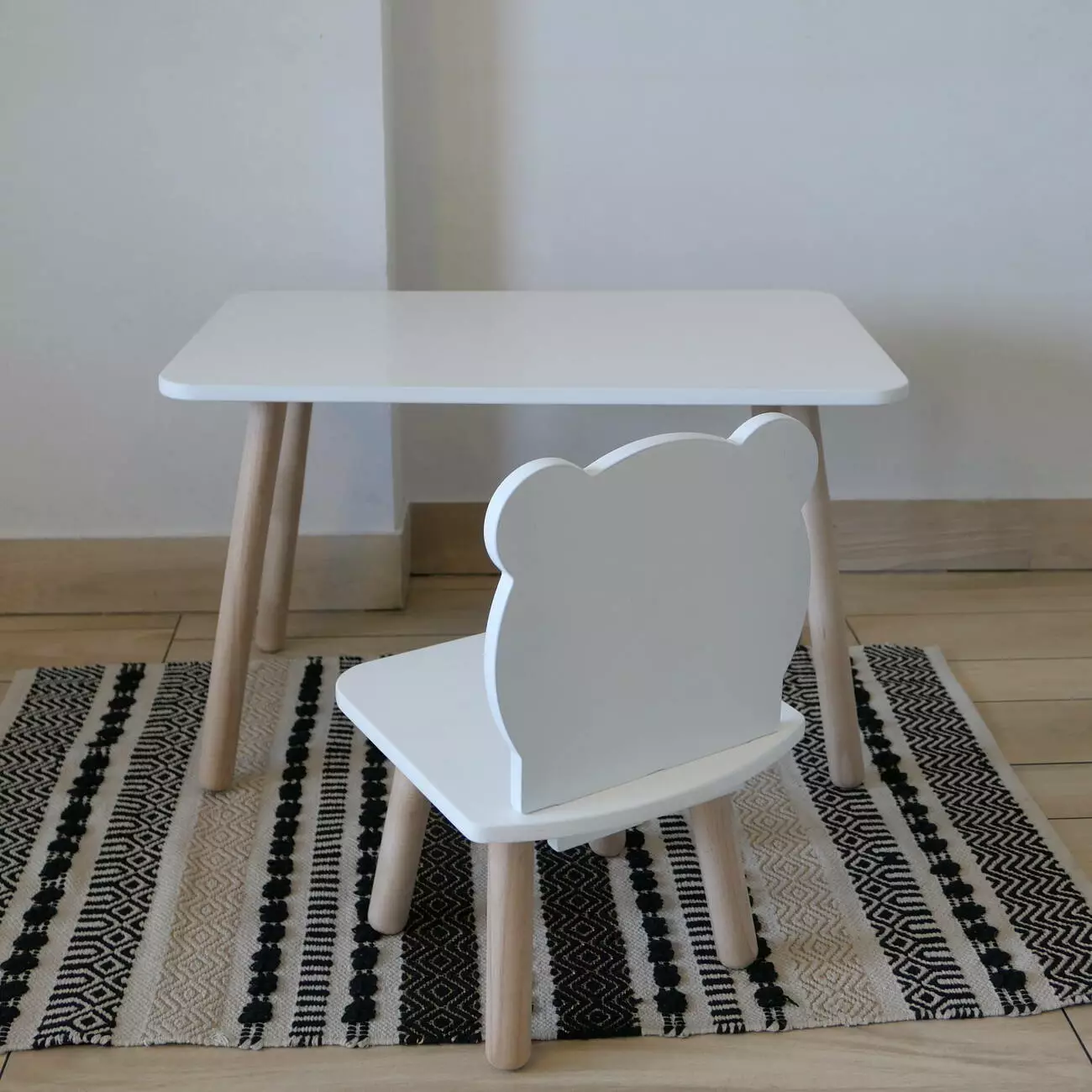 Комплект стіл та стул дитячий ChildWood - Set Стіл білий прямокутний + стілець білий Ведмедик (Фанера)