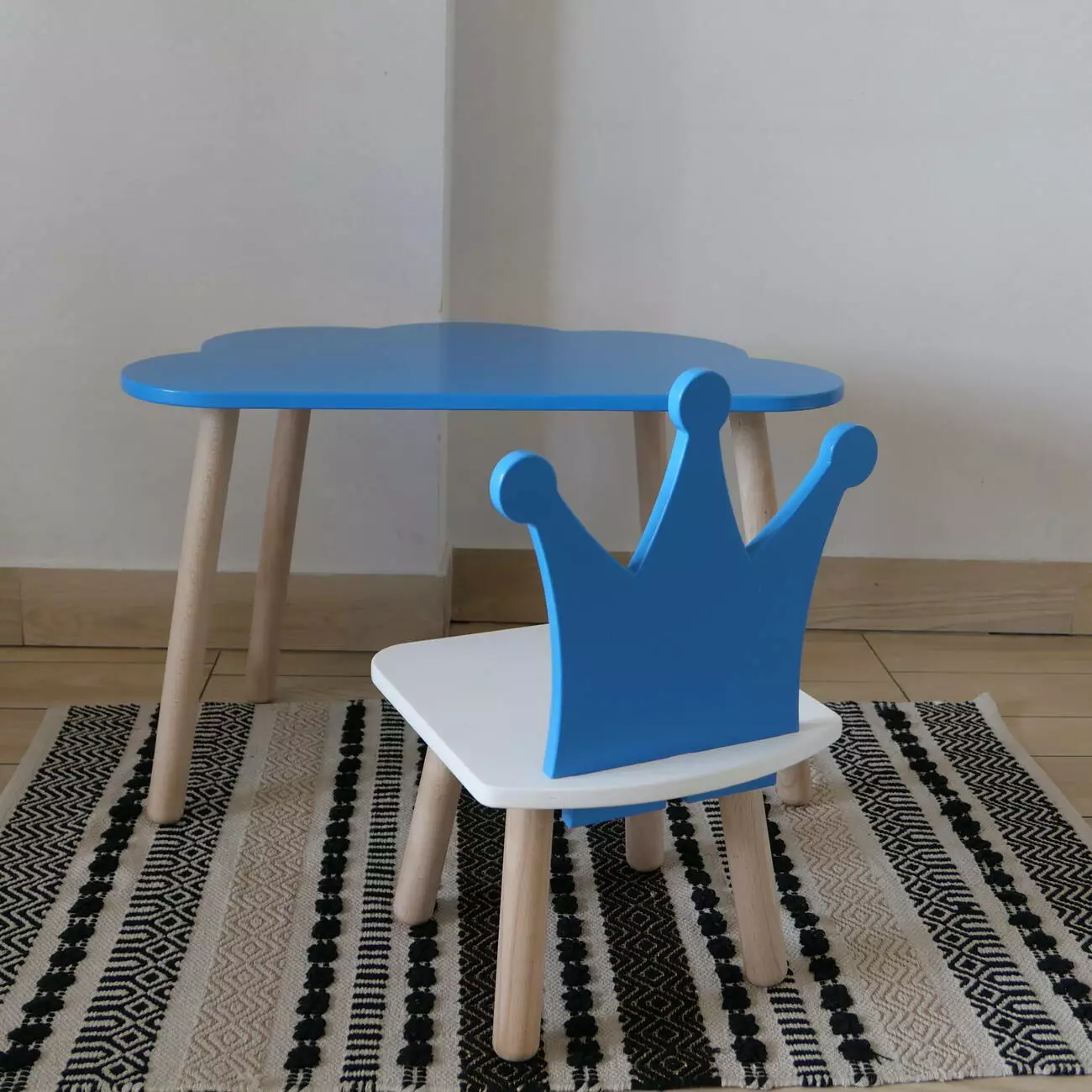Комплект стіл та стул дитячий ChildWood - Set Стіл блакитний хмаринка + стілець білий блакитний Корона (Фанера)