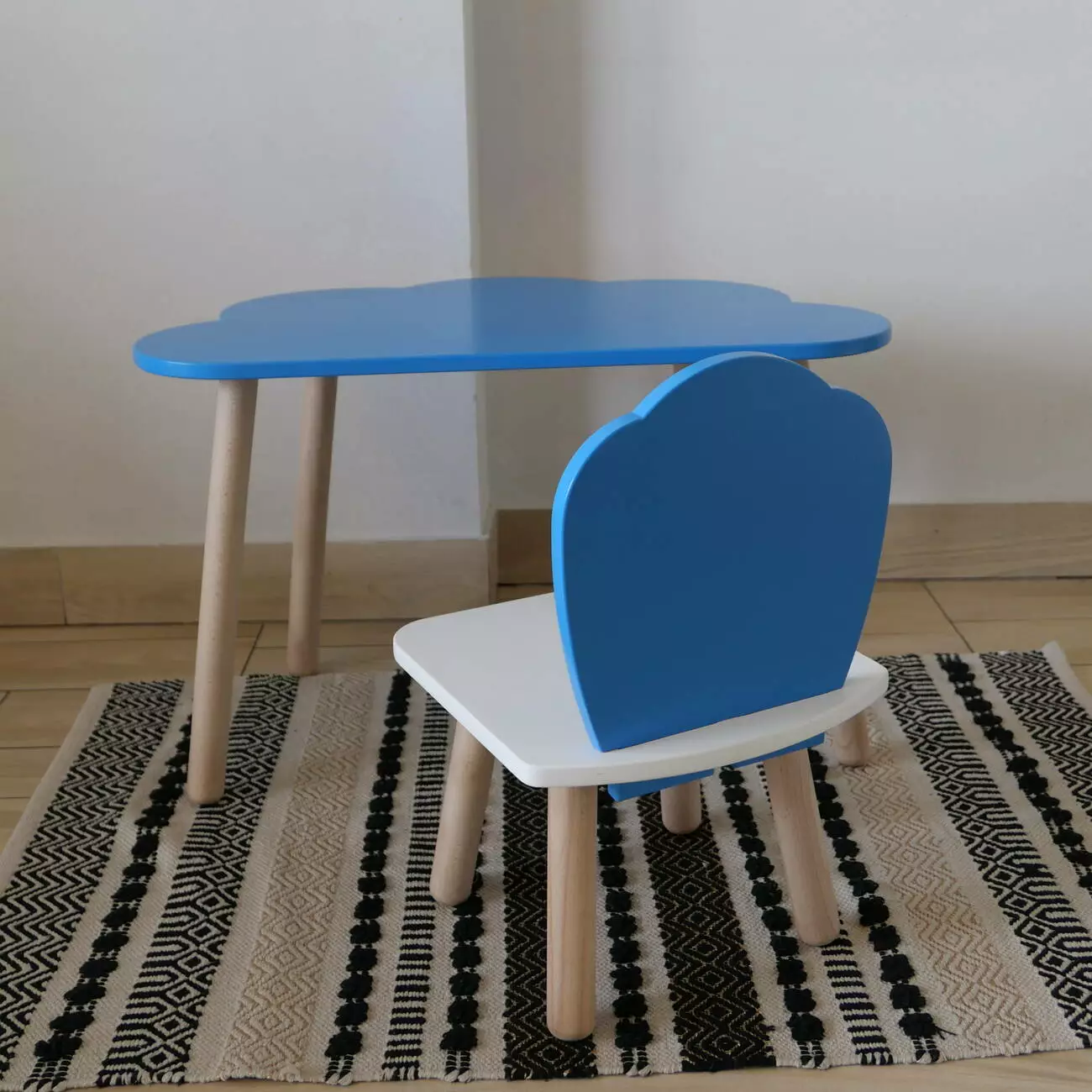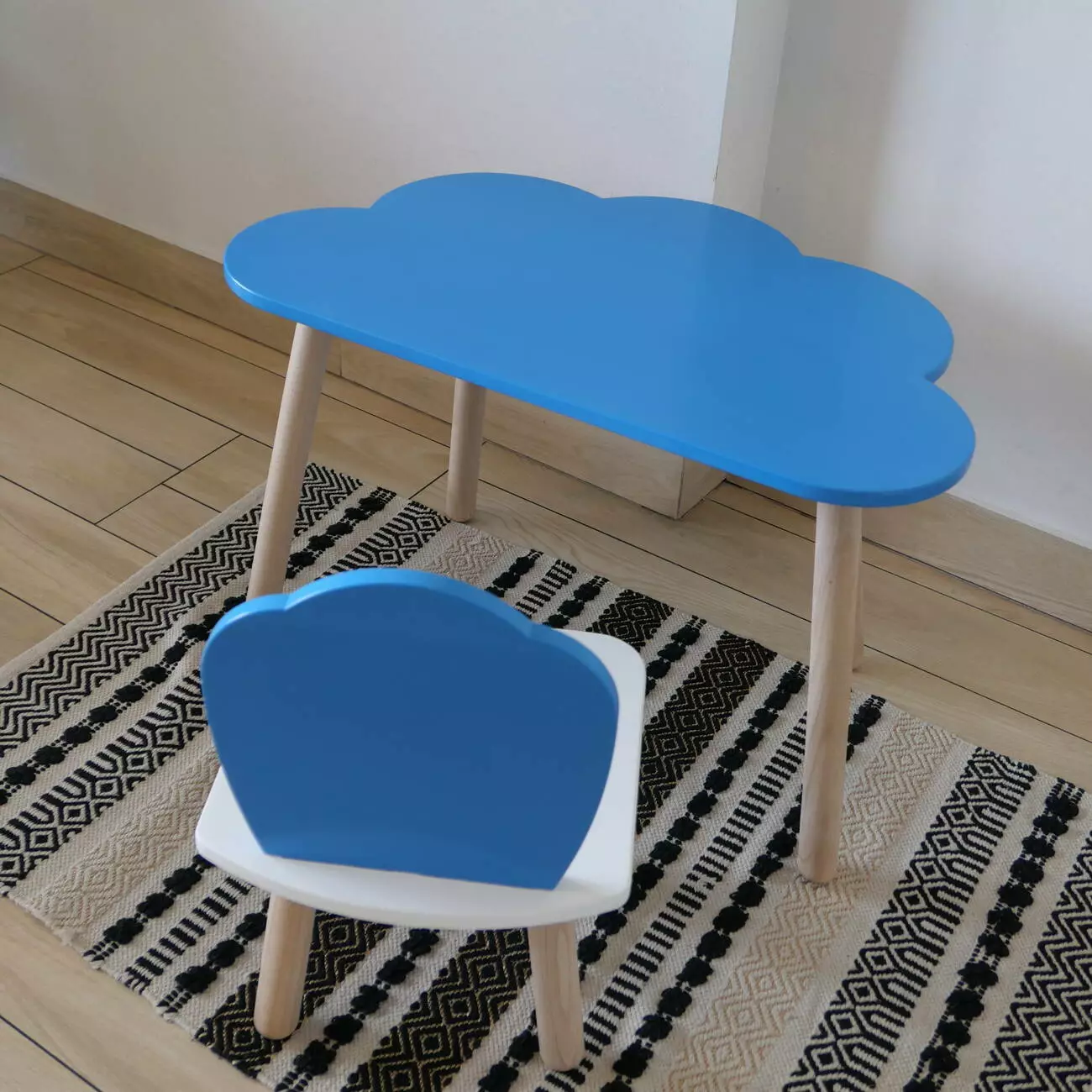 Комплект стіл та стул дитячий ChildWood - Set Стіл блакитний хмаринка + стілець білий блакитний Мушля (Фанера)