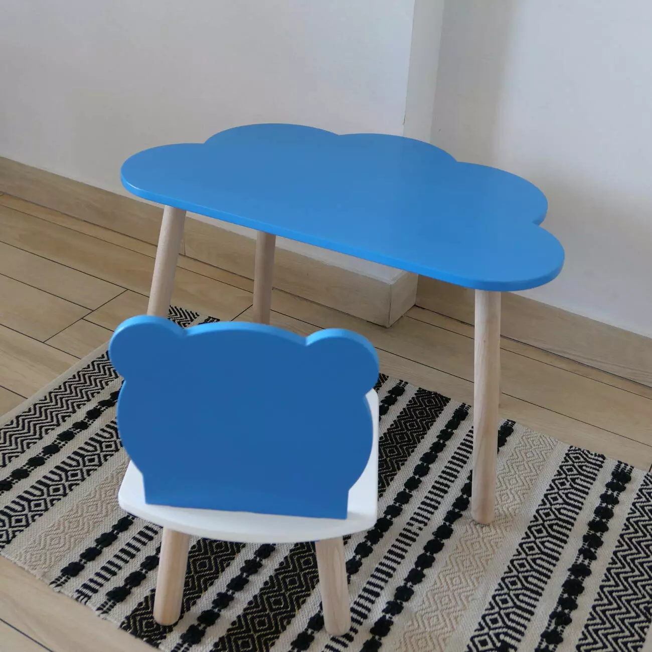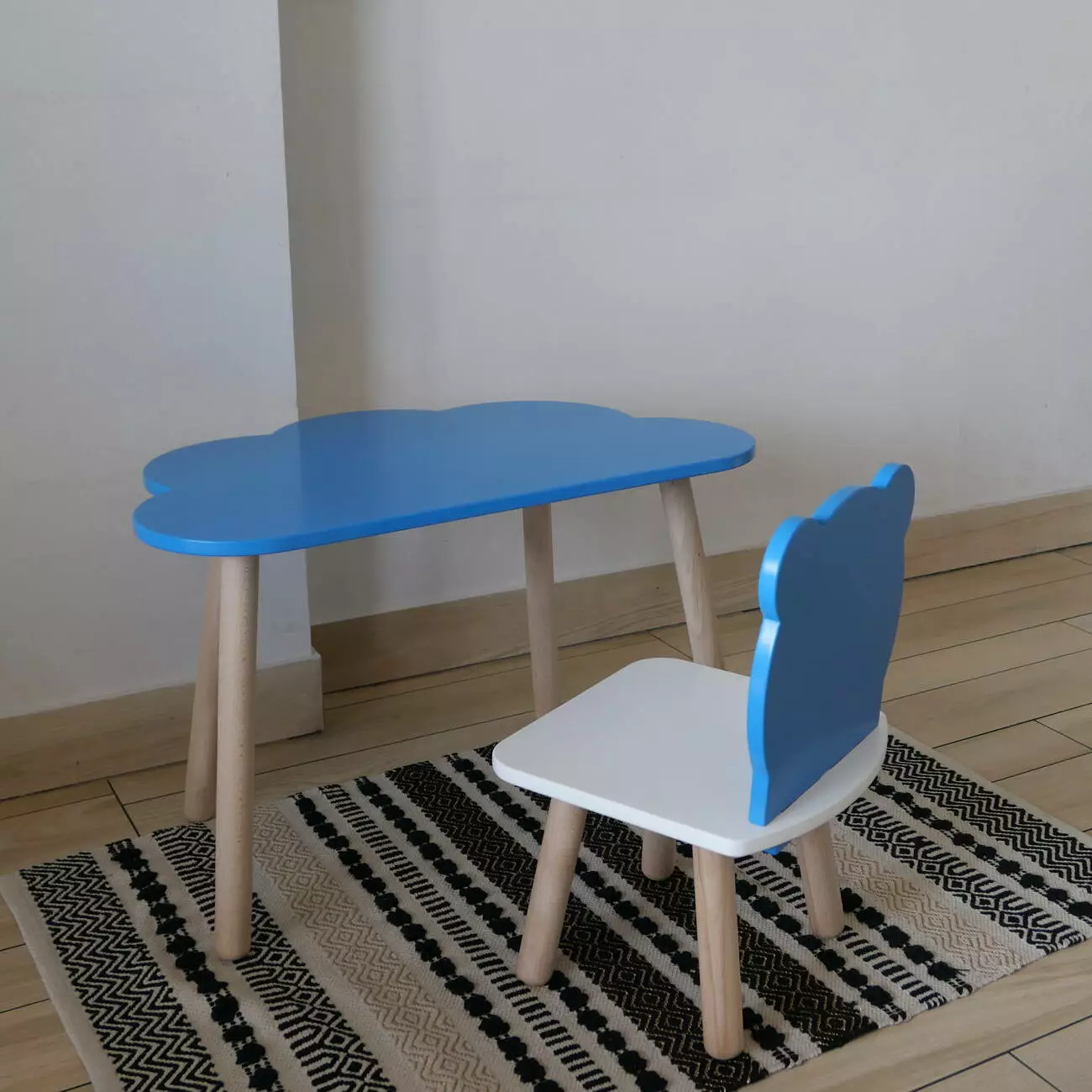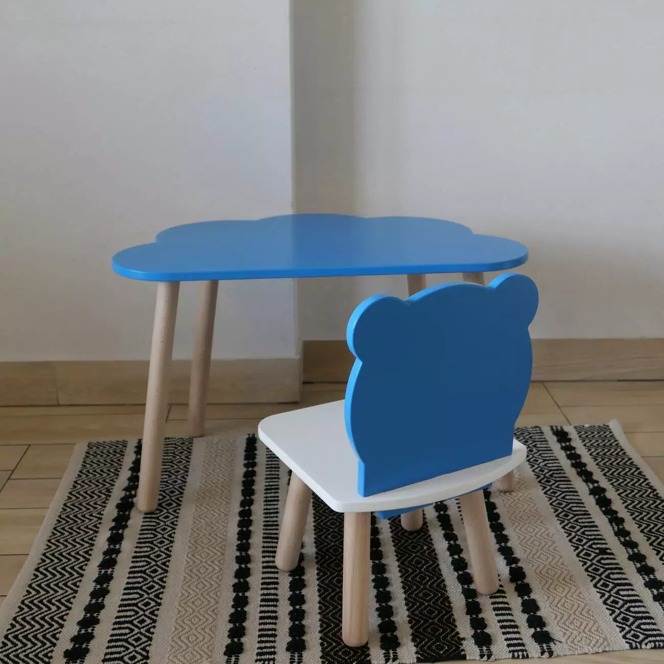 Комплект стіл та стул дитячий ChildWood - Set Стіл блакитний хмаринка + стілець білий блакитний Ведмедик (Фанера)