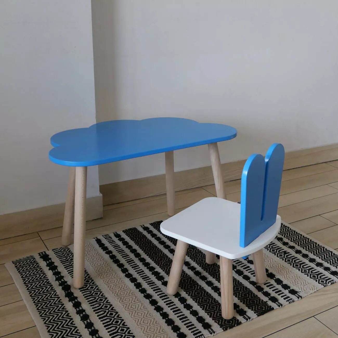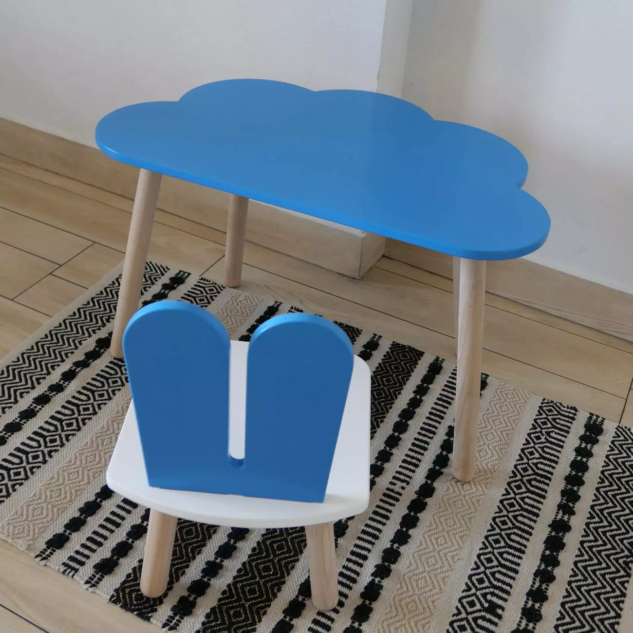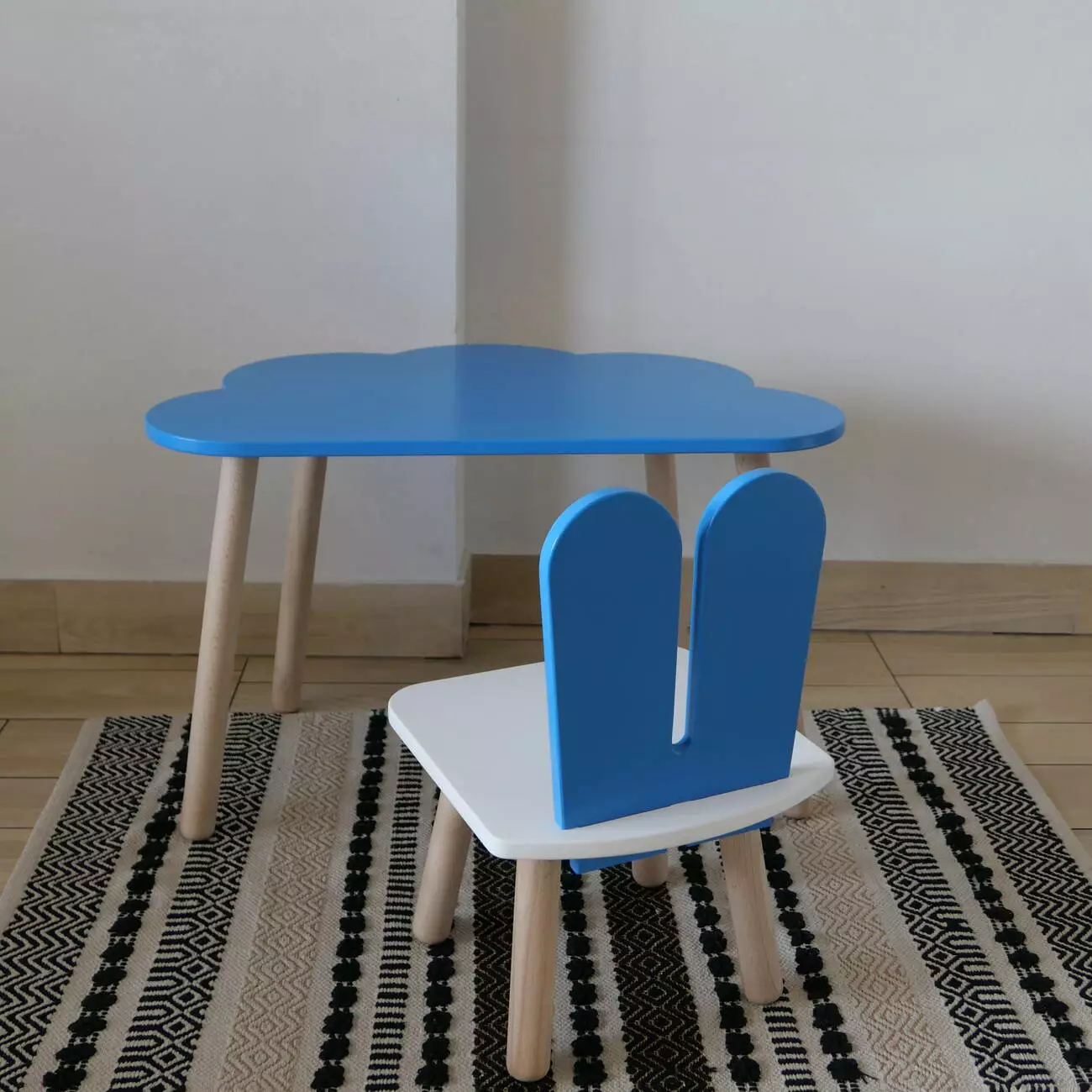 Комплект стіл та стул дитячий ChildWood - Set Стіл блакитний хмаринка + стілець білий блакитний Зайчик (Фанера)