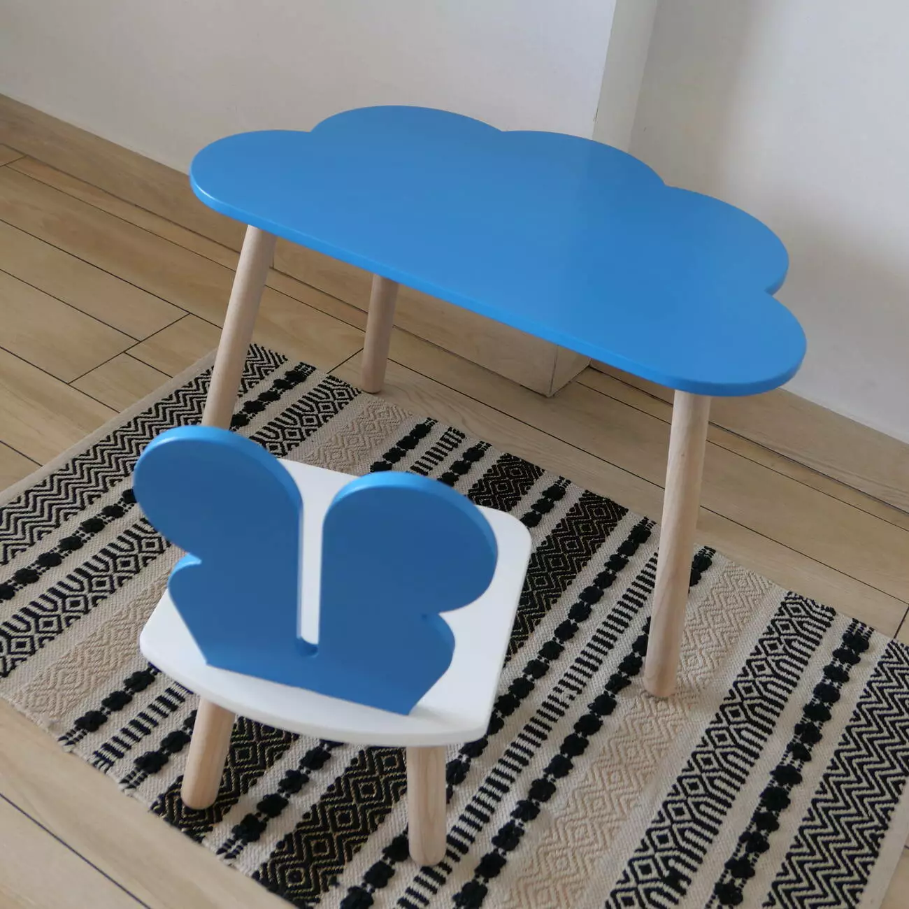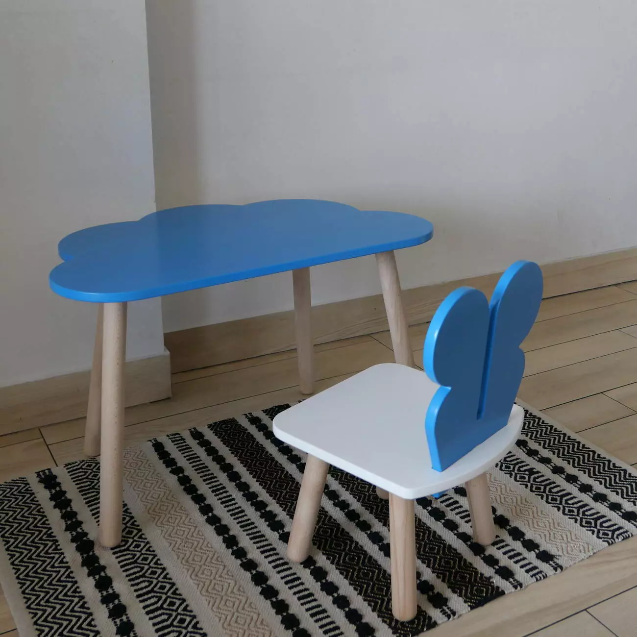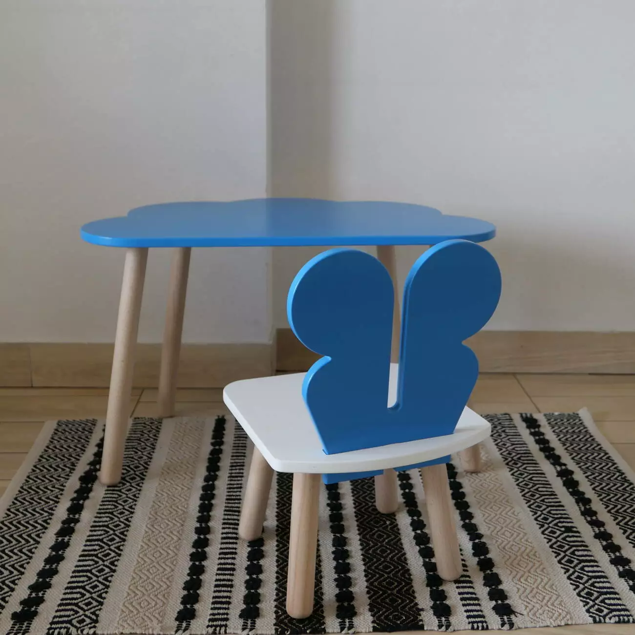 Комплект стіл та стул дитячий ChildWood - Set Стіл блакитний хмаринка + стілець білий блакийний Метелик (Фанера)