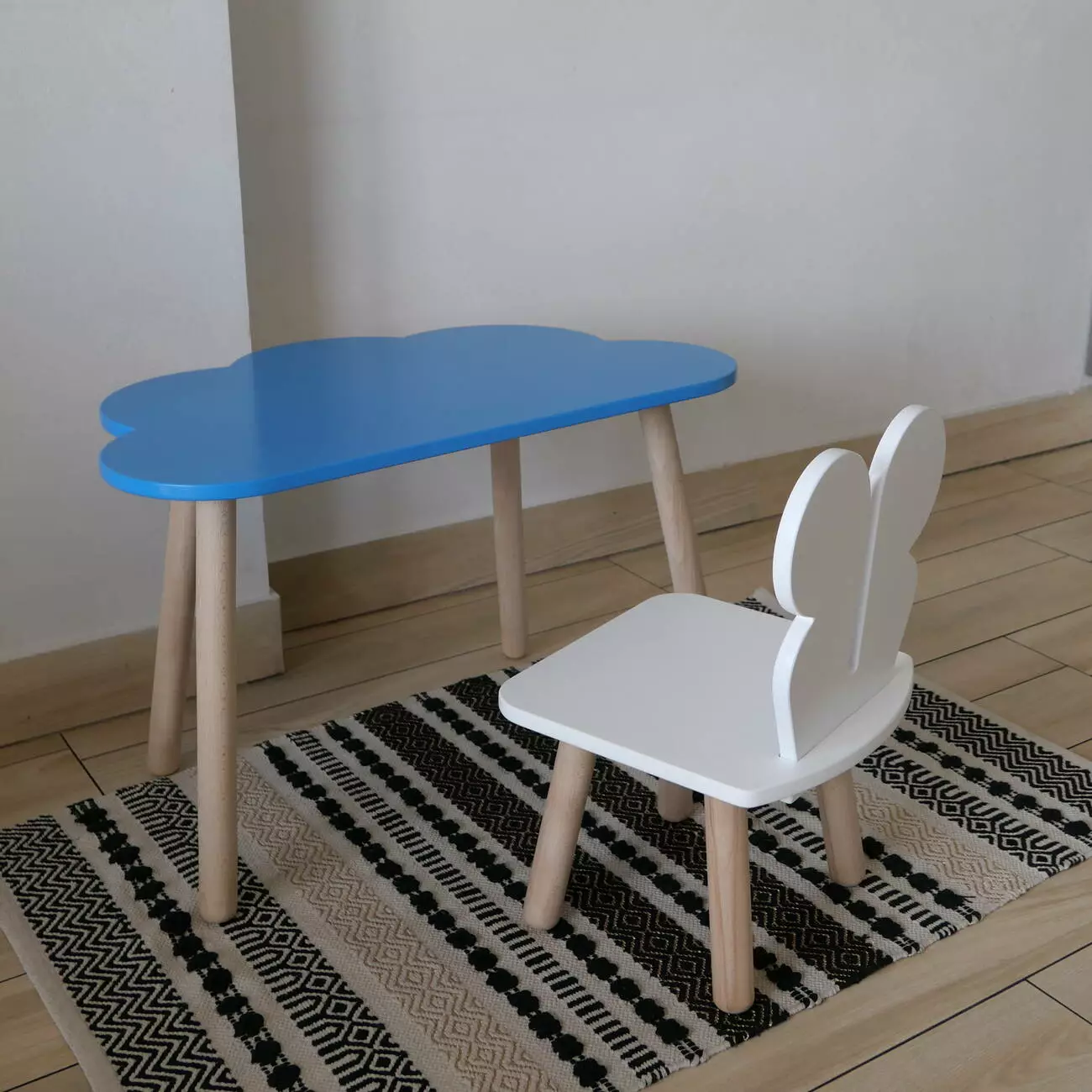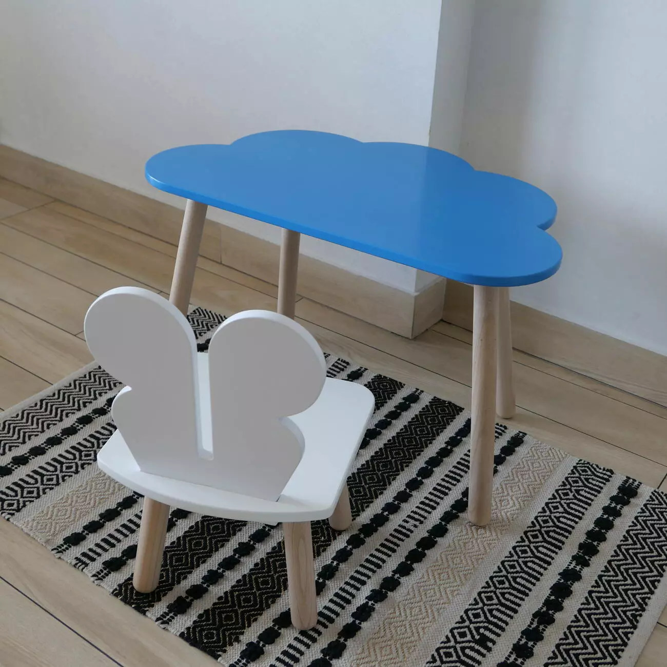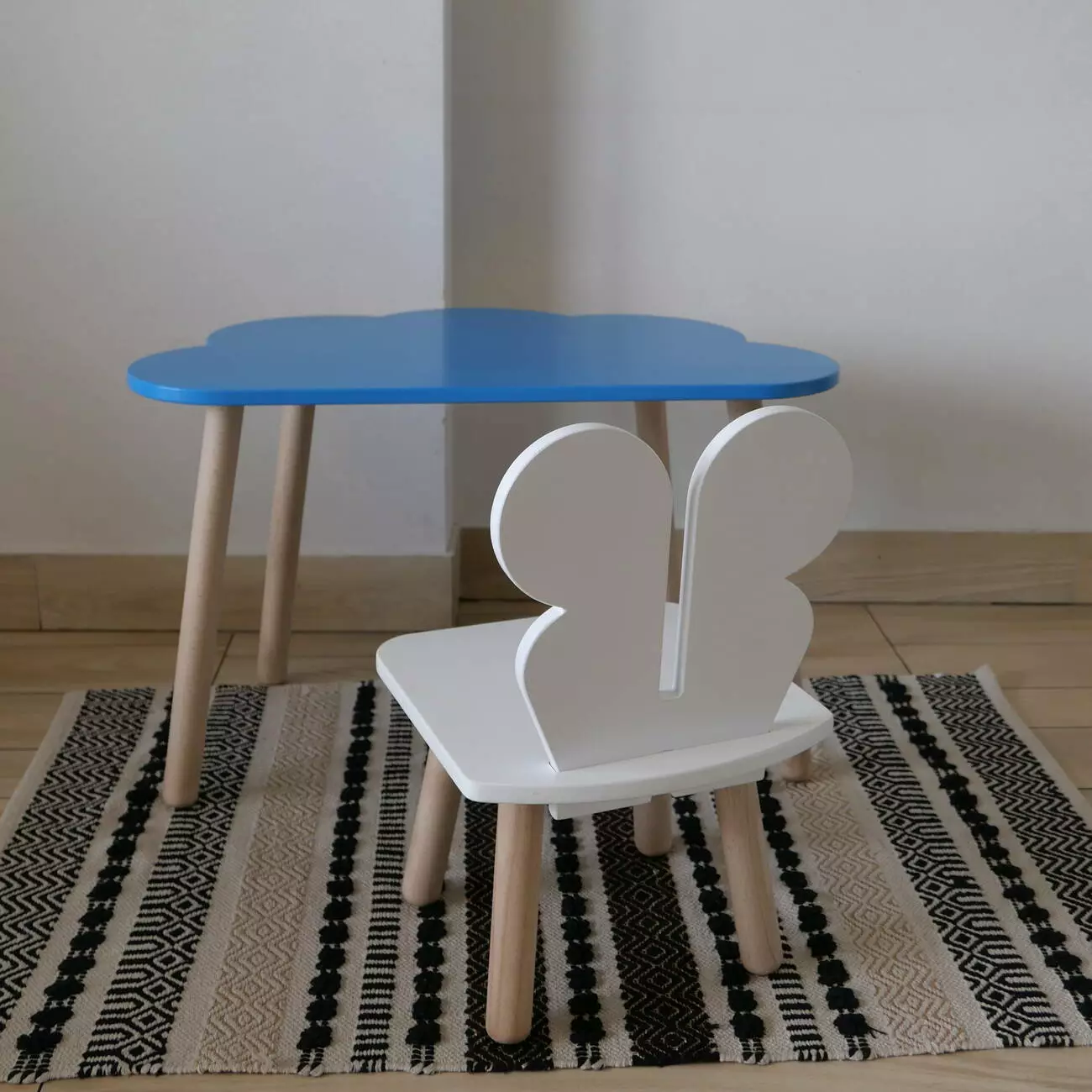 Комплект стіл та стул дитячий ChildWood - Set Стіл блакитний хмаринка + стілець білий Метелик (Фанера)