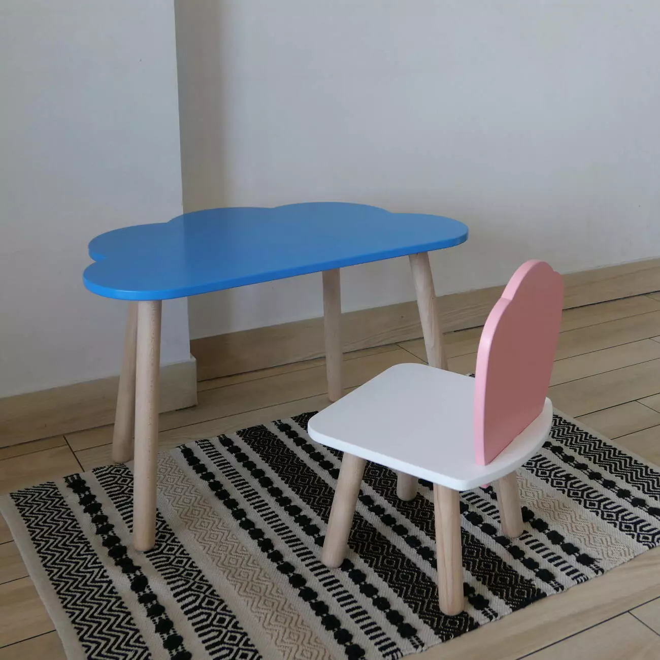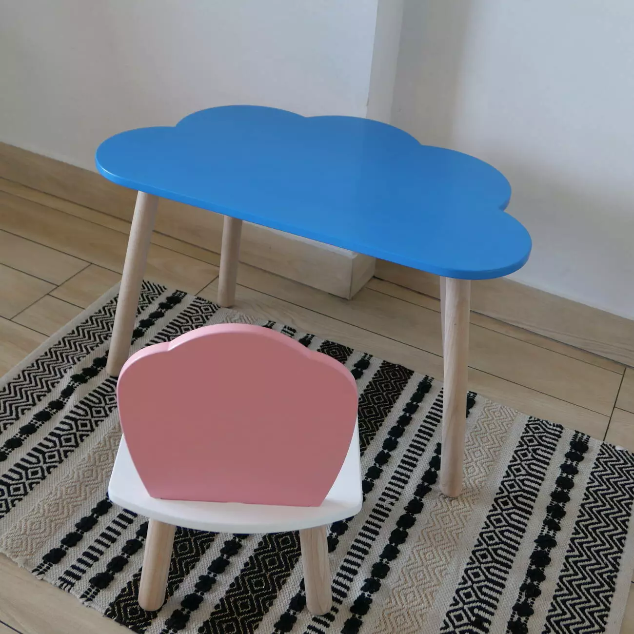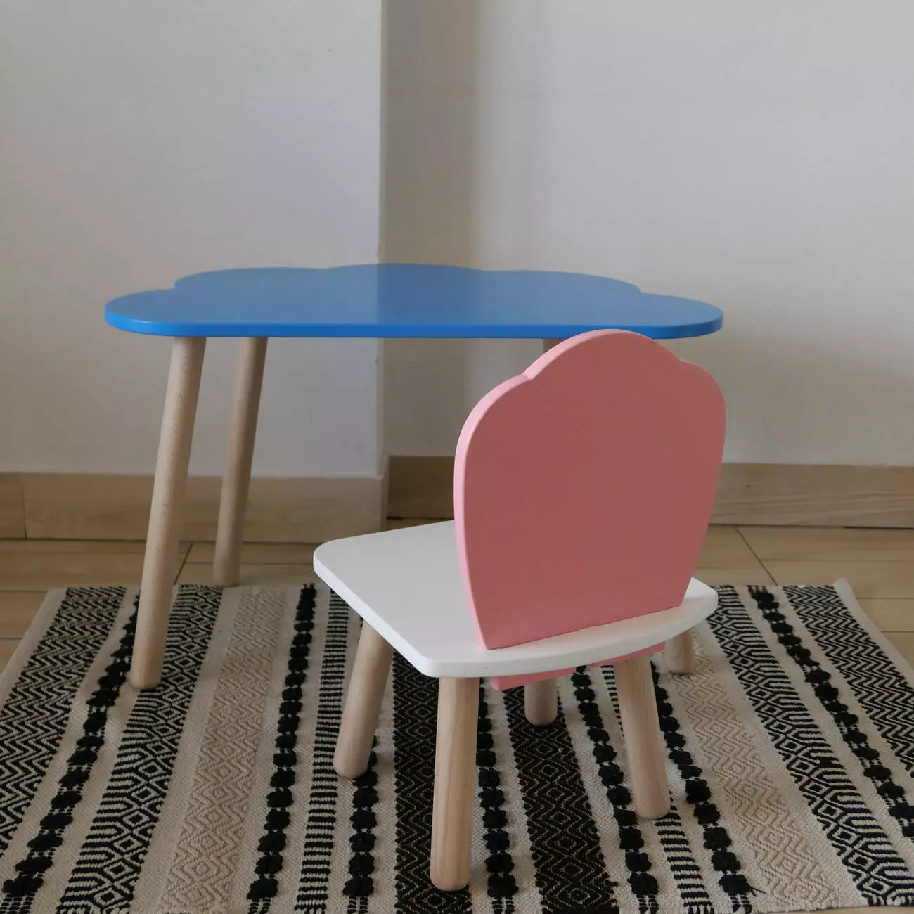Комплект стіл та стул дитячий ChildWood - Set Стіл блакитний хмаринка + стілець білий рожевий Мушля (Фанера)