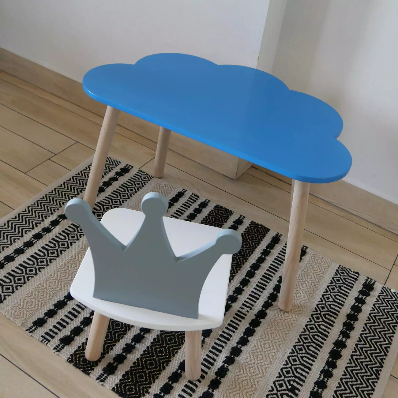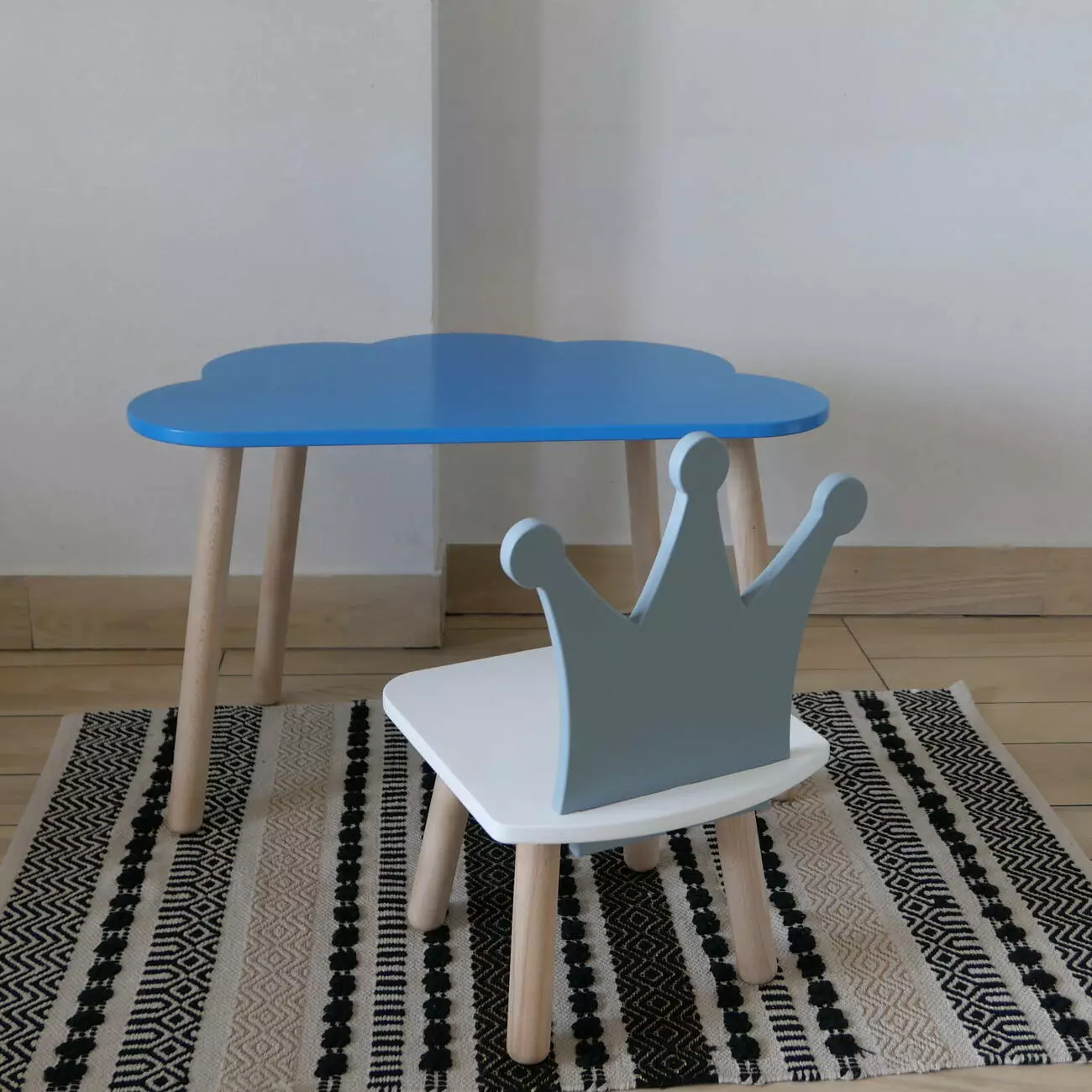 Комплект стіл та стул дитячий ChildWood - Set Стіл блакитний хмаринка + стілець білий сірий Корона (Фанера)