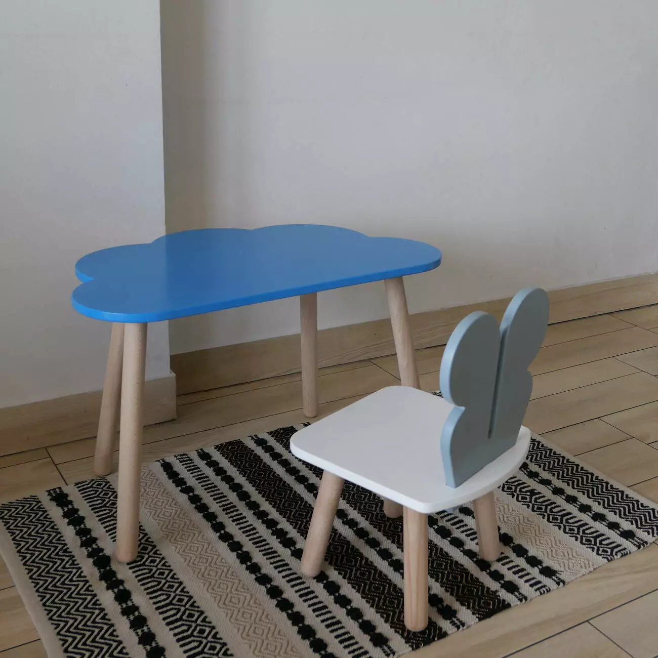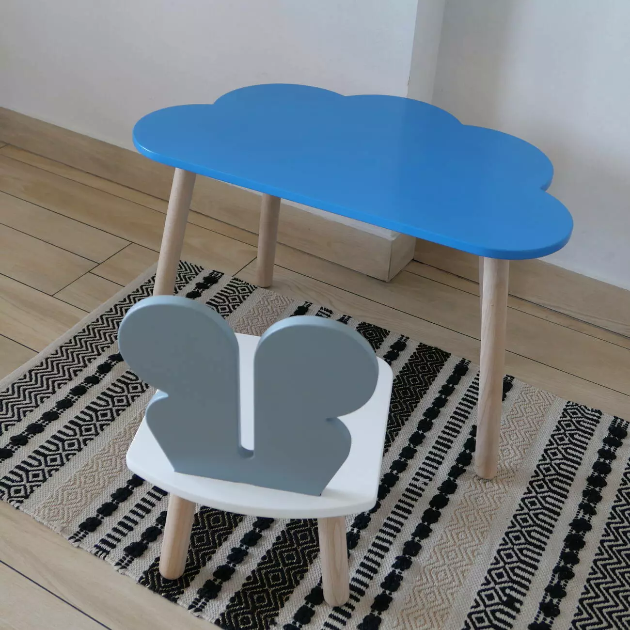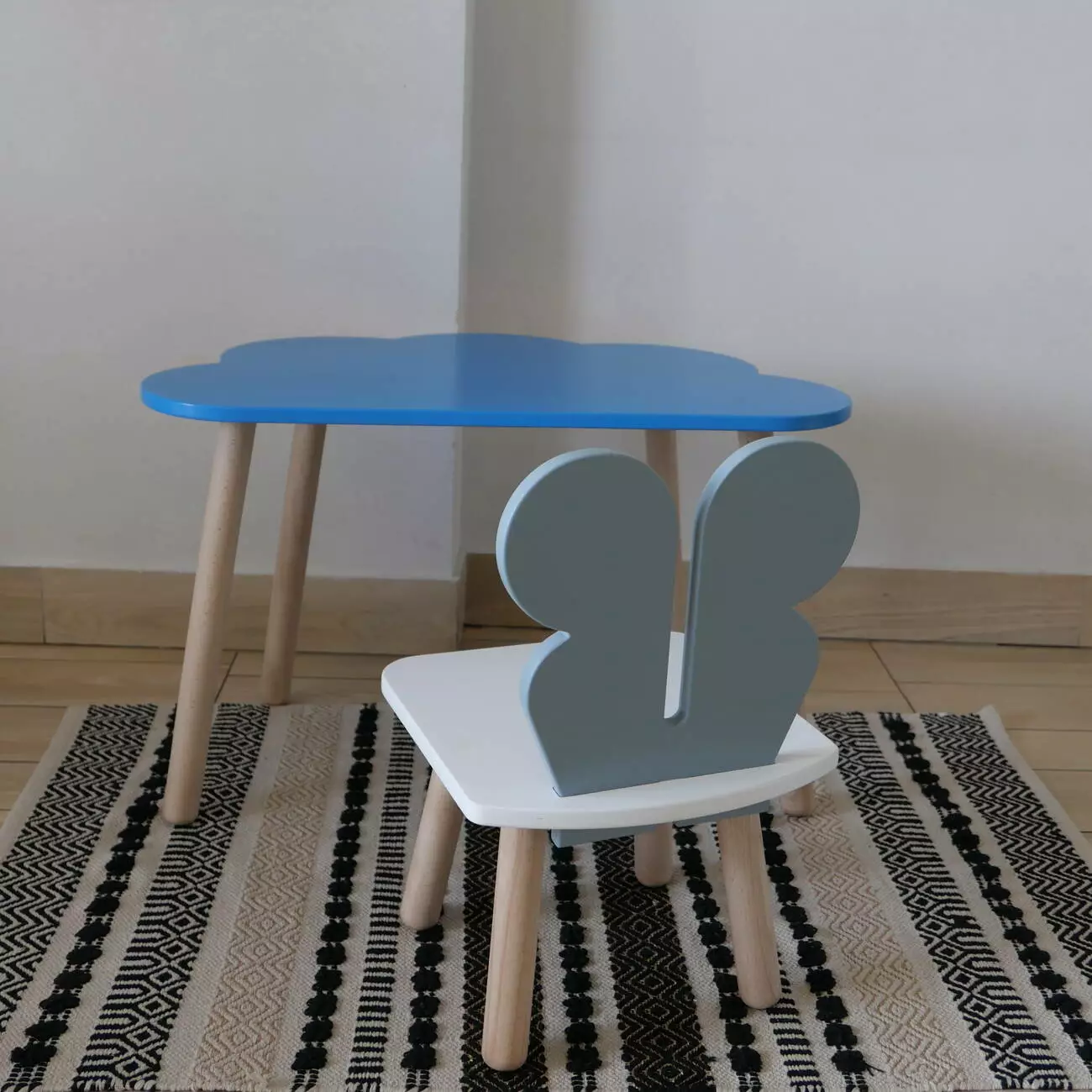 Комплект стіл та стул дитячий ChildWood - Set Стіл блакитний хмаринка + стілець білий сірий Метелик (Фанера)
