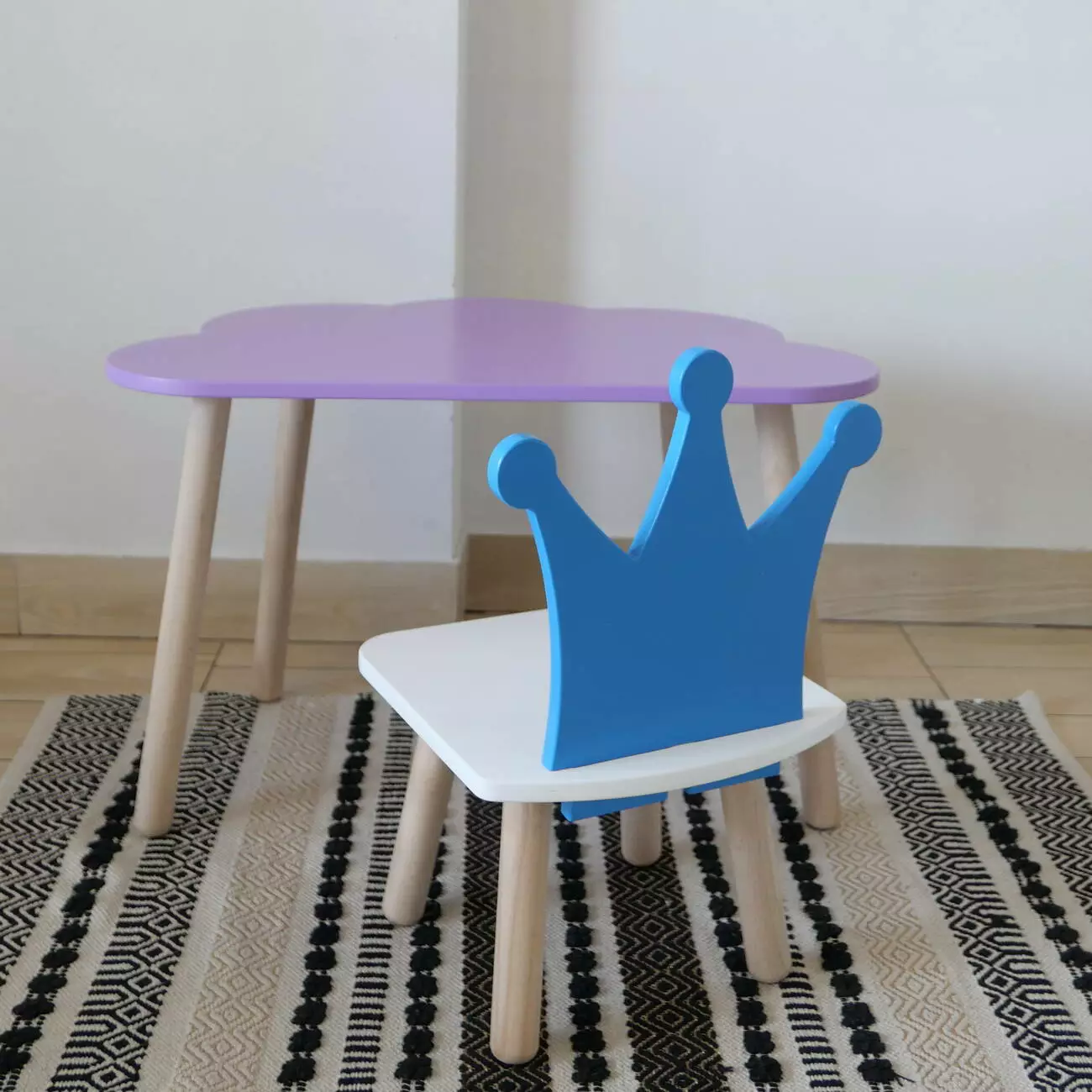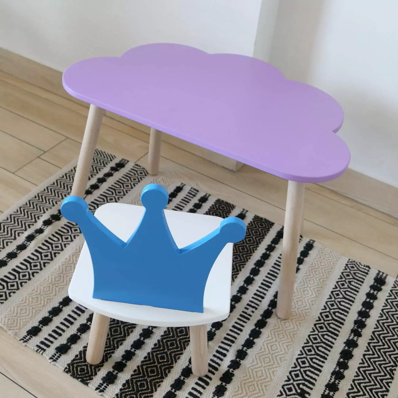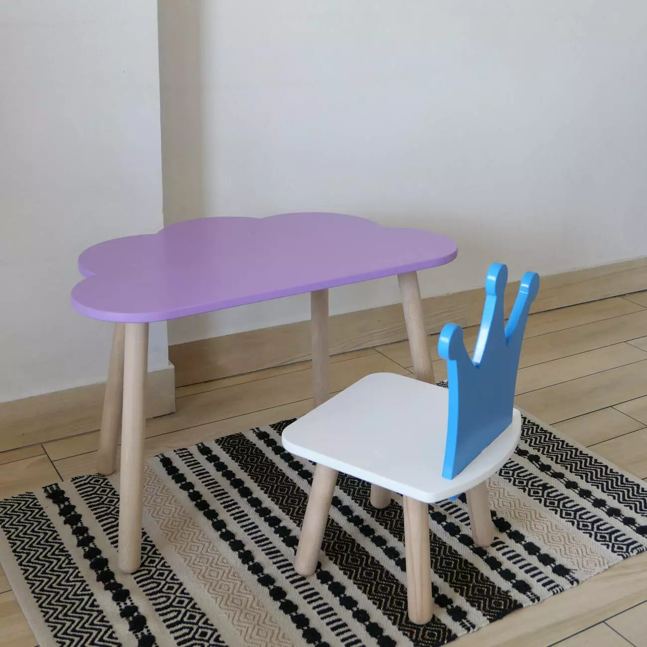 Комплект стіл та стул дитячий ChildWood - Set Стіл бузковий хмаринка + стілець білий блакитний Корона (Фанера)