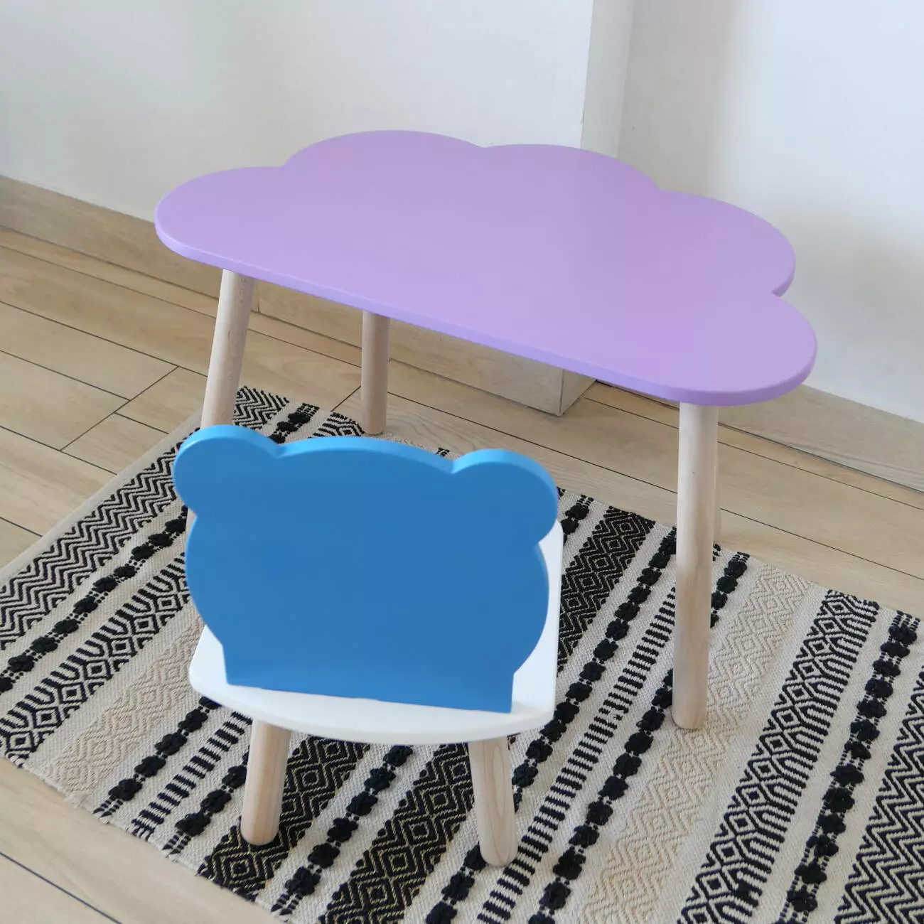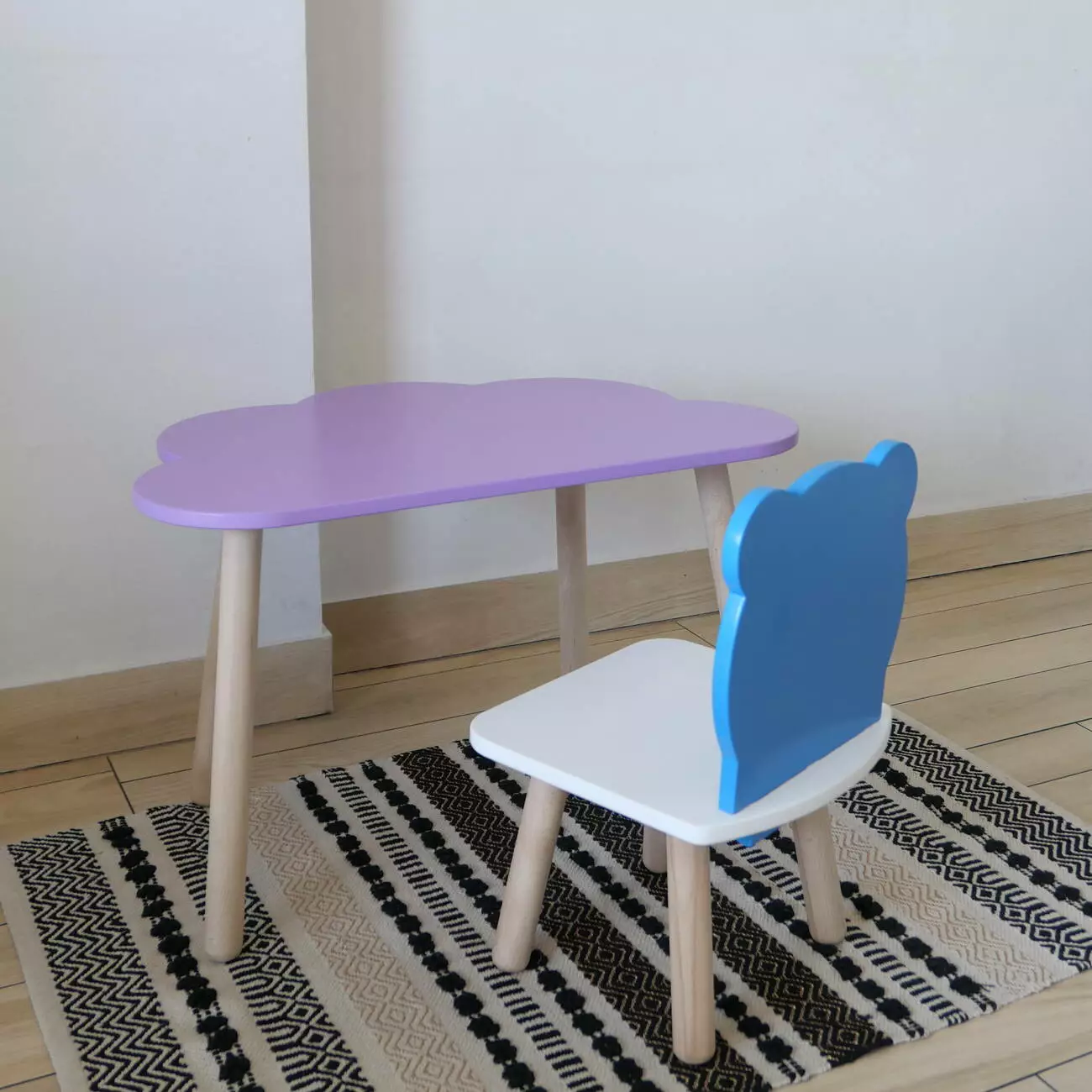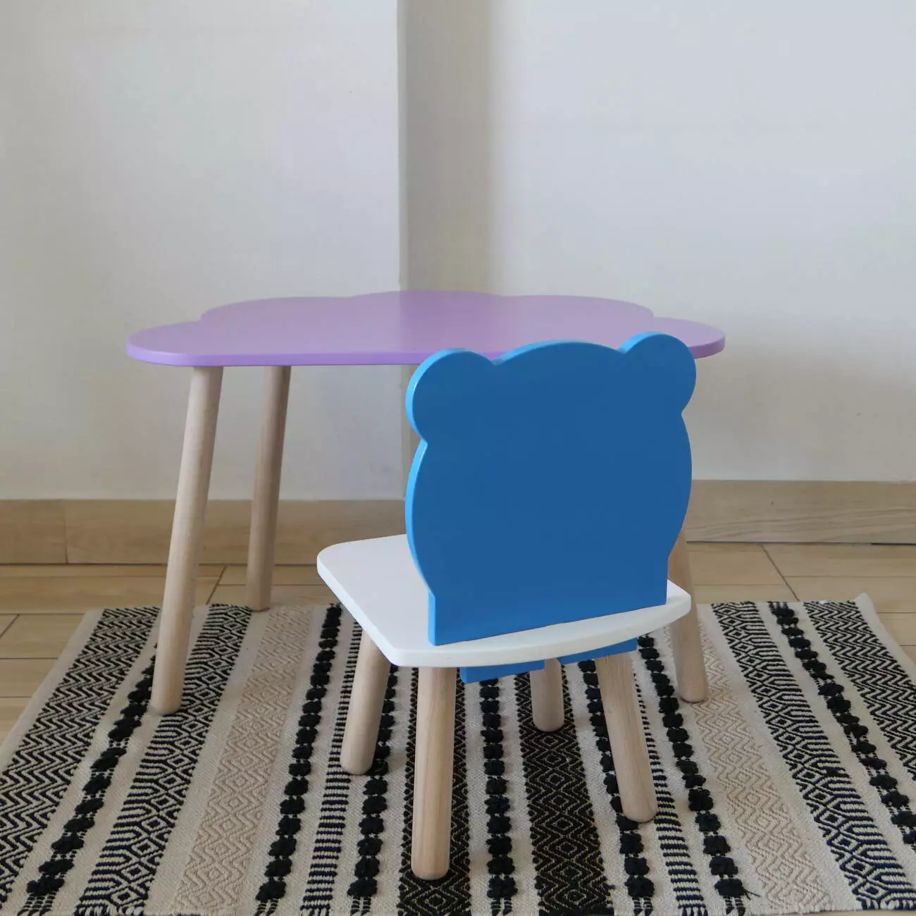 Комплект стіл та стул дитячий ChildWood - Set Стіл бузковий хмаринка + стілець білий блакитний Ведмедик (Фанера)