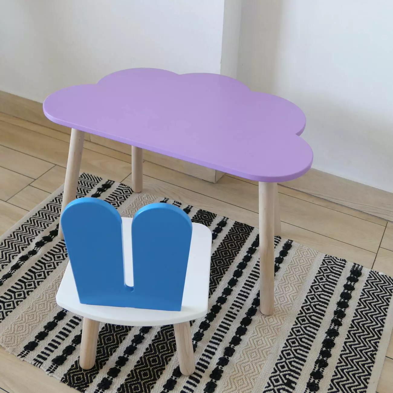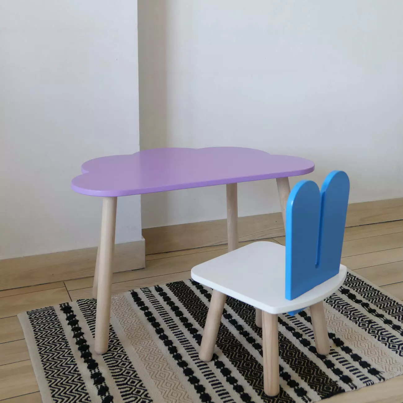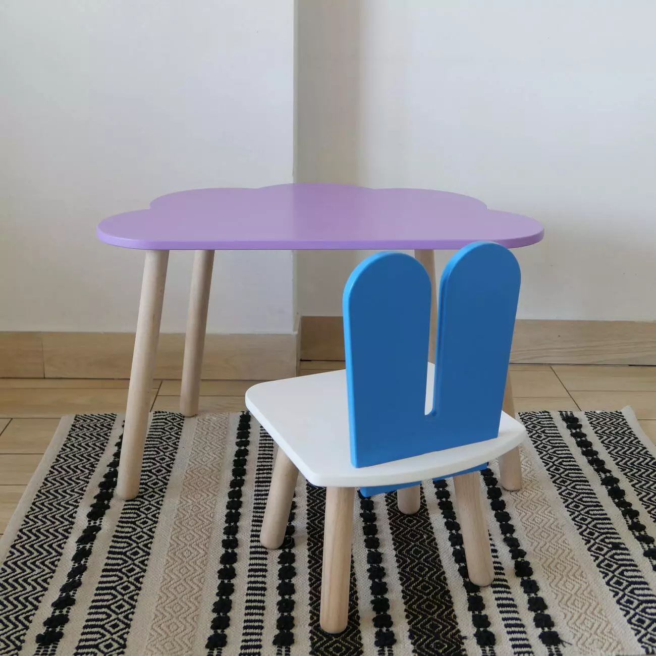 Комплект стіл та стул дитячий ChildWood - Set Стіл бузковий хмаринка + стілець білий блакитний Зайчик (Фанера)