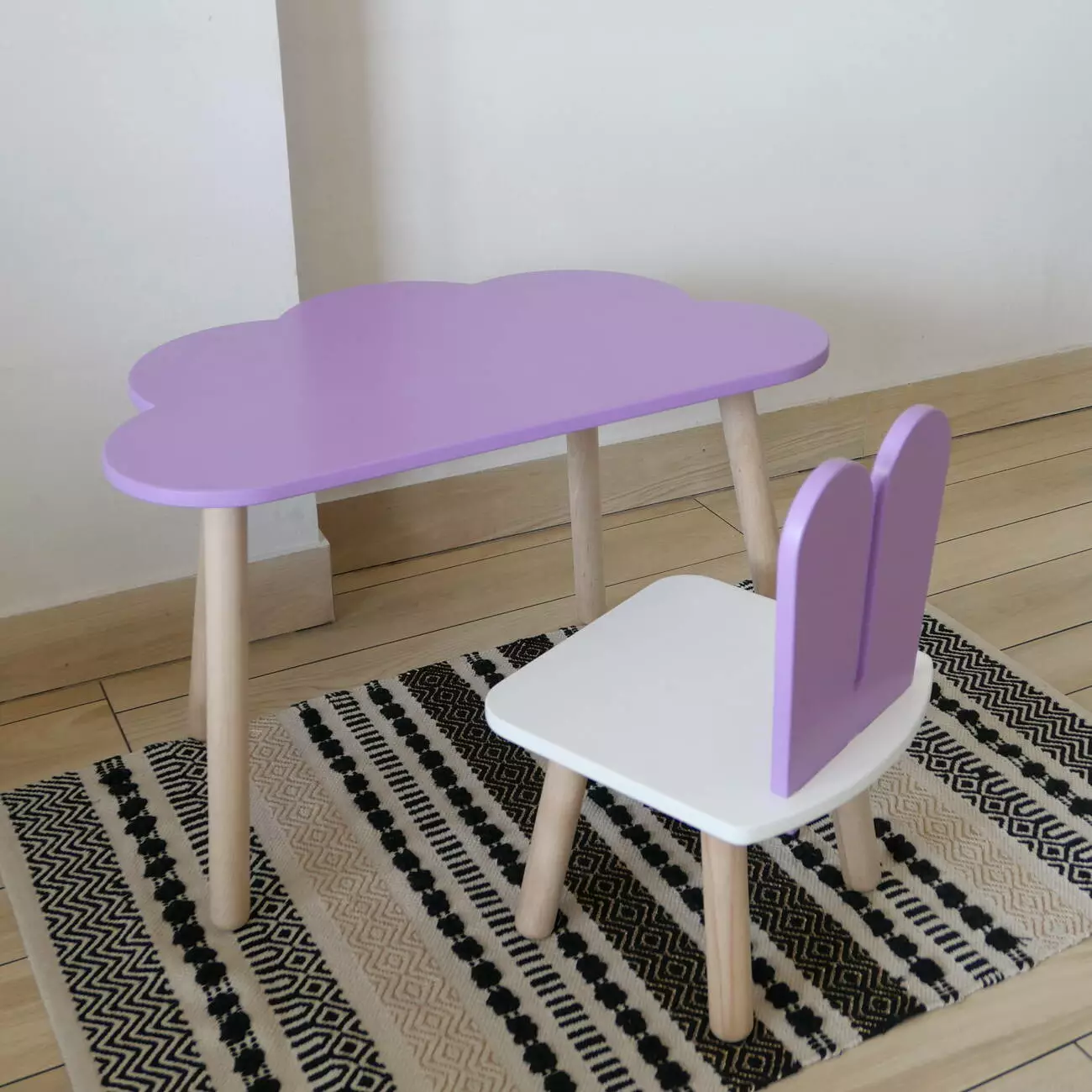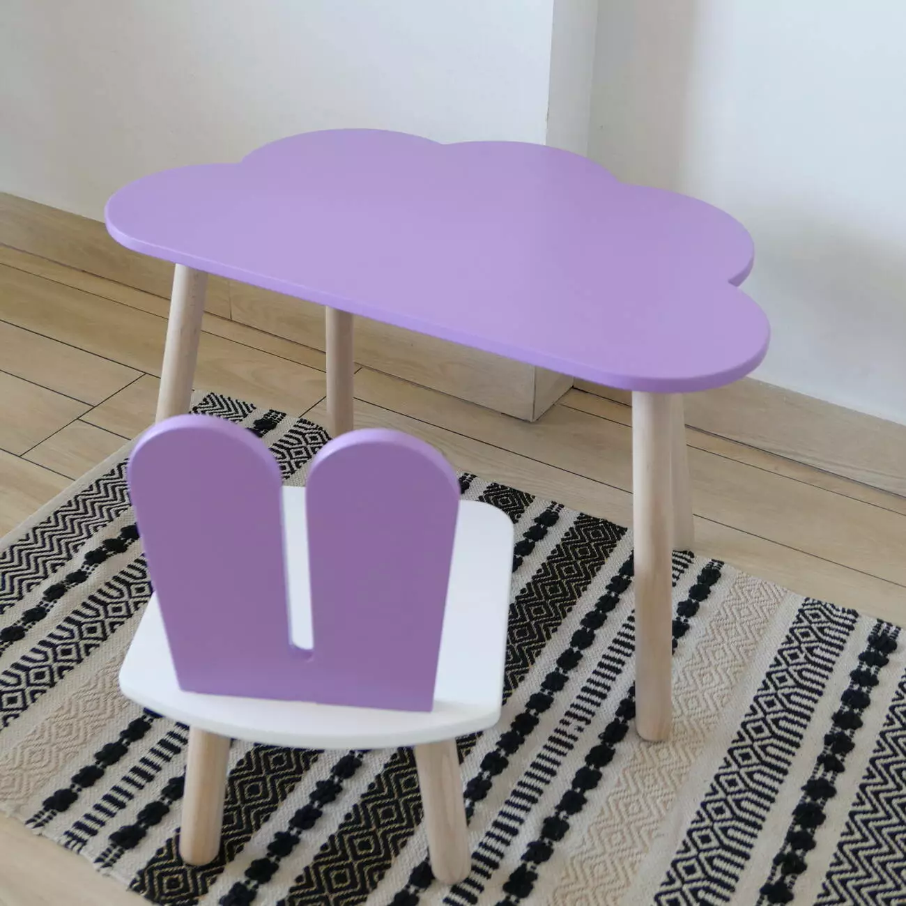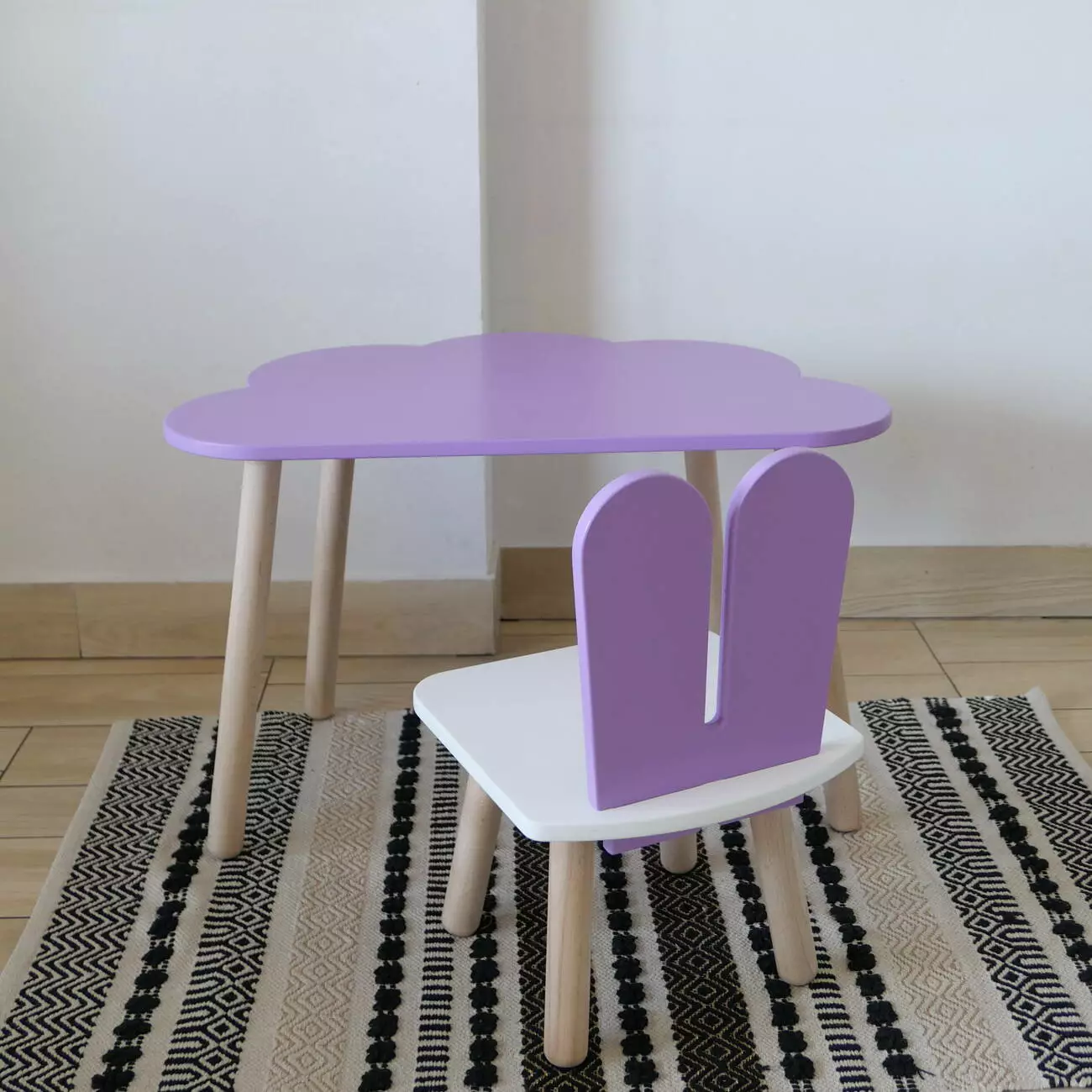 Комплект стіл та стул дитячий ChildWood - Set Стіл бузковий хмаринка + стілець білий бузковий Зайчик (Фанера)