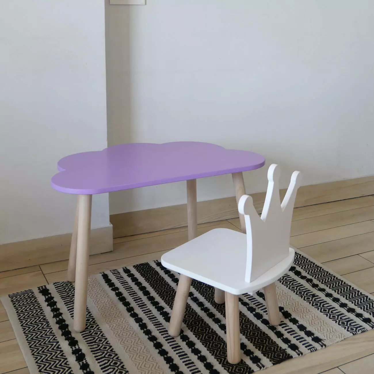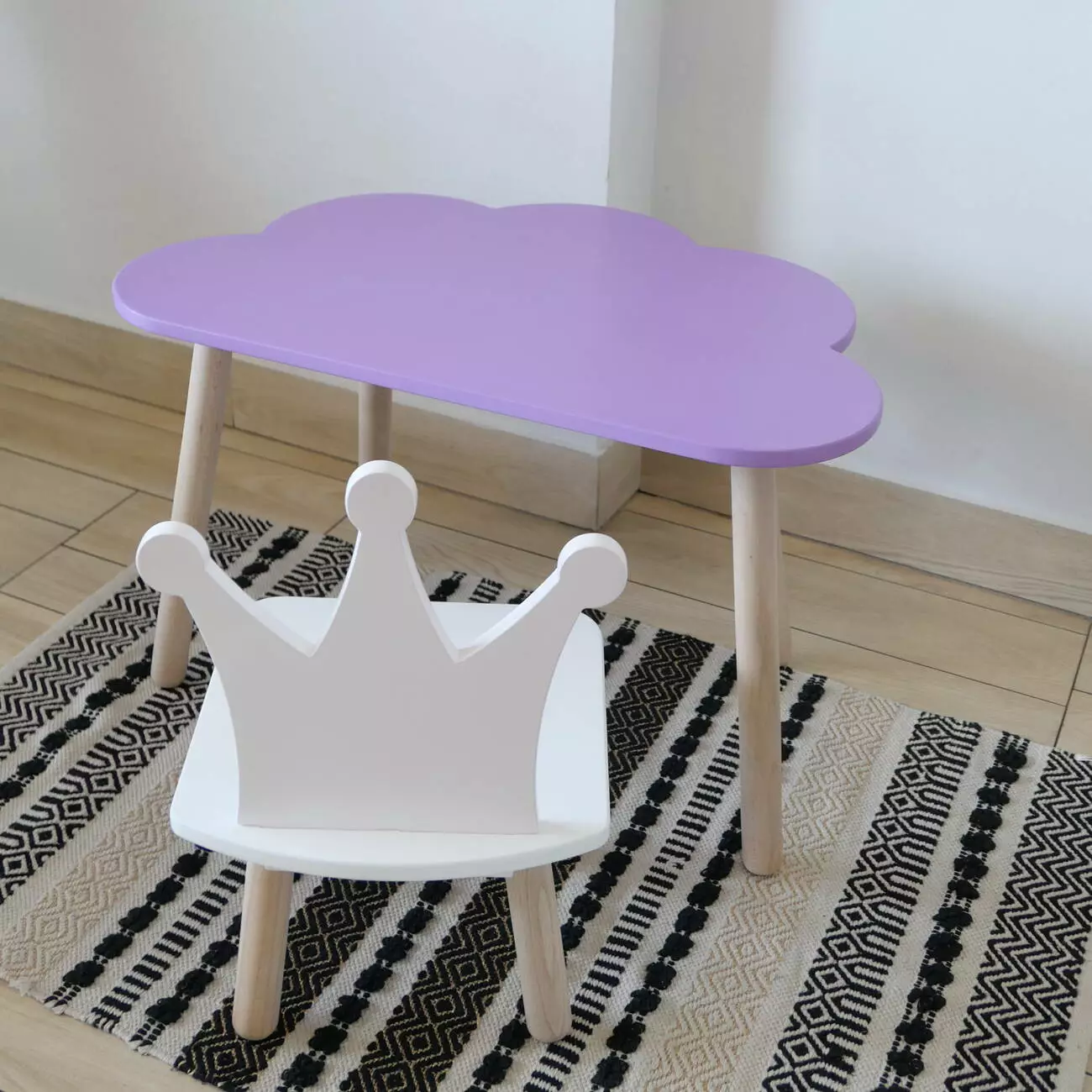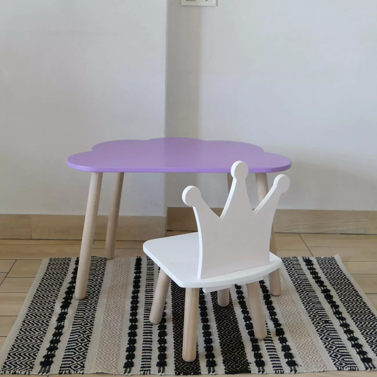 Комплект стіл та стул дитячий ChildWood - Set Стіл бузковий Хмаринка + стілець білий Корона (Фанера)