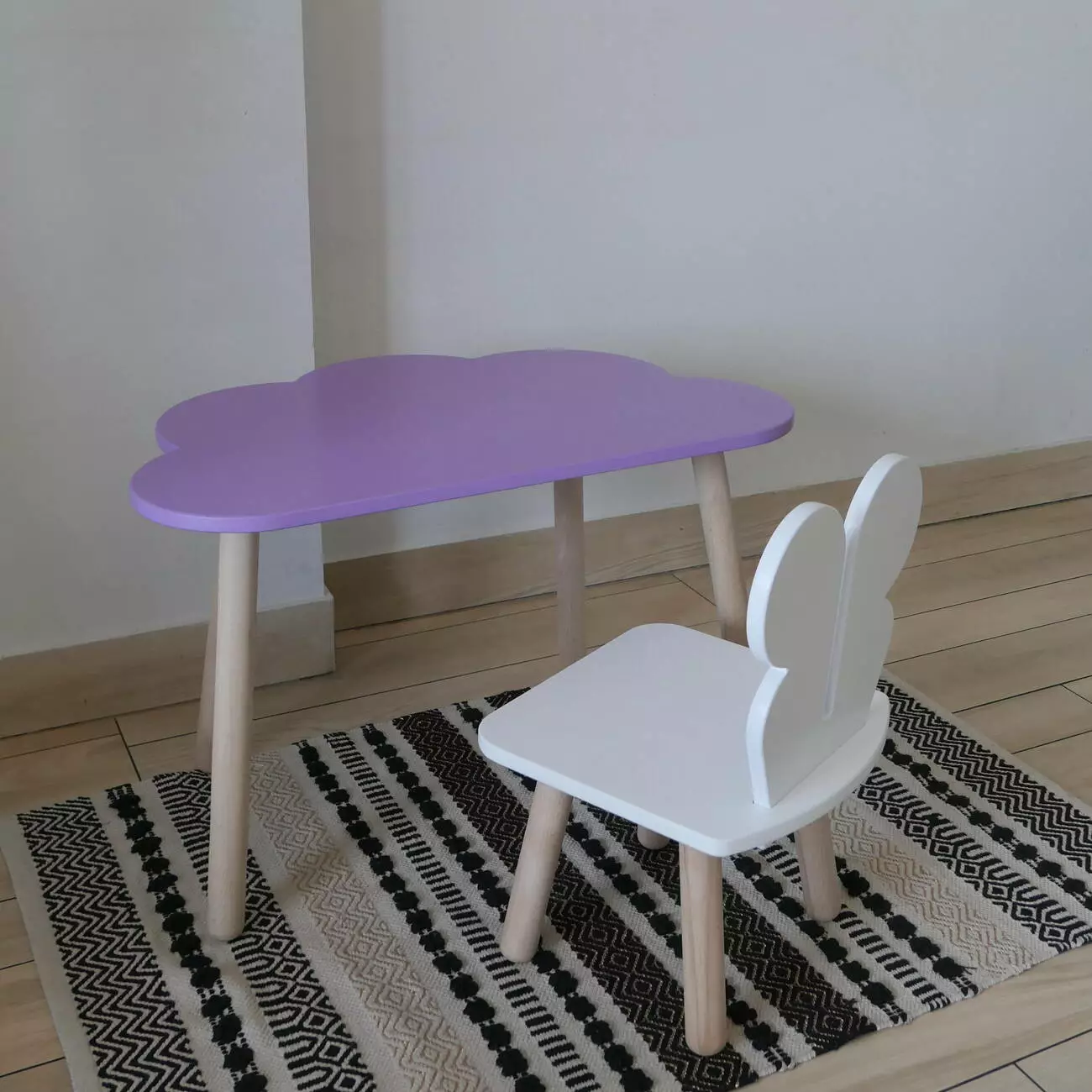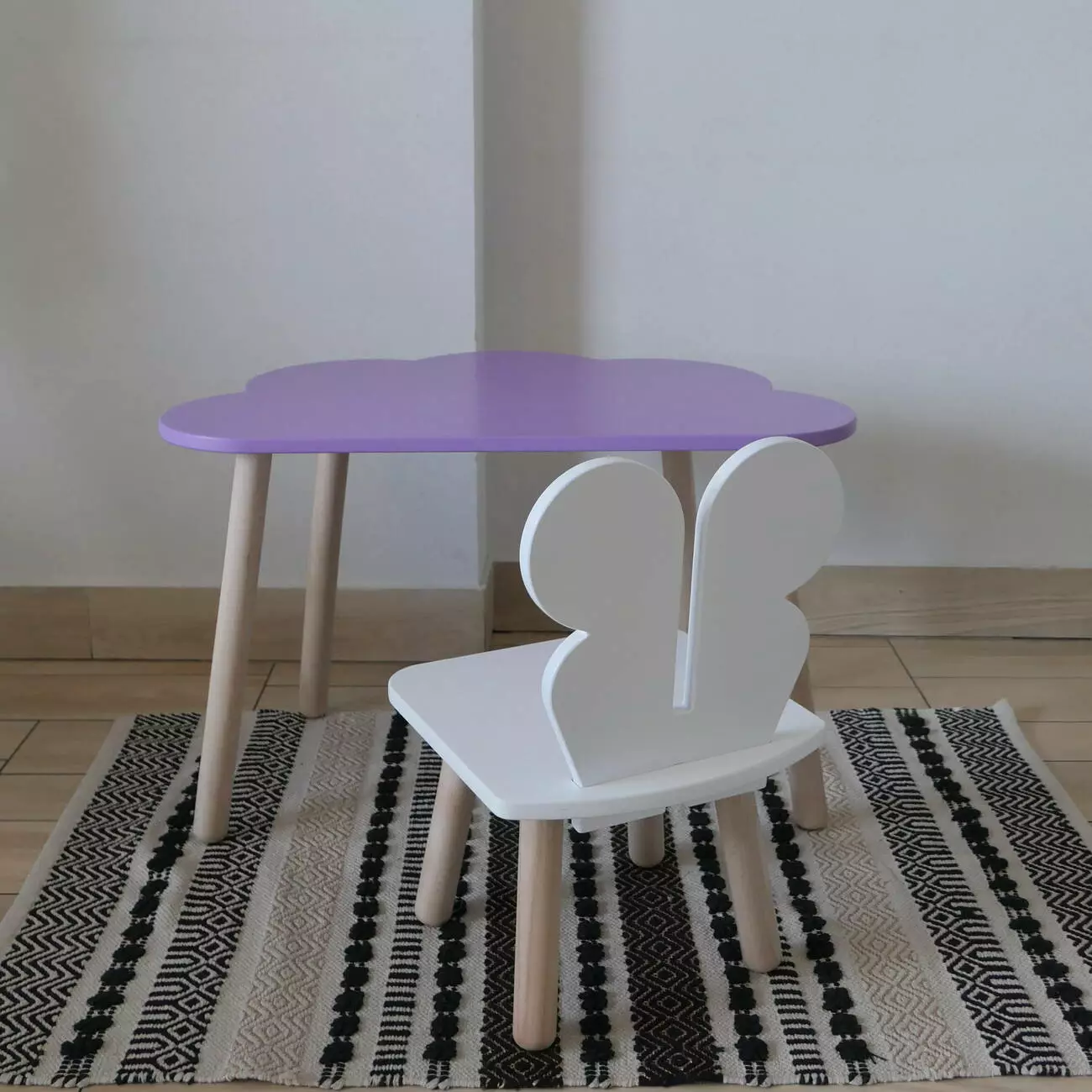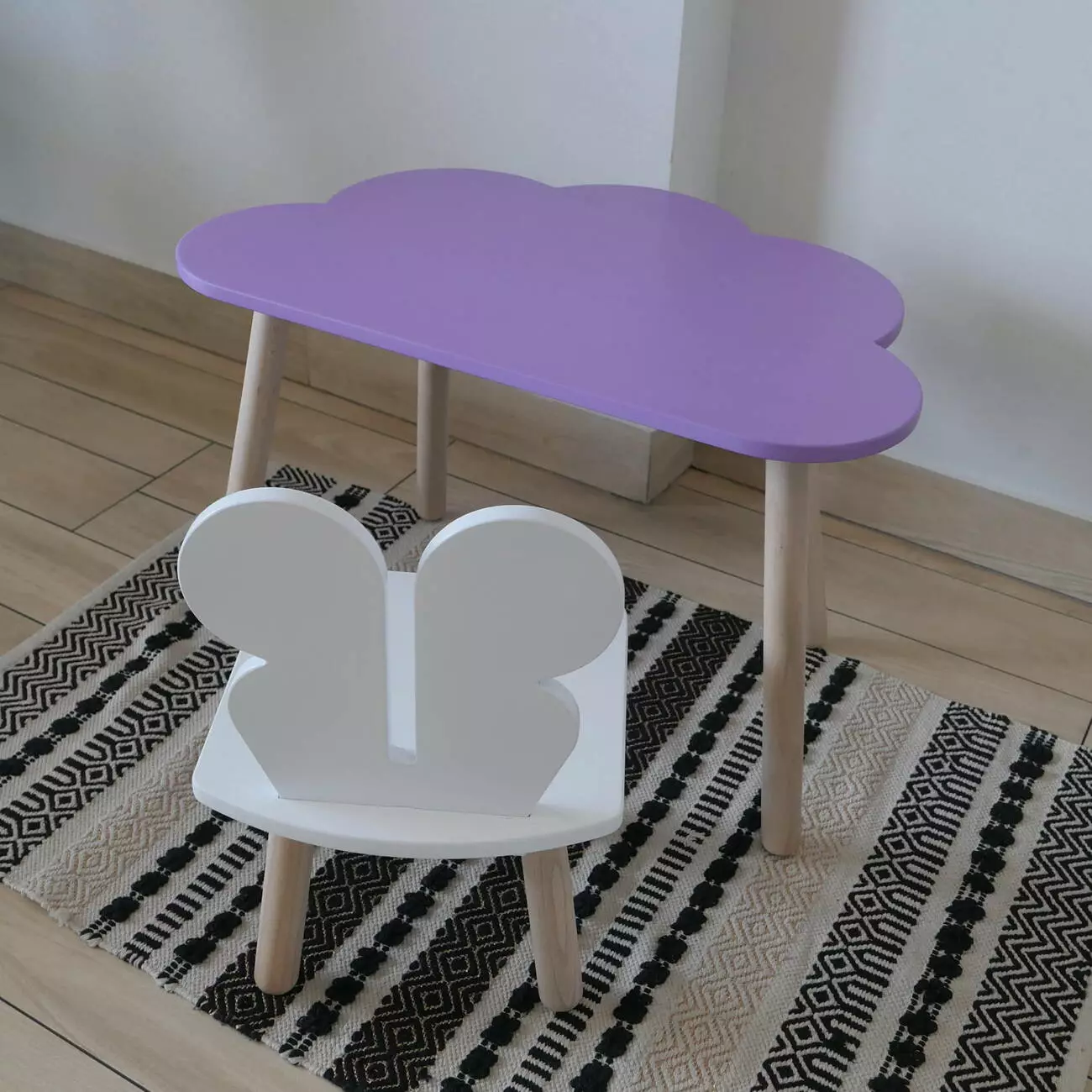 Комплект стіл та стул дитячий ChildWood - Set Стіл бузковий Хмаринка + стілець білий Метелик (Фанера)