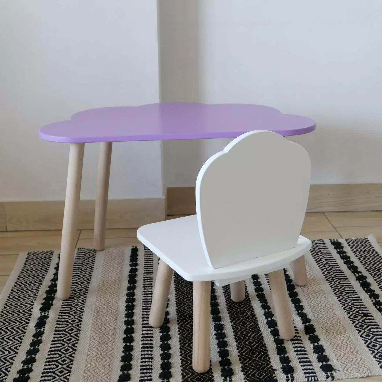 Комплект стіл та стул дитячий ChildWood - Set Стіл бузковий Хмаринка + стілець білий Мушля (Фанера)