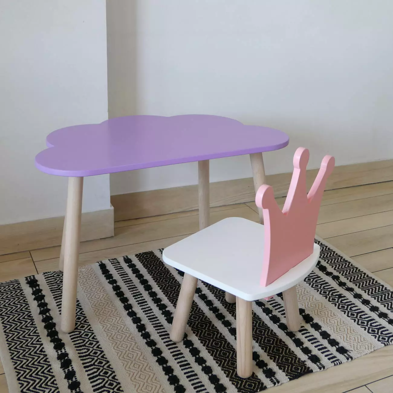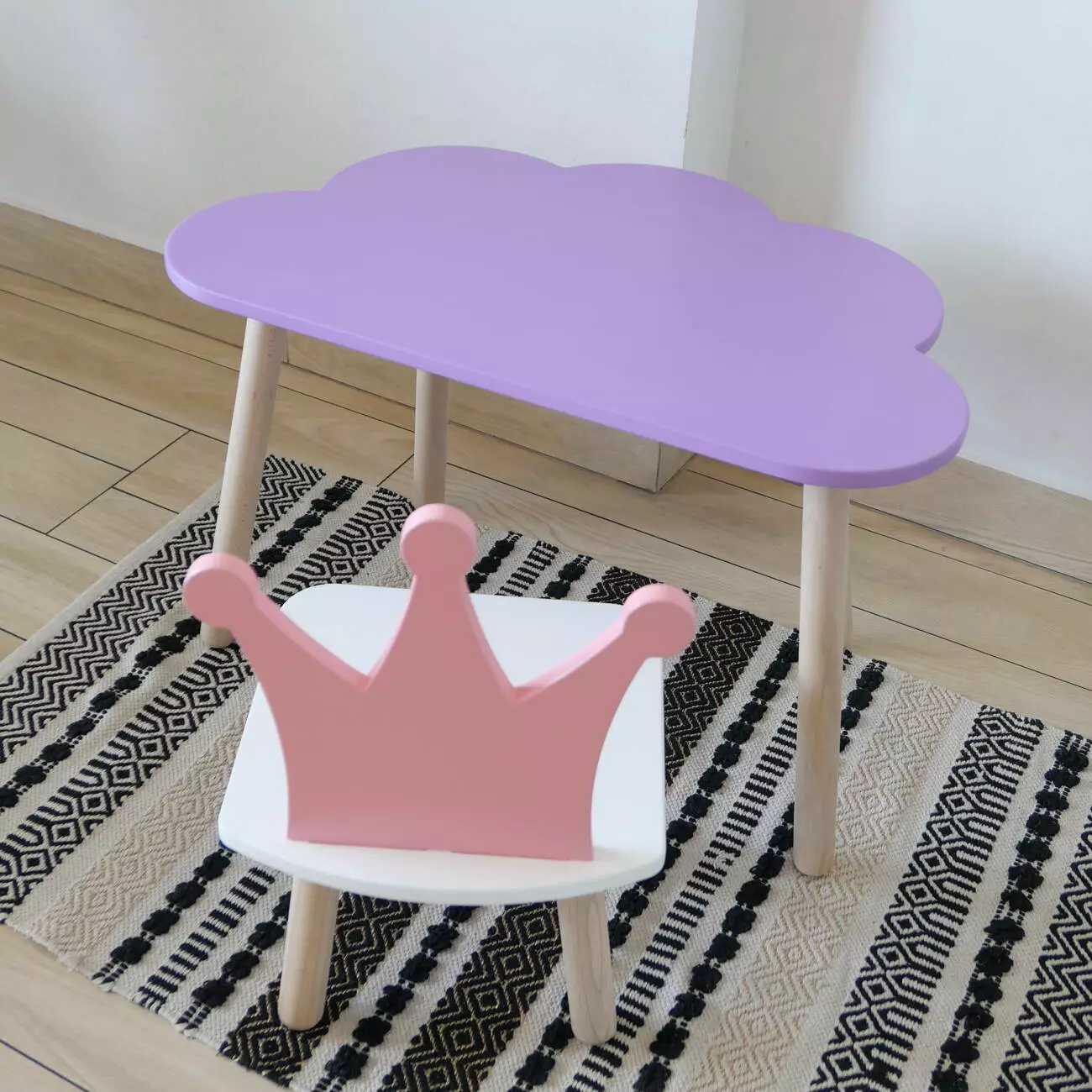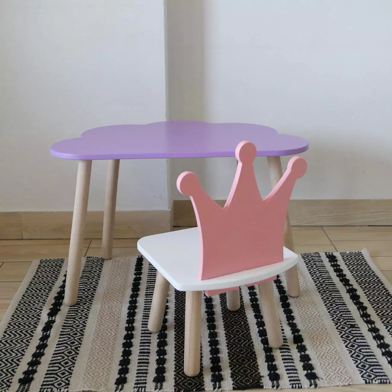 Комплект стіл та стул дитячий ChildWood - Set Стіл бузковий хмаринка + стілець білий рожевий Корона (Фанера)