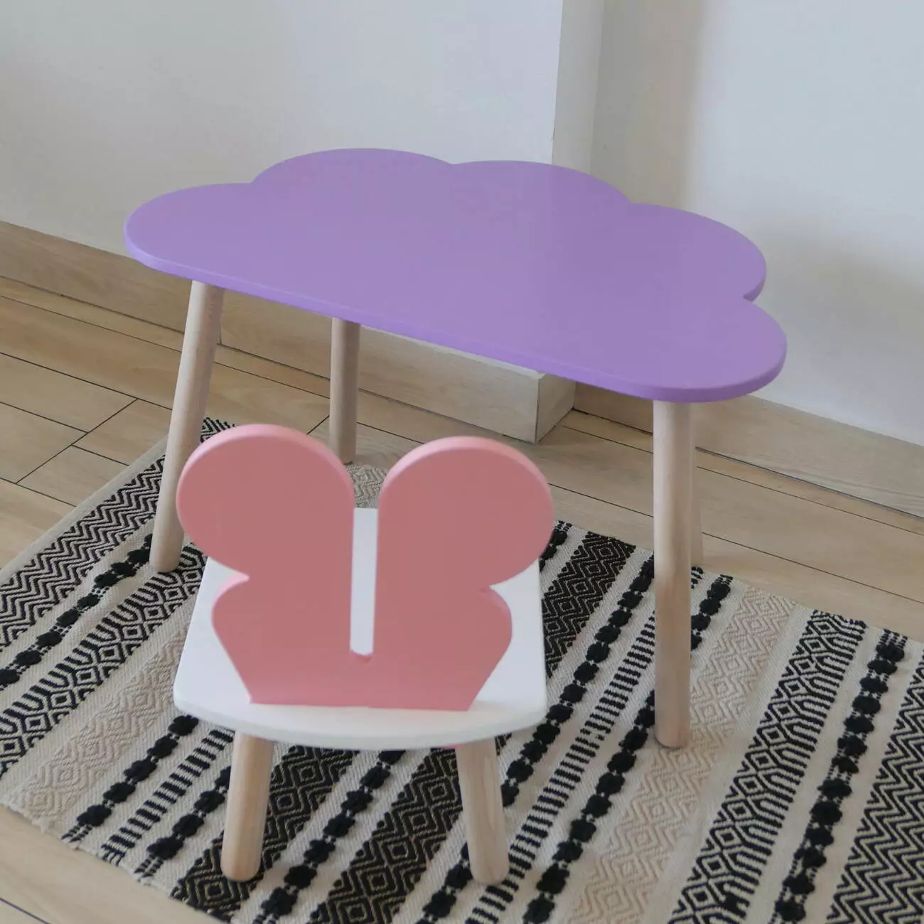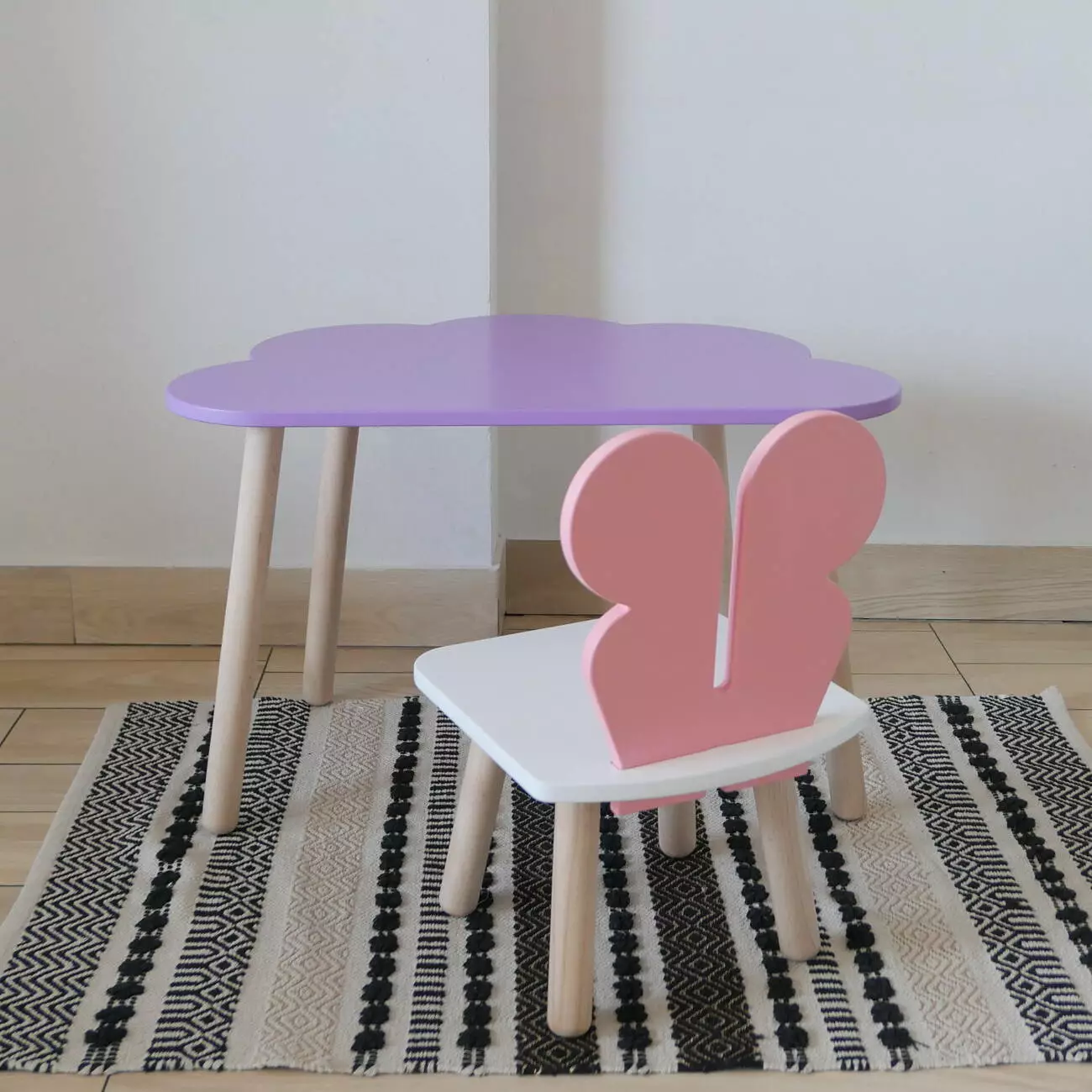 Комплект стіл та стул дитячий ChildWood - Set Стіл бузковий хмаринка + стілець білий рожевий Метелик (Фанера)