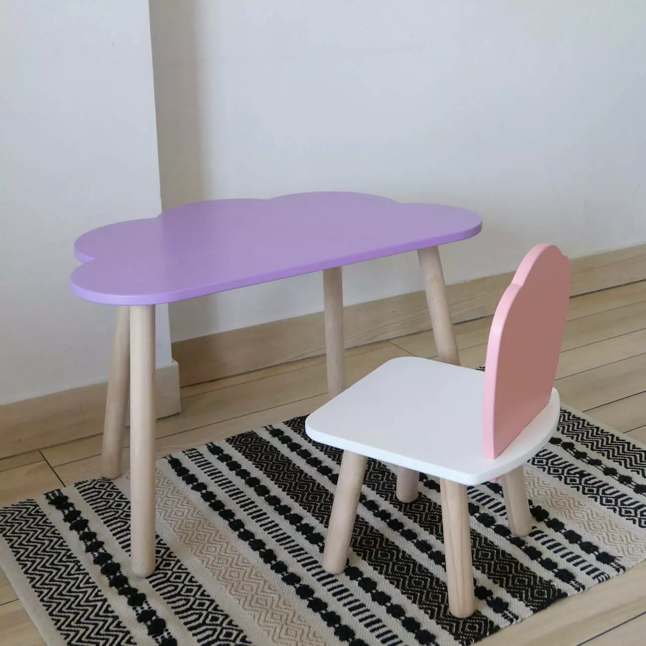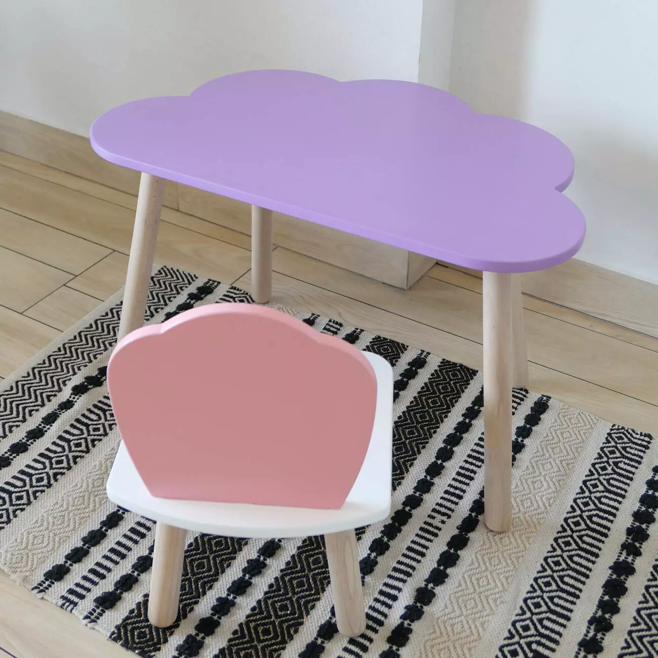 Комплект стіл та стул дитячий ChildWood - Set Стіл бузковий хмаринка + стілець білий рожевий Мушля (Фанера)