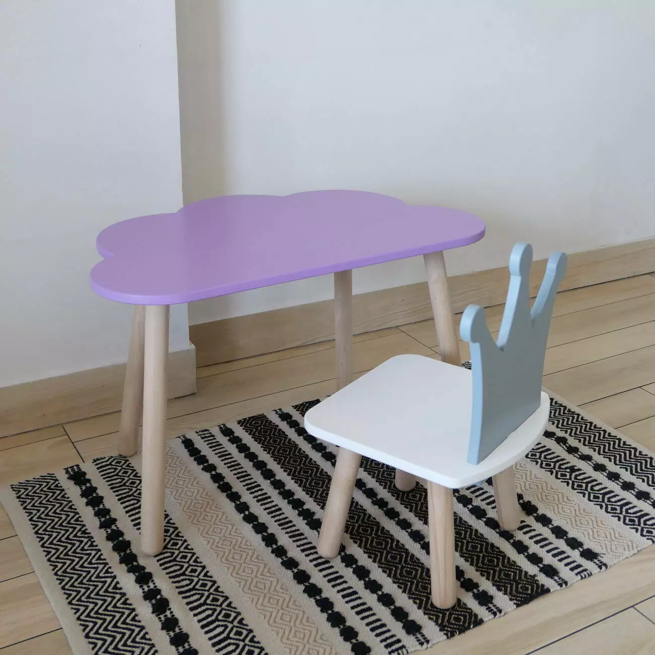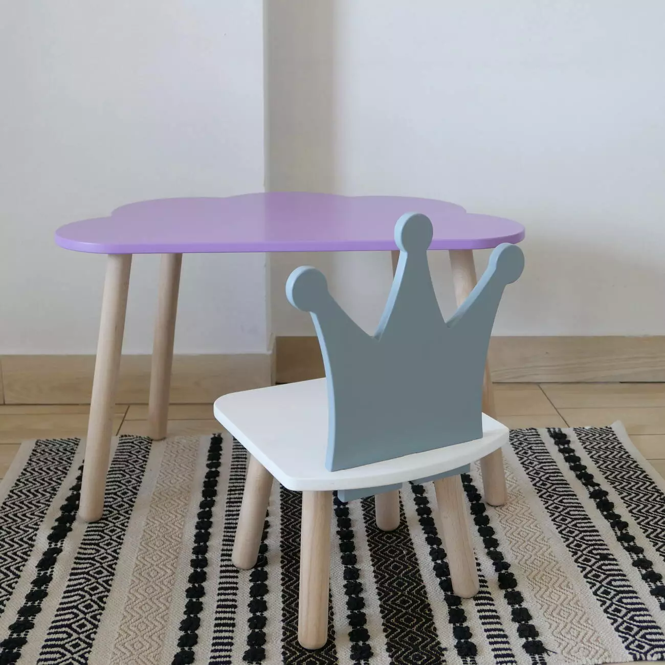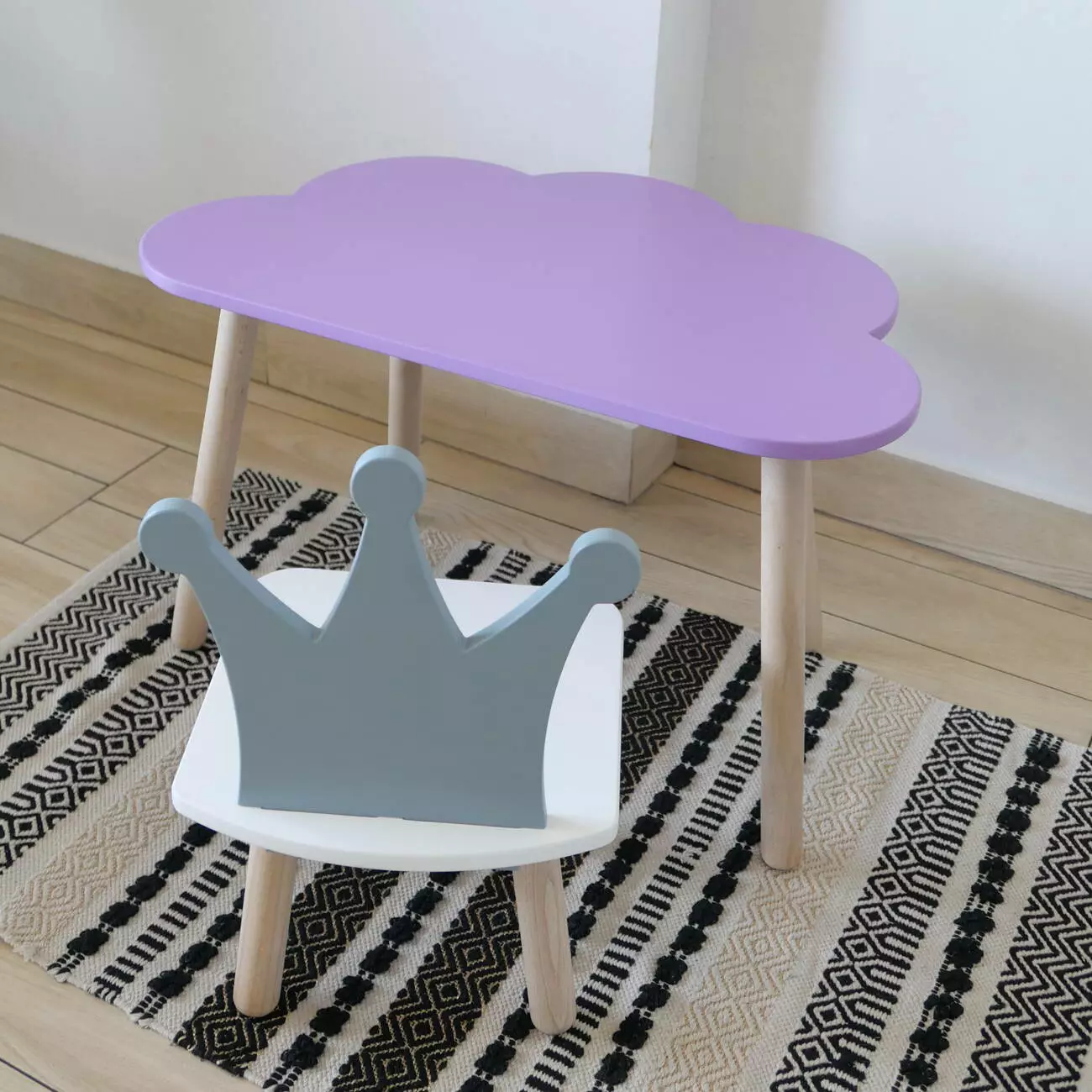 Комплект стіл та стул дитячий ChildWood - Set Стіл бузковий хмаринка + стілець білий сірий Корона (Фанера)