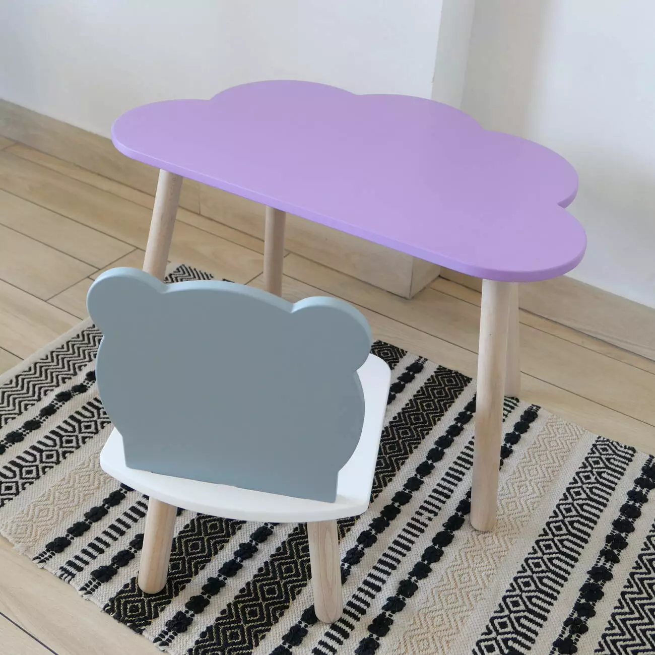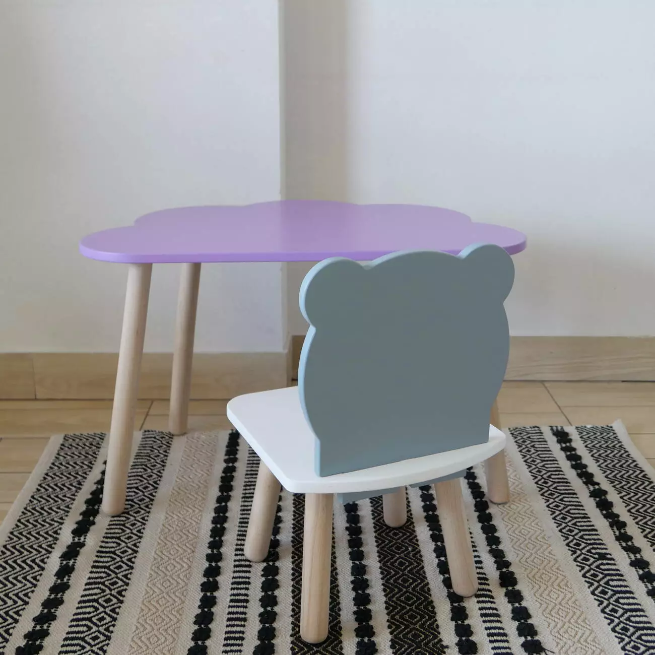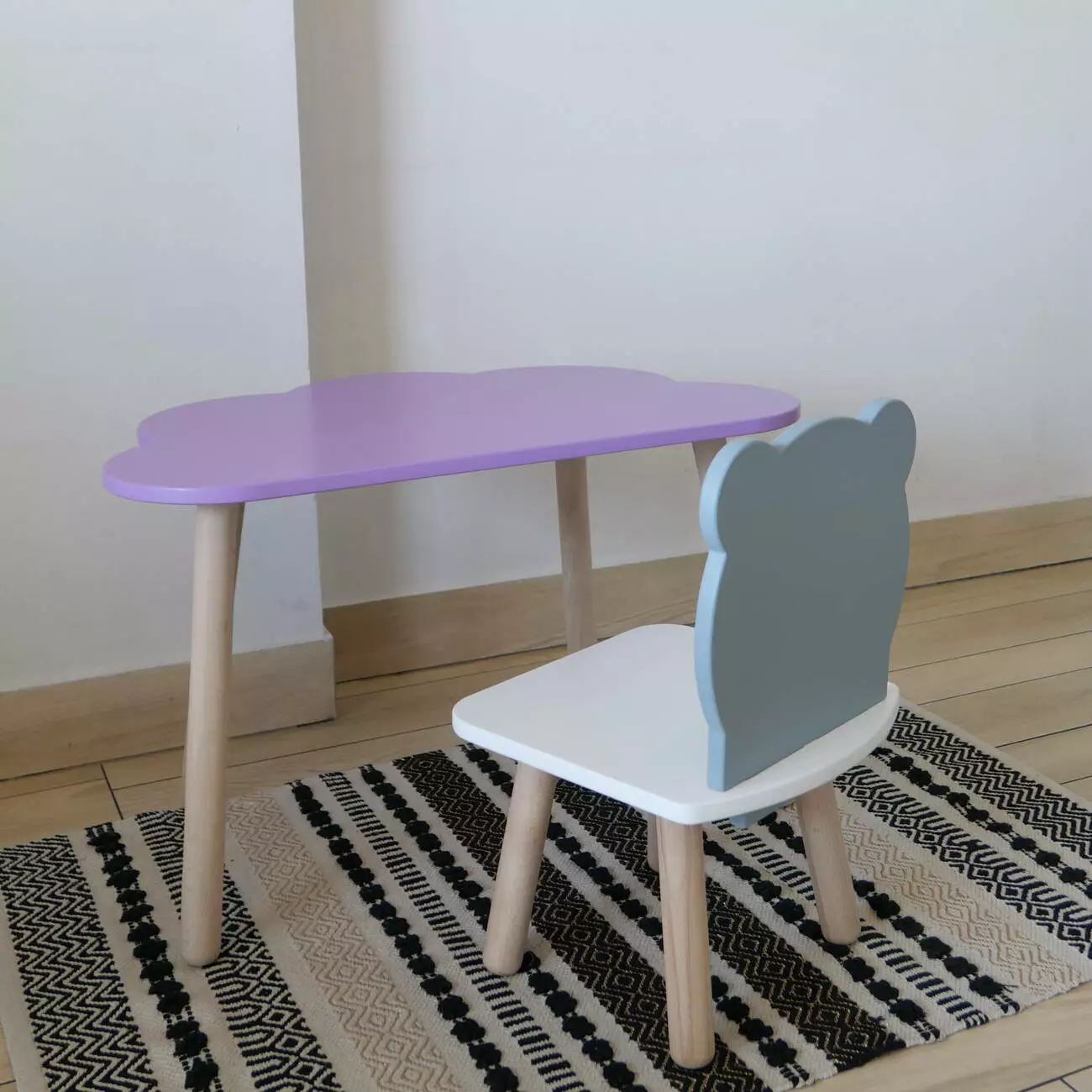 Комплект стіл та стул дитячий ChildWood - Set Стіл бузковий хмаринка + стілець білий сірий Ведмедик (Фанера)