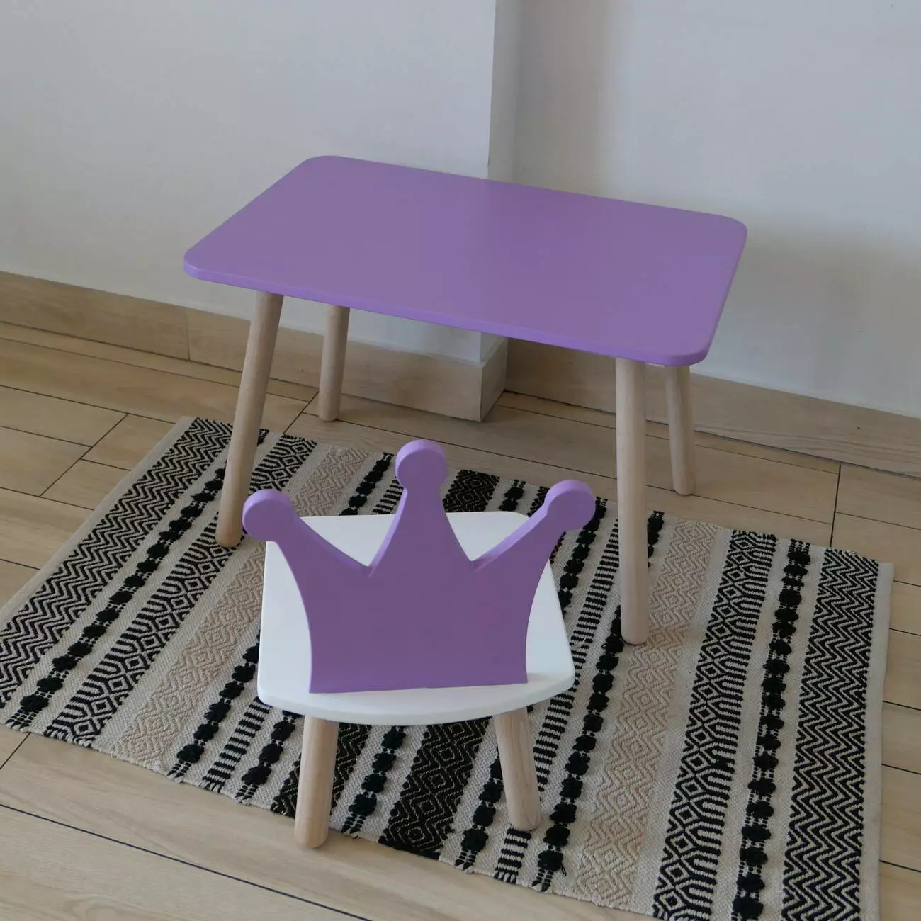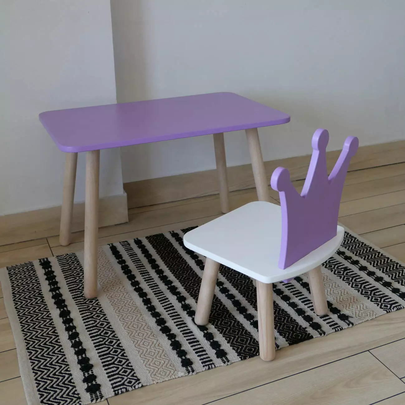 Комплект стіл та стул дитячий ChildWood - Set Стіл бузковий прямокутний + стілець білий бузковий Корона (Фанера)