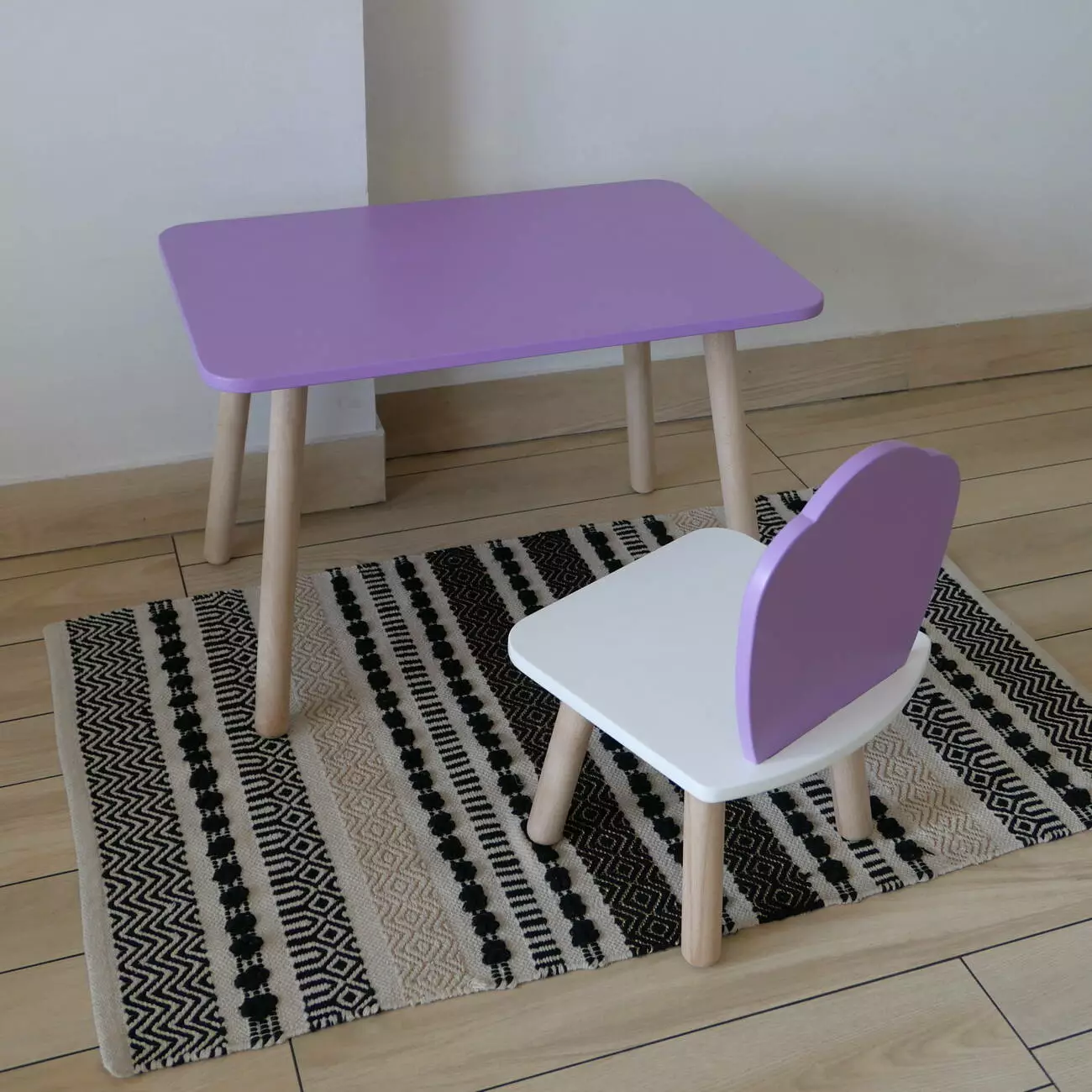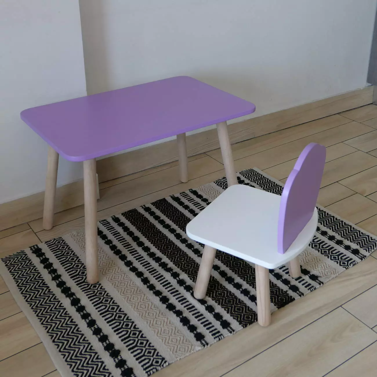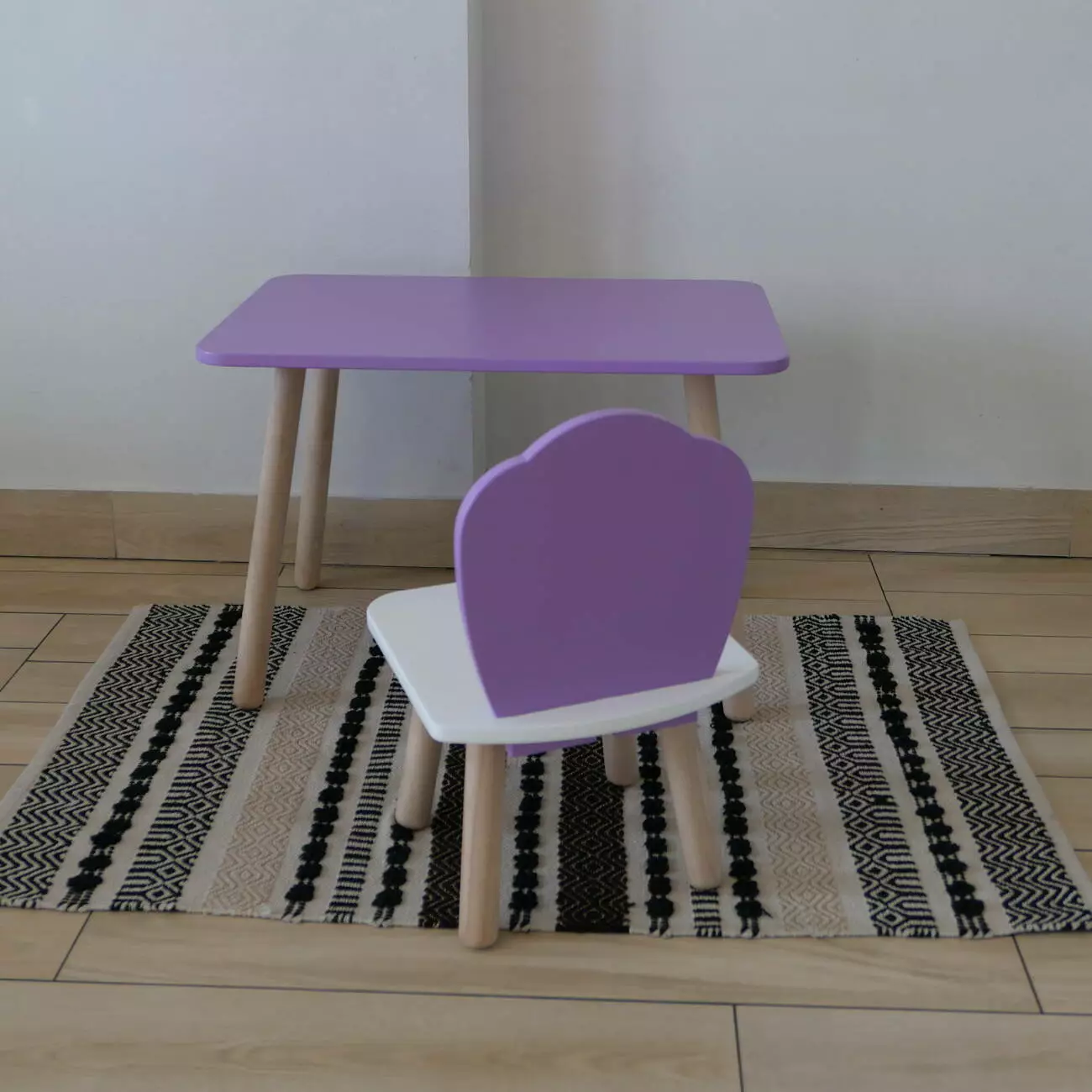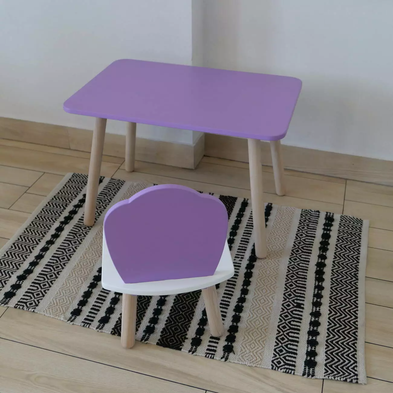 Комплект стіл та стул дитячий ChildWood - Set Стіл бузковий прямокутний + стілець білий бузковий Мушля (Фанера)