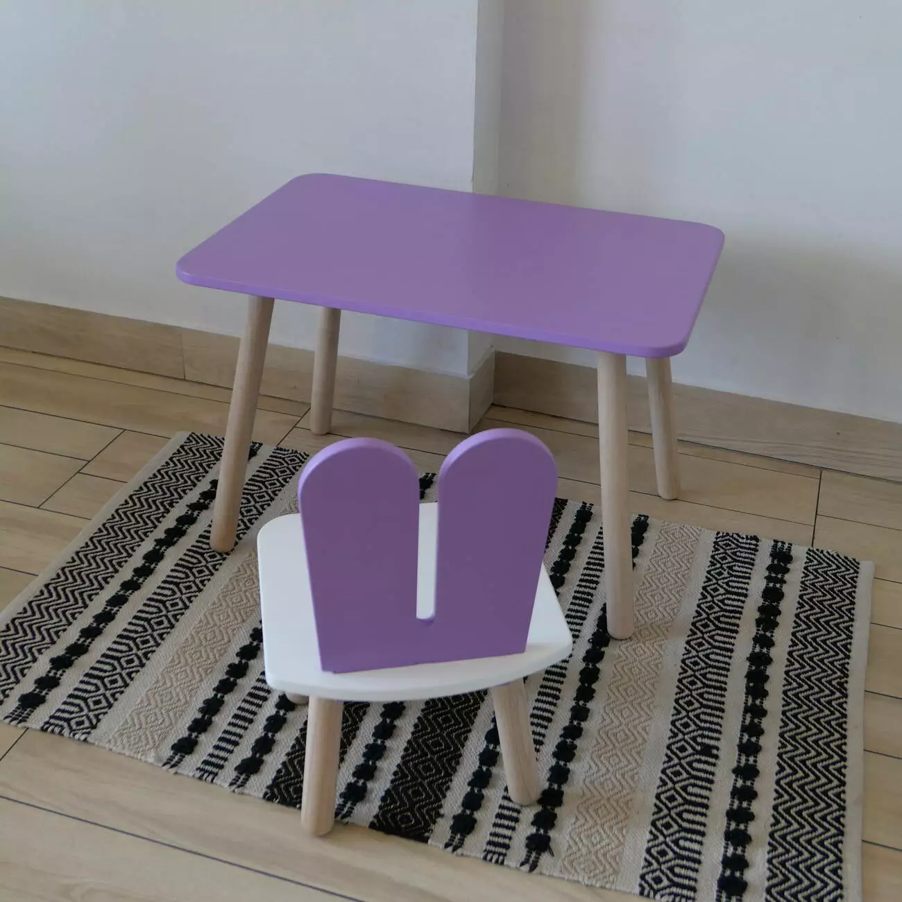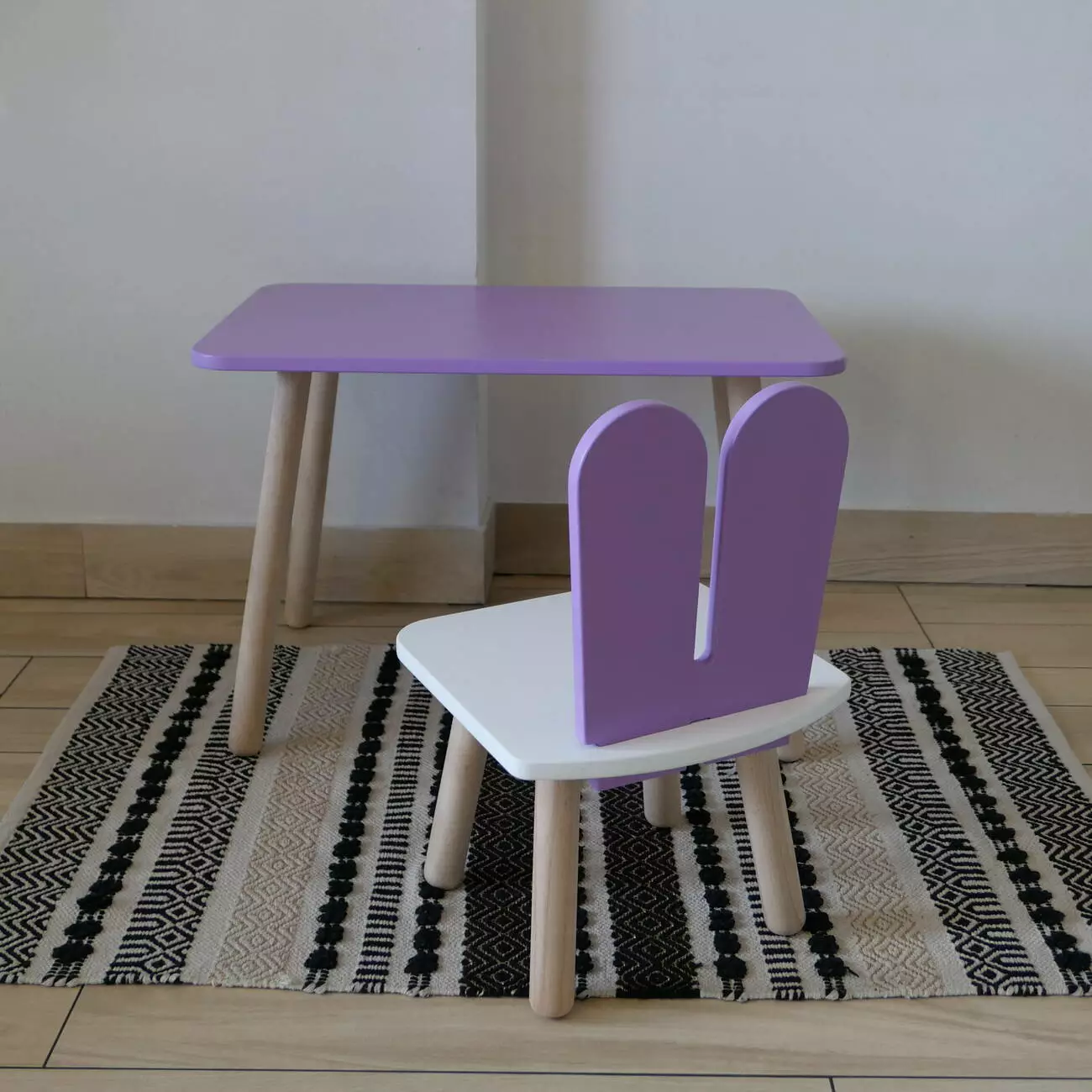 Комплект стіл та стул дитячий ChildWood - Set Стіл бузковий прямокутний + стілець білий бузковий Зайчик (Фанера)