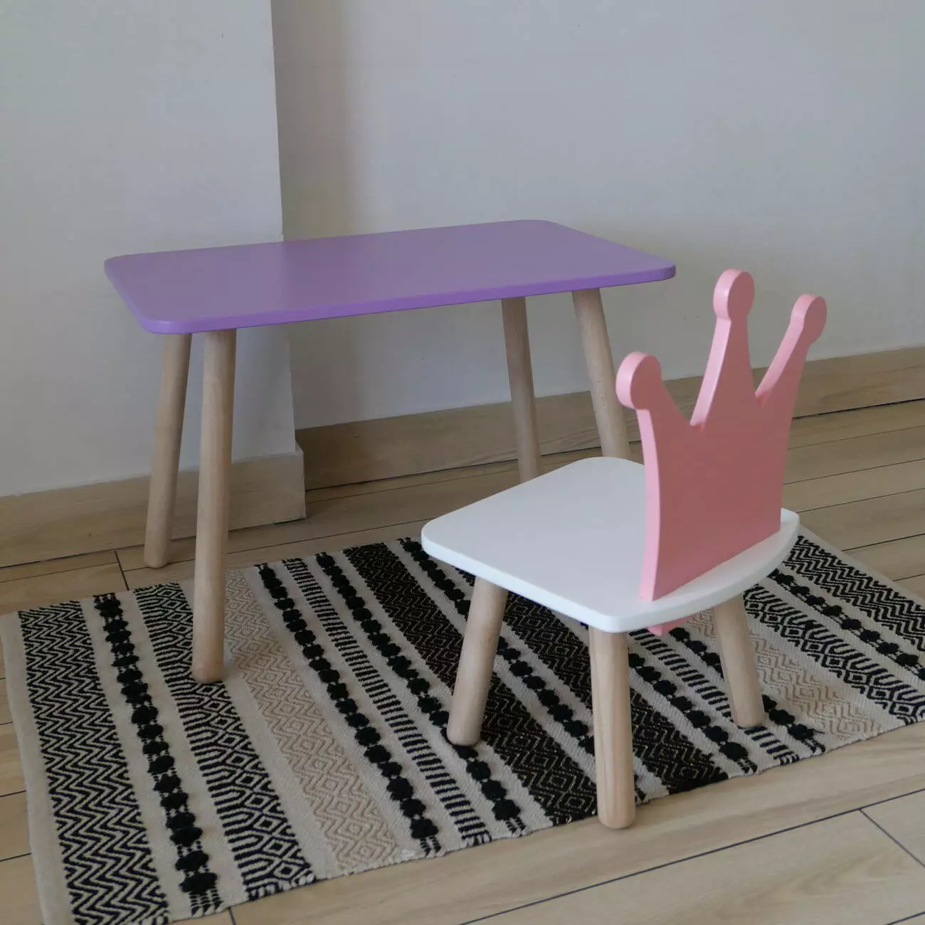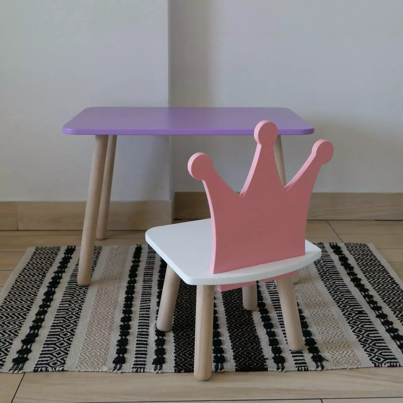 Комплект стіл та стул дитячий ChildWood - Set Стіл бузковий прямокутний + стілець білий рожевий Корона (Фанера)