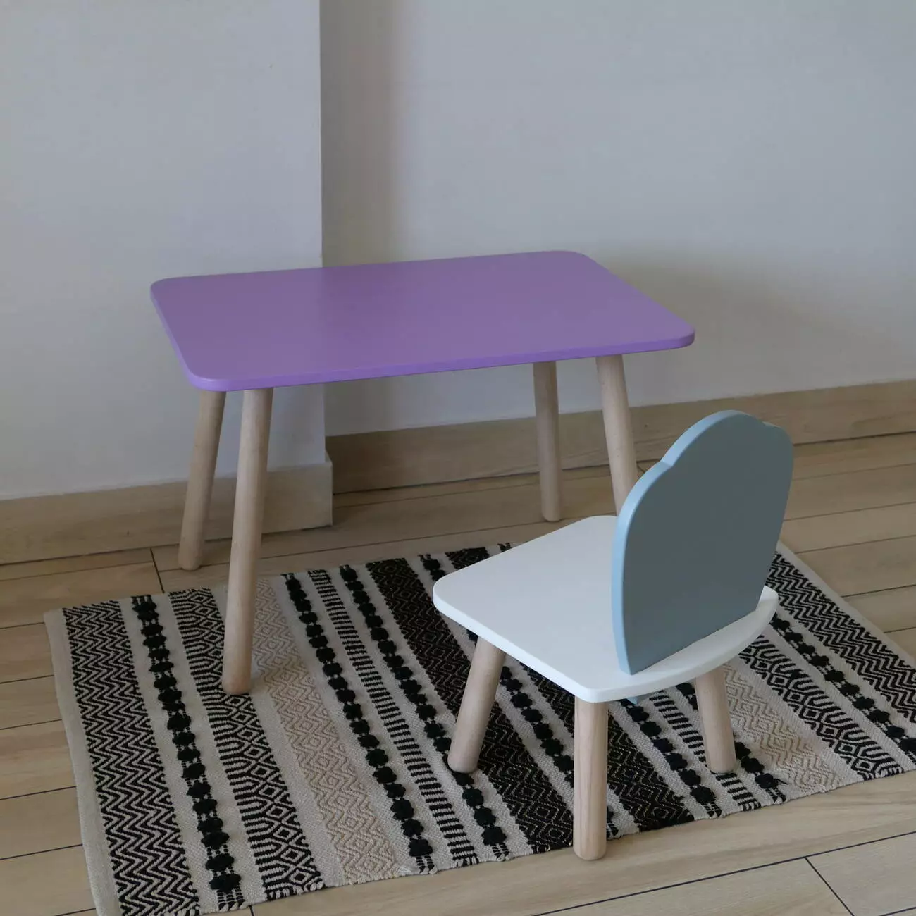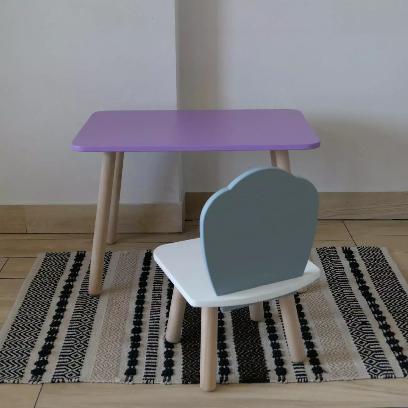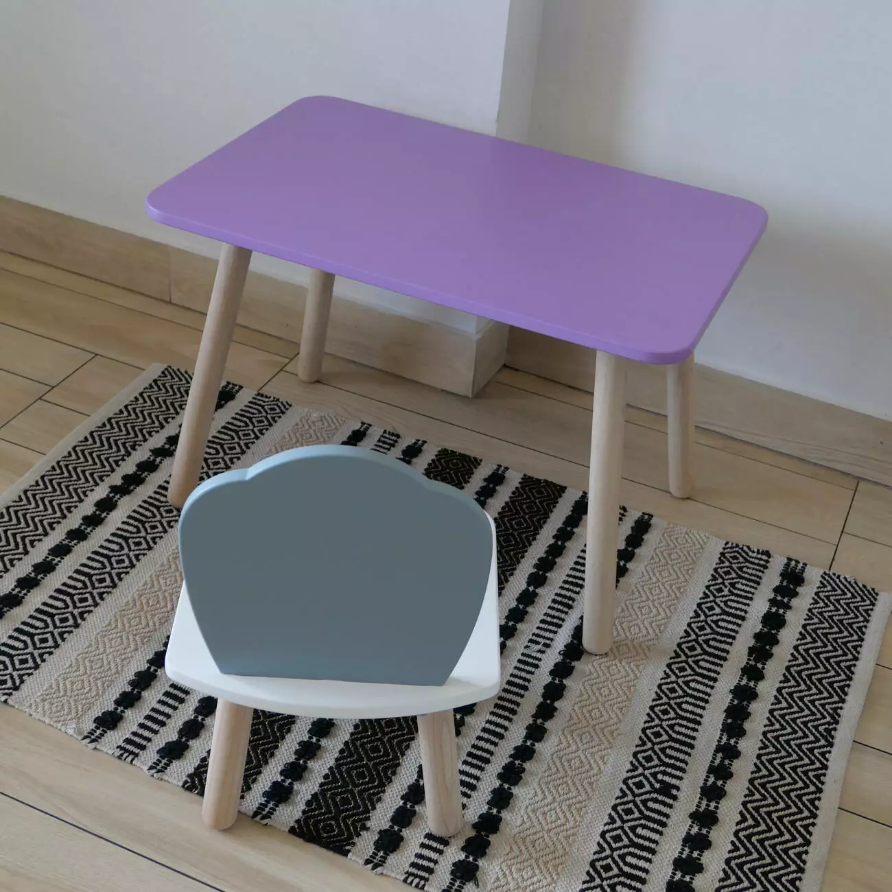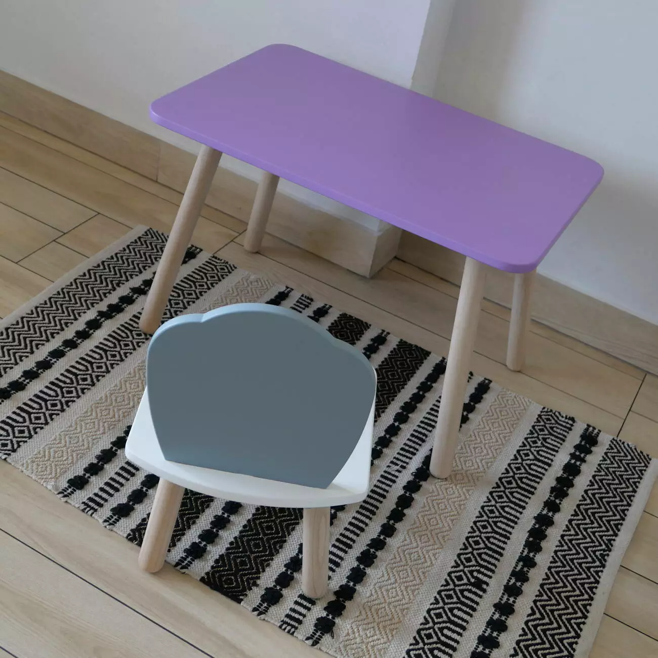 Комплект стіл та стул дитячий ChildWood - Set Стіл бузковий прямокутний + стілець білий сірий Мушля (Фанера)