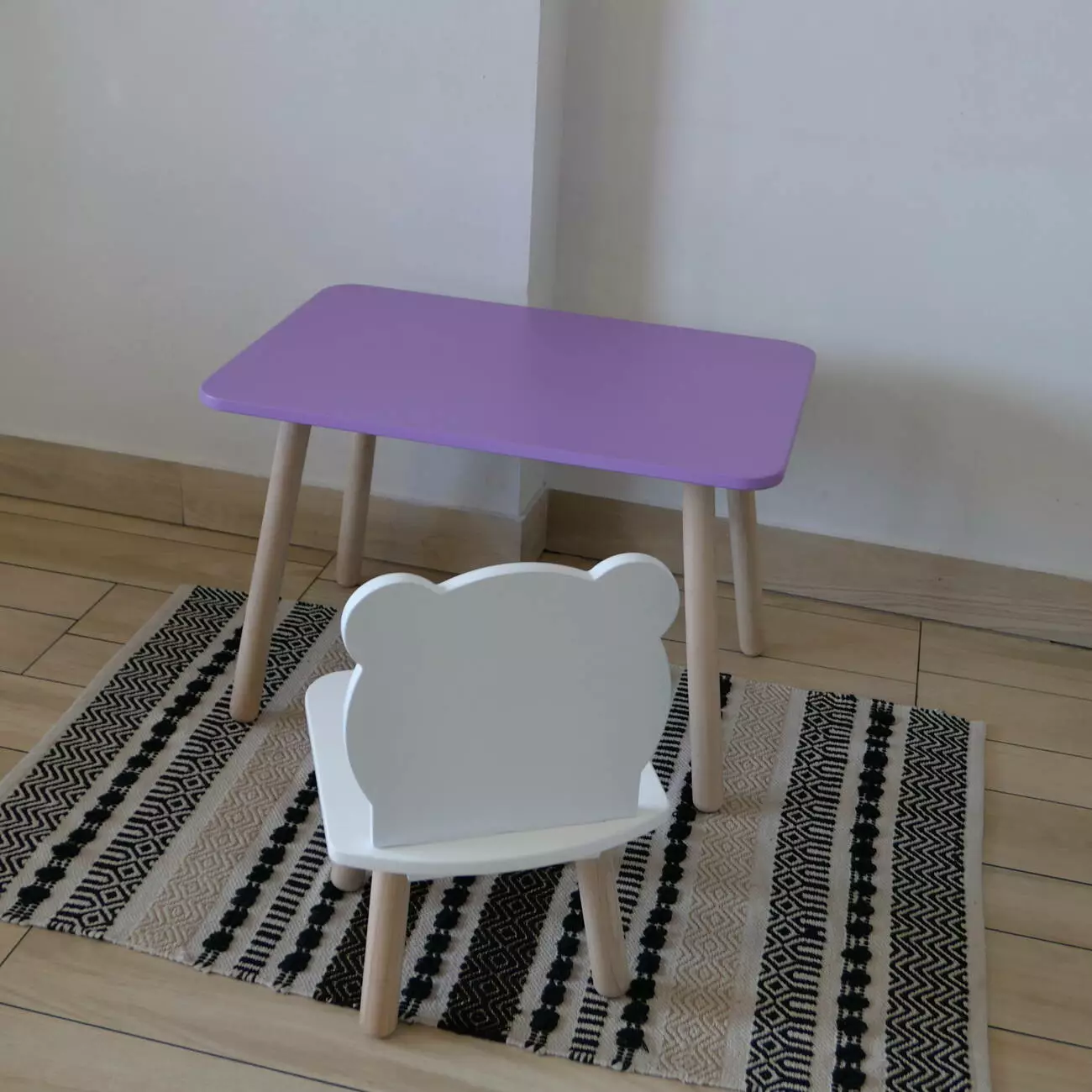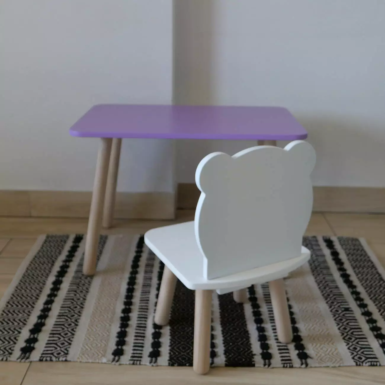 Комплект стіл та стул дитячий ChildWood - Set Стіл бузковий прямокутний + стілець білий Ведмедик (Фанера)